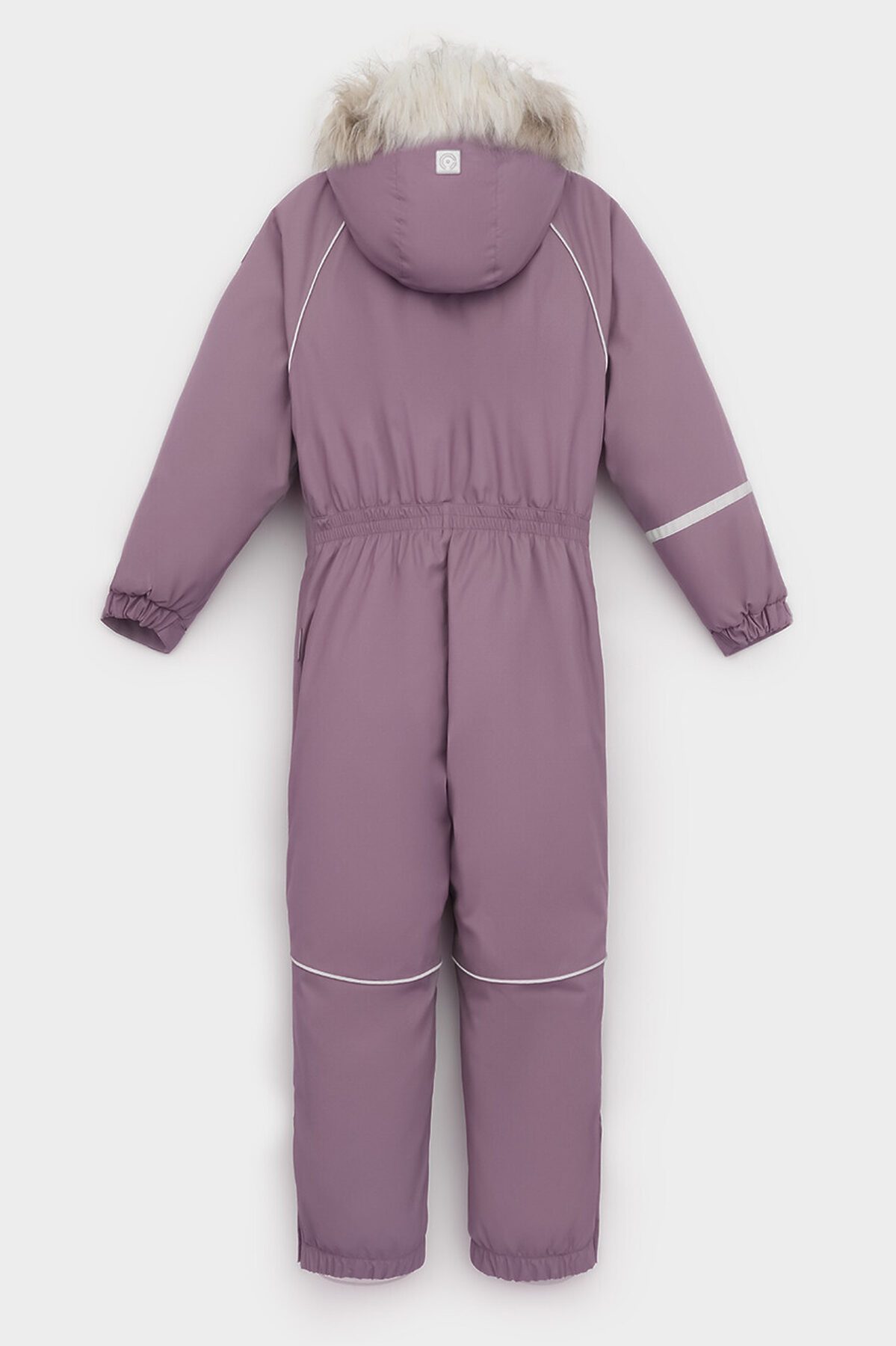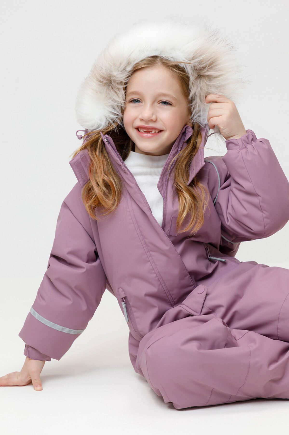 Зимний комбинезон для девочки с утеплителем Fellex®: 250 г/м2 . Выполнен из мембранной ткани с дополнительной тефлоновой обработкой, которая предохраняет изделие от загрязнений и отталкивает влагу. Подклад выполнен из 100% полиэстера Tricot. Комбинезон застёгивается на молнию и внешнюю планку на липучках и кнопках, предусмотрена защита подбородка. Съёмный капюшон имеет эластичную утяжку со стопперами и отстёгивающийся мех на молнии. Резинка по спинке обеспечивает лучшее прилегание. По бокам два кармана на молнии. Эластичные манжеты на рукавах регулируются по ширине с помощью липучки, по низу изделия - с помощью кнопки. Внутренняя противоснежная юбка защищает обувь от попадания снега и удерживает комбинезон в закреплённом положении. В размерах с 98-104 по 116-122 предусмотрены отстёгивающиеся штрипки. Во всех изделиях верхнего ассортимента для безопасности ребёнка предусмотрены светоотражающие элементы.