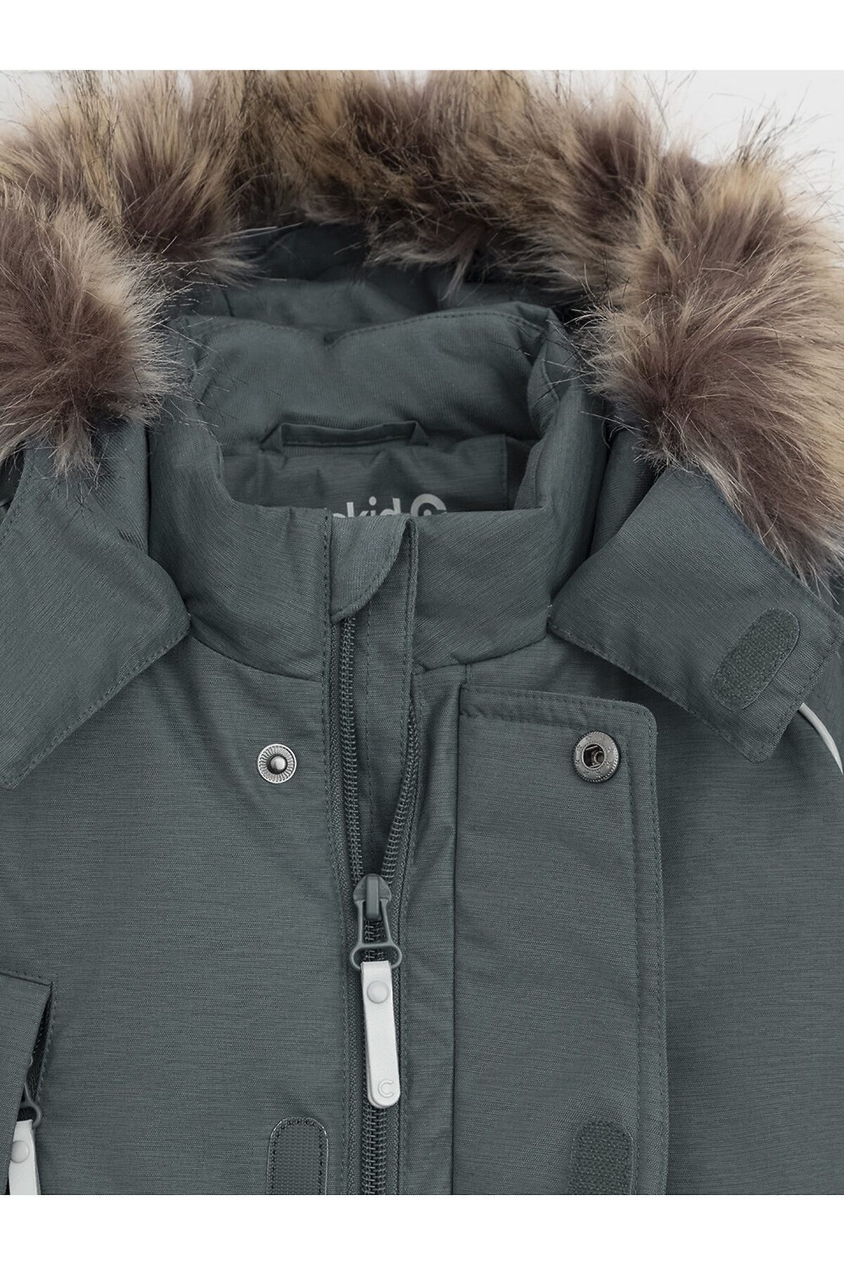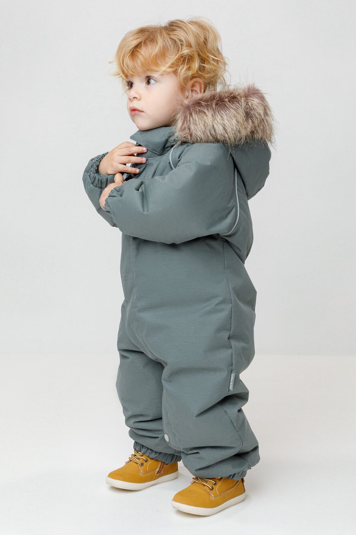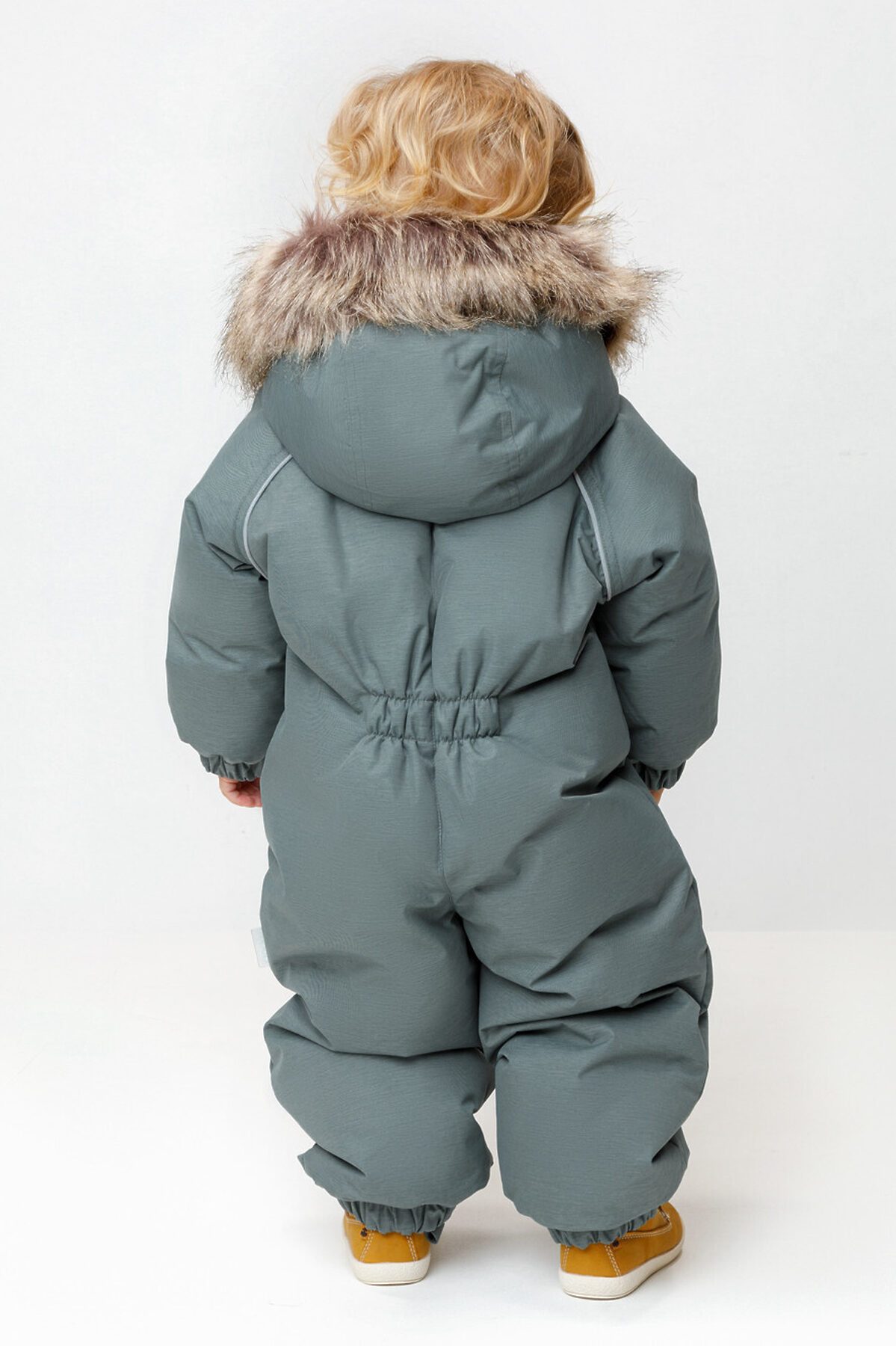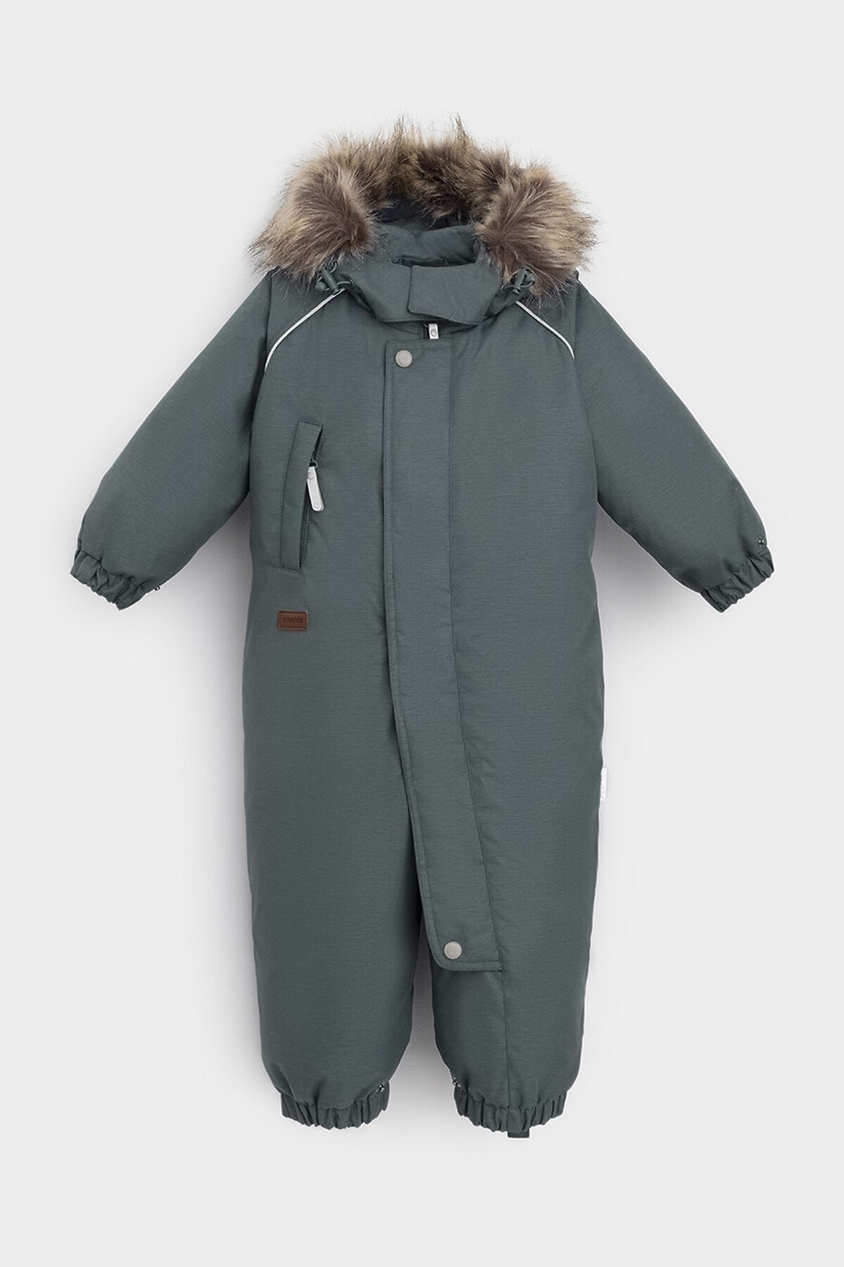 Зимний комбинезон ясельный с натуральным утеплителем из гусиного пуха (70%) и пера (30%). Выполнен из мембранной ткани с дополнительной тефлоновой обработкой, которая предохраняет изделие от загрязнений и отталкивает влагу. Подклад выполнен из 100% хлопка. Комбинезон застёгивается на молнию и внешнюю планку на липучках, предусмотрена защита подбородка. Несъёмный капюшон имеет эластичную утяжку со стопперами и отстёгивающийся мех на молнии. Резинка по спинке для лучшего прилегания. На груди карман на молнии. По рукавам и низу изделия эластичные манжеты, на ножках отстёгивающиеся силиконовые штрипки. В размерах с 68-74 по 80-86 в комплекте идут рукавицы и пинетки. Во всех изделиях верхнего ассортимента для безопасности ребёнка предусмотрены светоотражающие элементы.