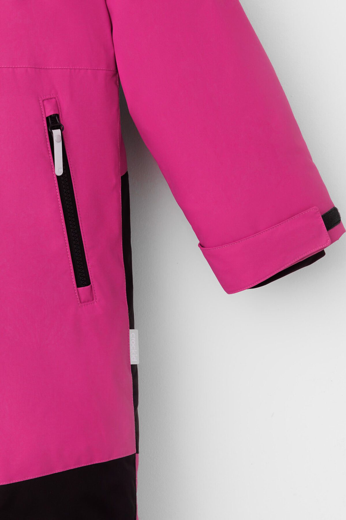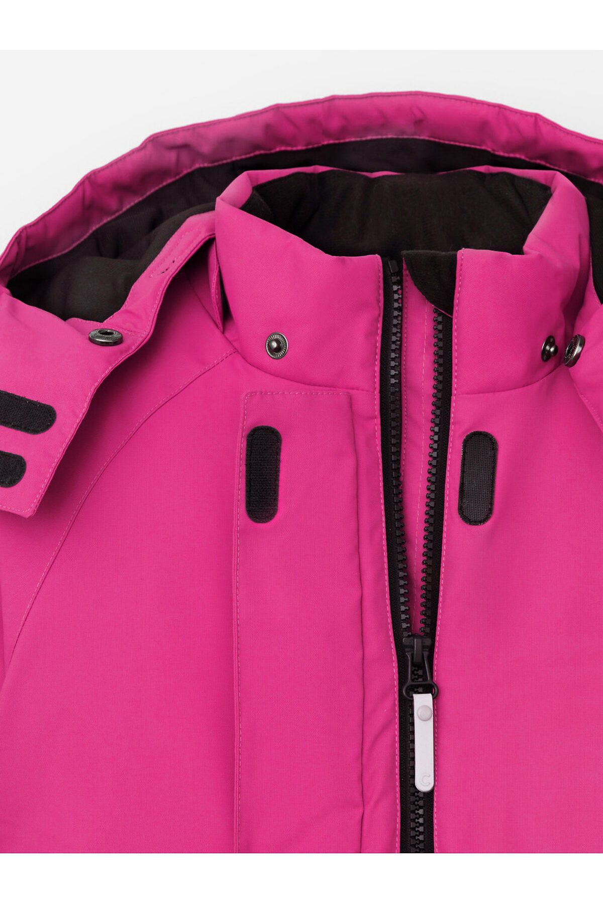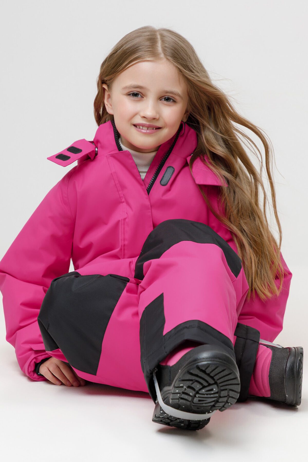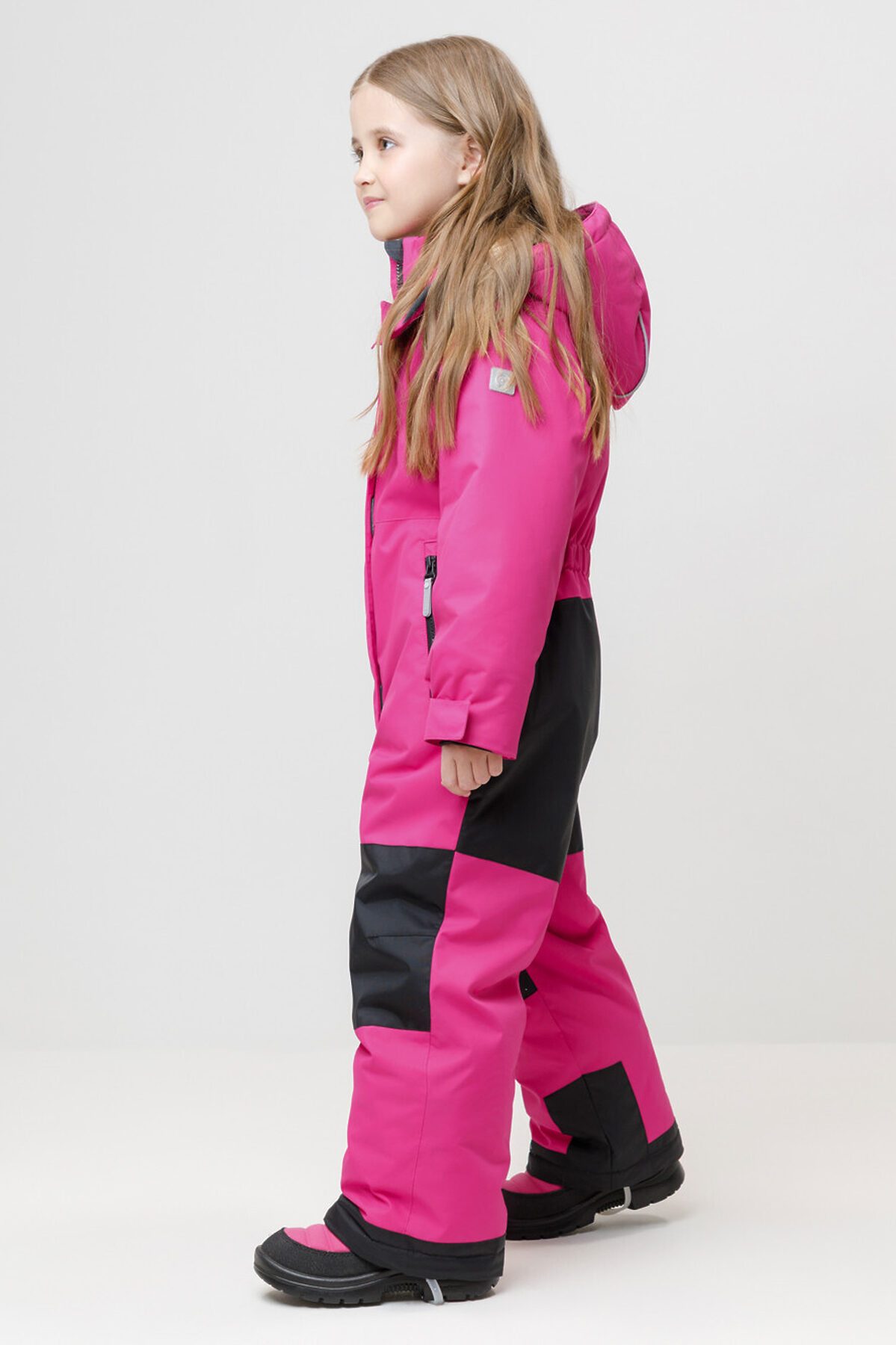 Зимний комбинезон для девочки с утеплителем SEE®: 250 г/м2 . Выполнен из мембранной ткани с дополнительной тефлоновой обработкой, которая предохраняет изделие от загрязнений и отталкивает влагу. Подклад выполнен из 100% полиэстера Tricot. Комбинезон застёгивается на молнию и внешнюю планку на липучках и кнопках, предусмотрена защита подбородка. Съёмный капюшон имеет эластичную утяжку со стопперами. Резинка по спинке обеспечивает лучшее прилегание. По бокам два кармана на молнии. Внутренние мягкие манжеты в рукавах. Рукава регулируются по ширине с помощью липучки. Внутренняя противоснежная юбка защищает обувь от попадания снега и удерживает комбинезон в закреплённом положении, предусмотрены отстёгивающиеся штрипки до размера 116-122 включительно. Во всех изделиях верхнего ассортимента для безопасности ребёнка предусмотрены светоотражающие элементы.