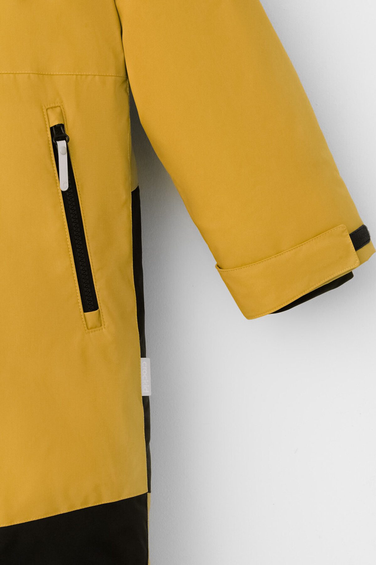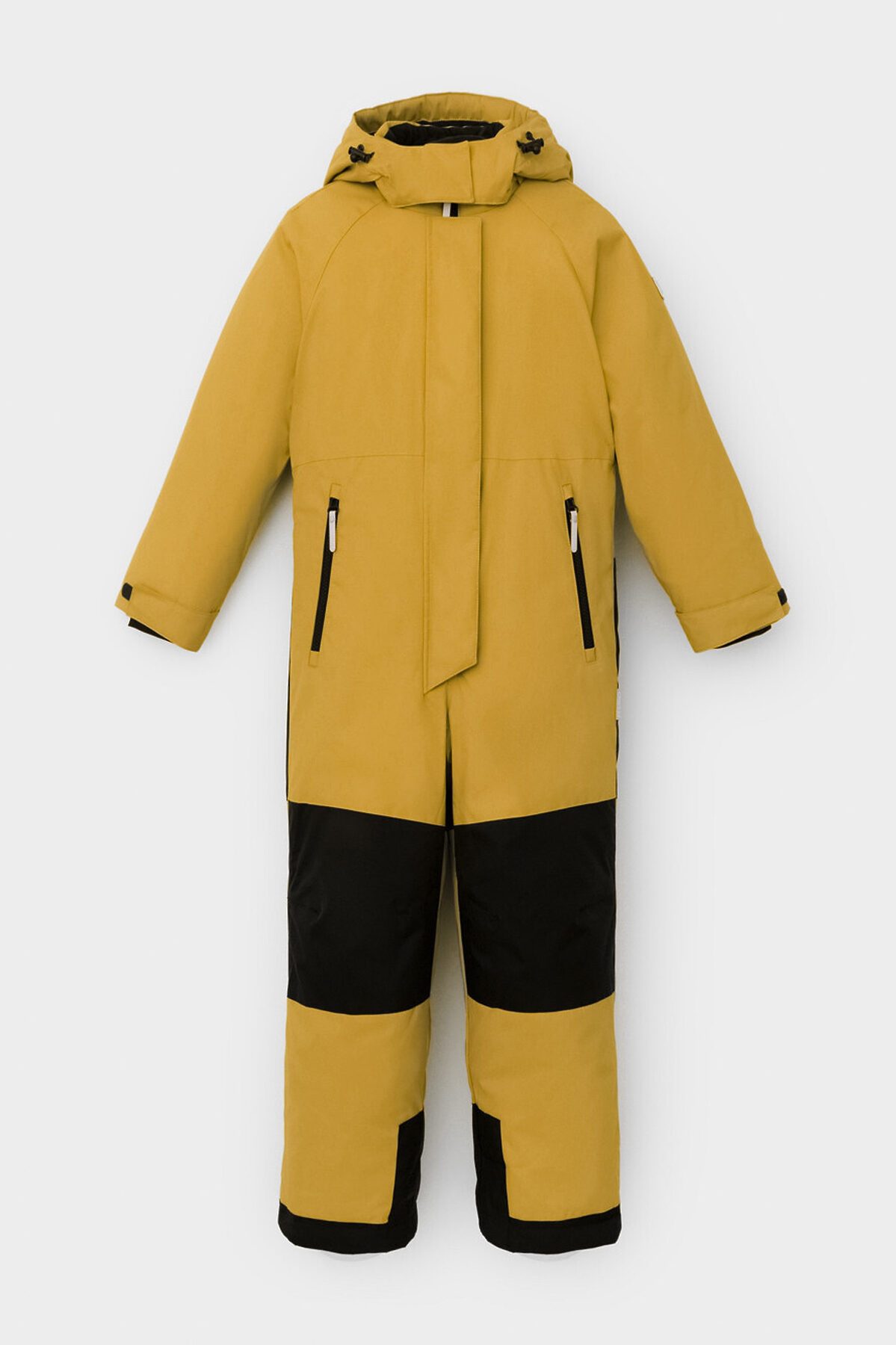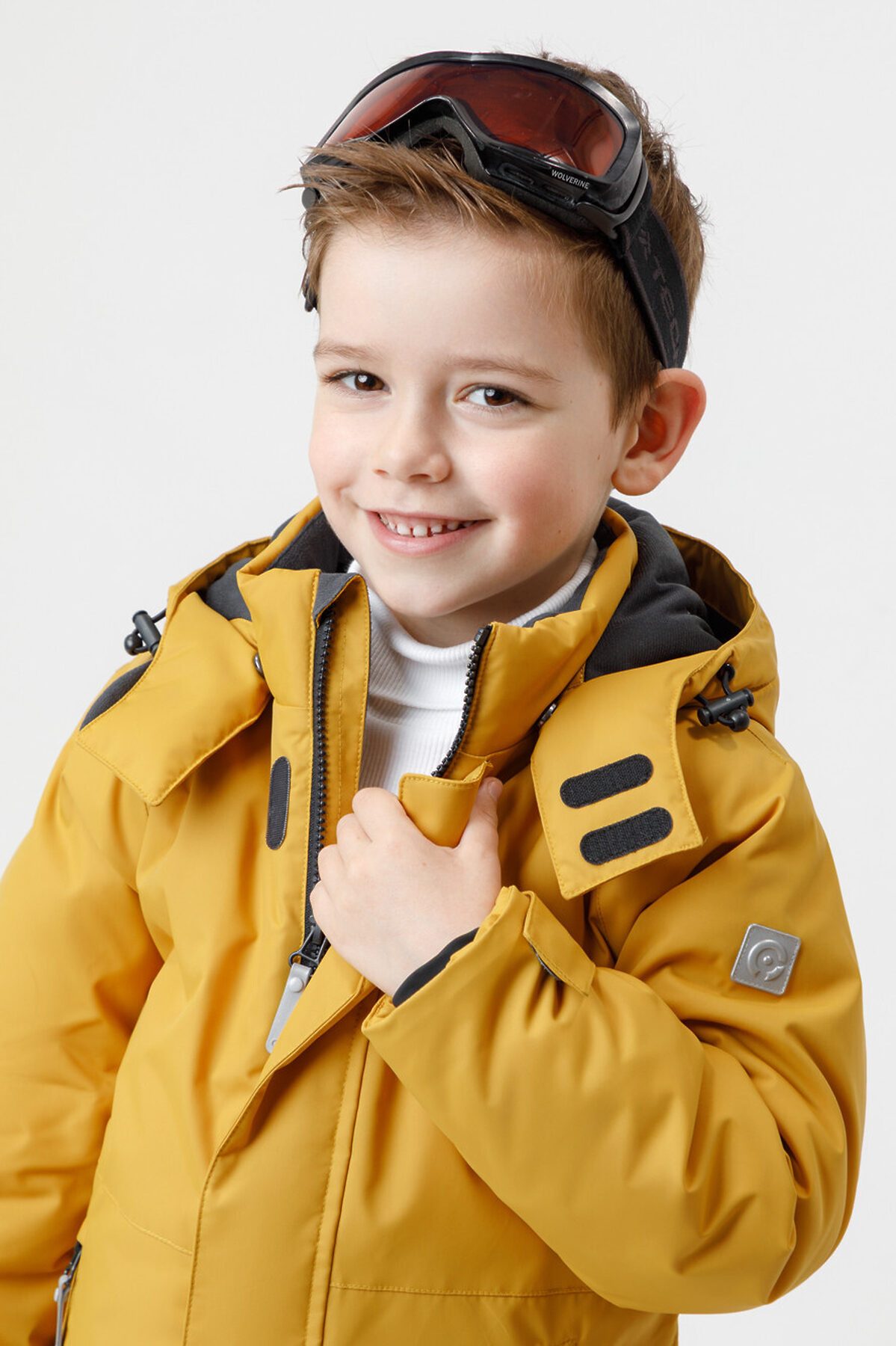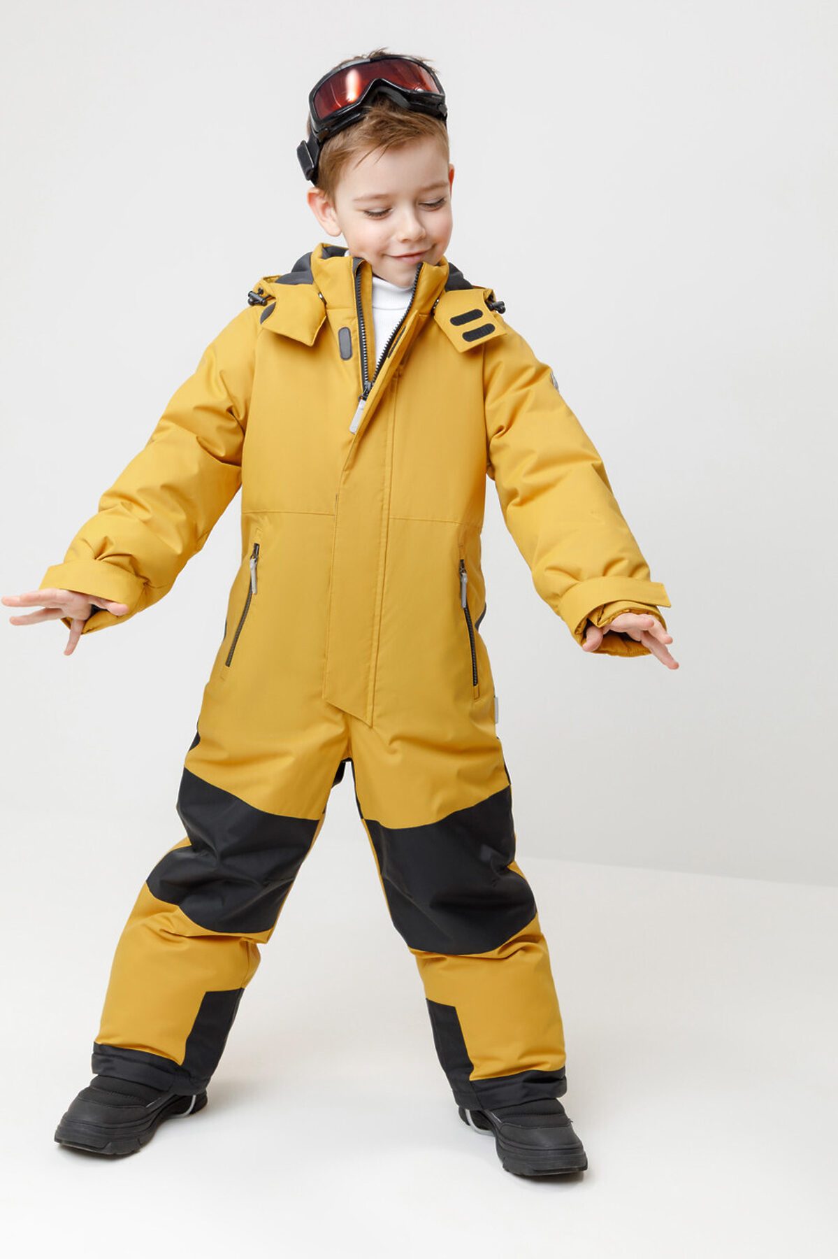 Зимний комбинезон для мальчика с утеплителем SEE®: 250 г/м2 . Выполнен из мембранной ткани с дополнительной тефлоновой обработкой, которая предохраняет изделие от загрязнений и отталкивает влагу. Подклад выполнен из 100% полиэстера Tricot. Комбинезон застёгивается на молнию и внешнюю планку на липучках и кнопках, предусмотрена защита подбородка. Съёмный капюшон имеет эластичную утяжку со стопперами. Резинка по спинке обеспечивает лучшее прилегание. По бокам два кармана на молнии. На рукавах дополнительние внутренние манжеты, ширина регулируются с помощью липучки. Внутренняя противоснежная юбка по низу изделия защищает обувь от попадания снега и удерживает комбинезон в закреплённом положении. В размерах с 98-104 по 116-122 предусмотрены отстёгивающиеся штрипки. Во всех изделиях верхнего ассортимента для безопасности ребёнка предусмотрены светоотражающие элементы.