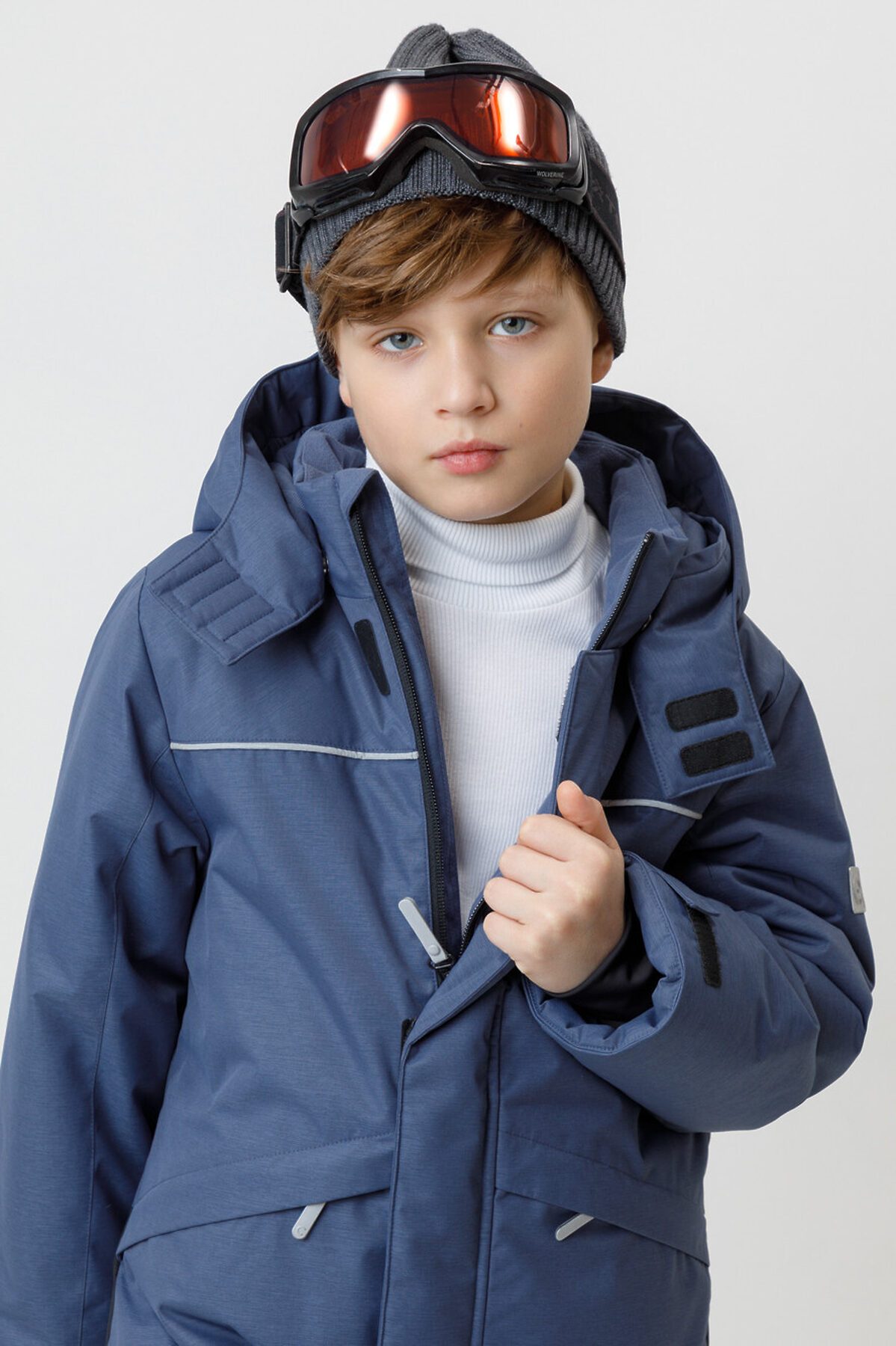 Зимний комбинезон для мальчика с утеплителем Fellex®: 250 г/м2 . Выполнен из мембранной ткани с дополнительной тефлоновой обработкой, которая предохраняет изделие от загрязнений и отталкивает влагу. Подклад выполнен из 100% полиэстера Tricot. Комбинезон застёгивается на молнию и внешнюю планку на липучках и кнопках, предусмотрена защита подбородка. Съёмный капюшон имеет эластичную резинку по бокам. Резинка по спинке обеспечивает лучшее прилегание. По бокам два кармана на молнии. На рукавах эластичные внутренние манжеты, ширина регулируется при помощи липучки. Внутренняя противоснежная юбка по низу изделия защищает обувь от попадания снега и удерживает комбинезон в закреплённом положении. В размерах с 98-104 по 116-122 предусмотрены отстёгивающиеся штрипки. Во всех изделиях верхнего ассортимента для безопасности ребёнка предусмотрены светоотражающие элементы.