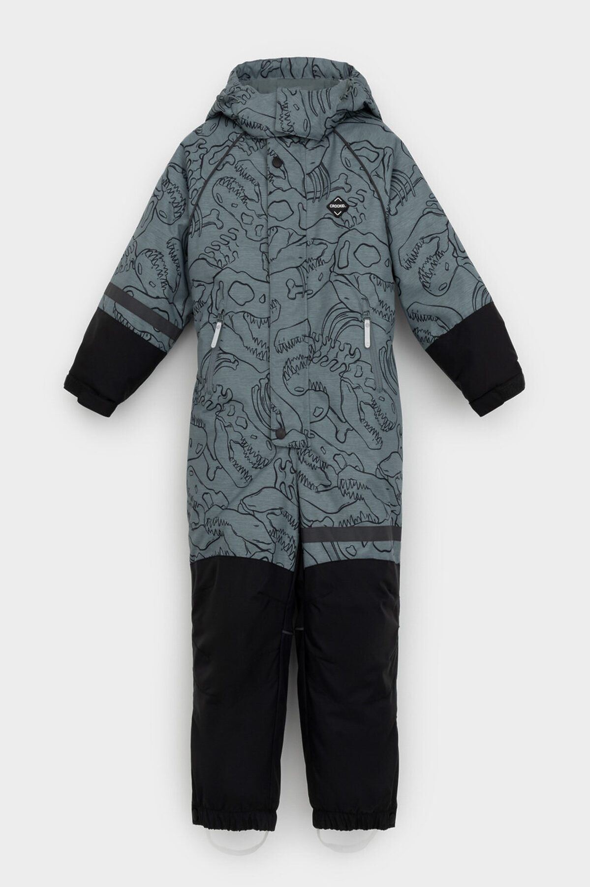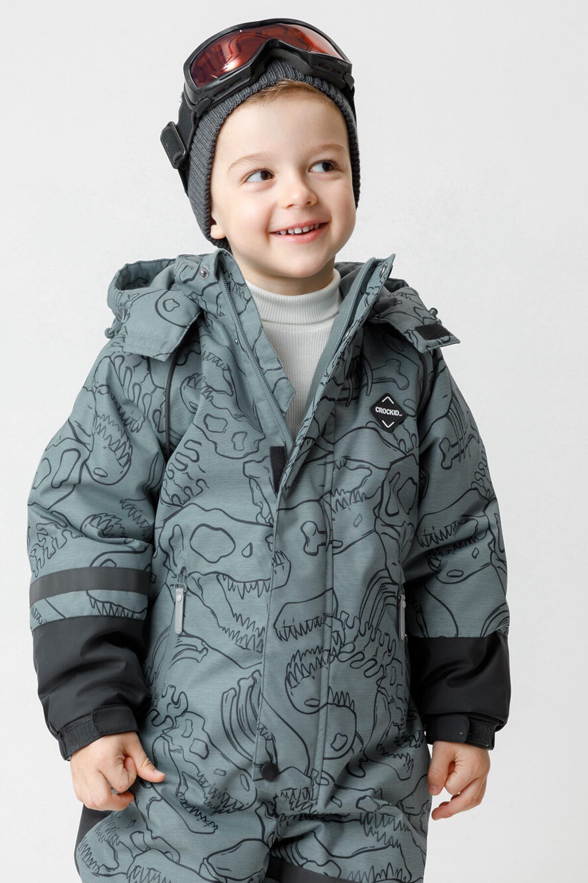 Комбинезон CROCKID, пыльно-бирюзовый, динозавры