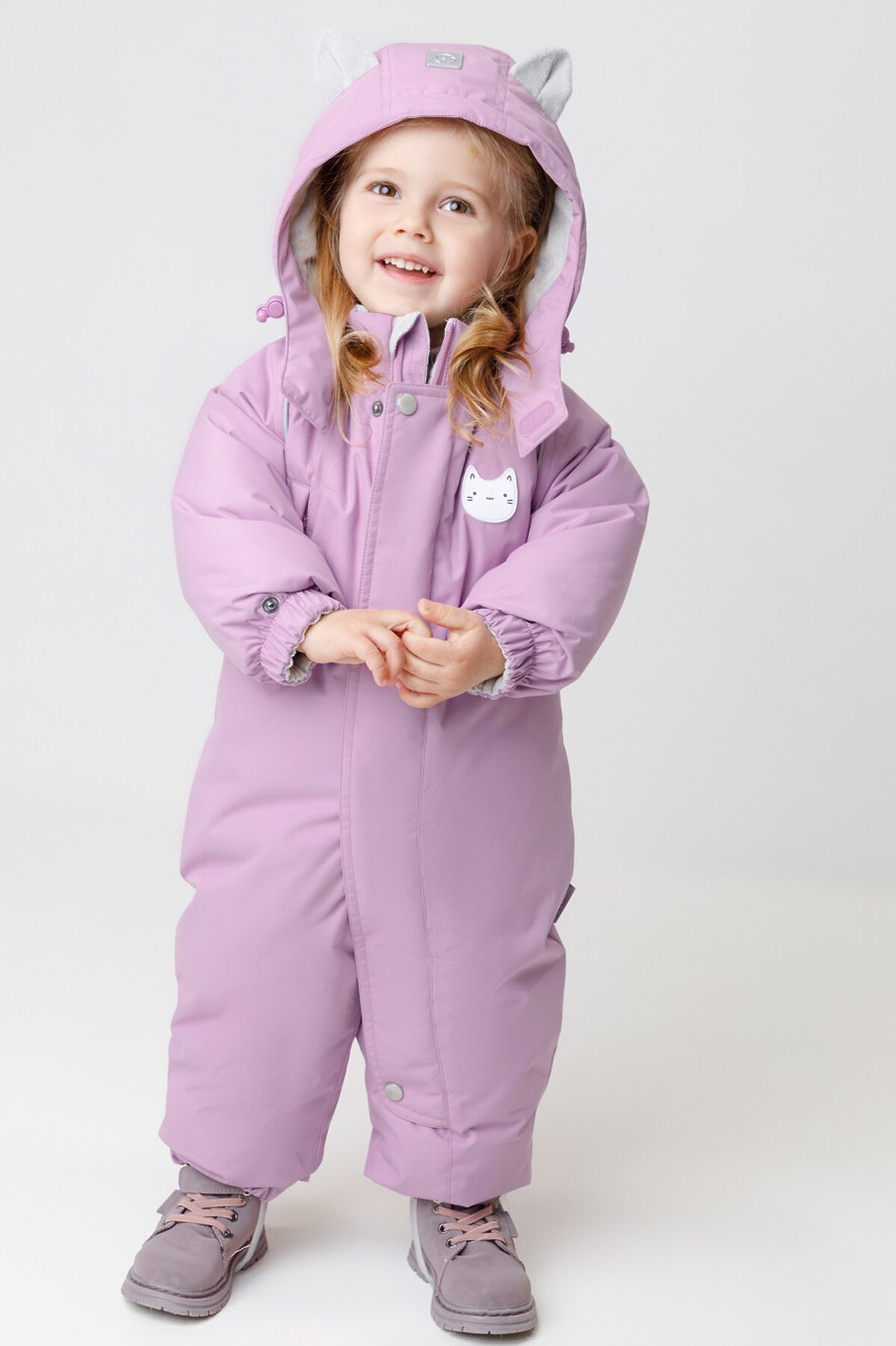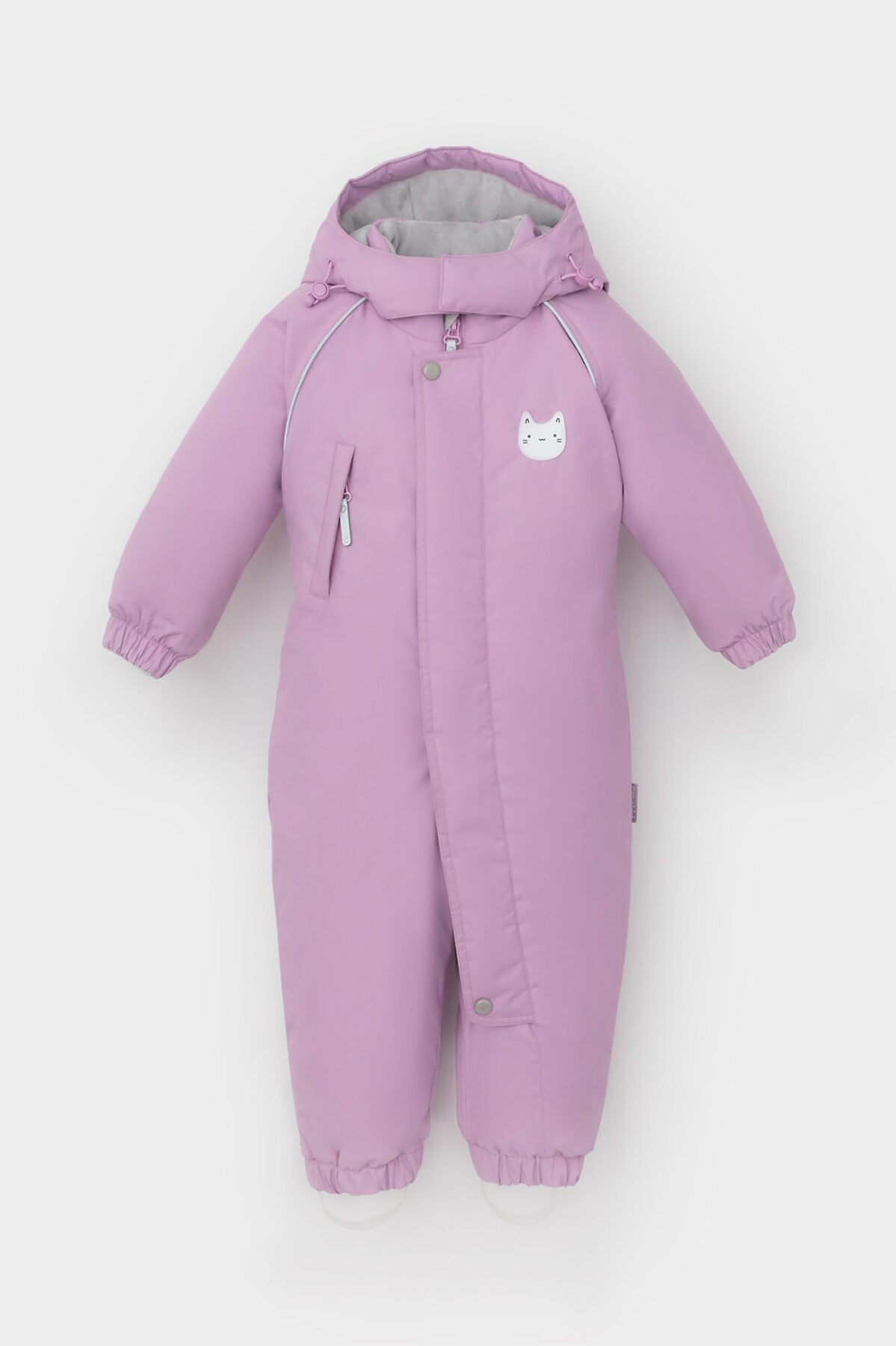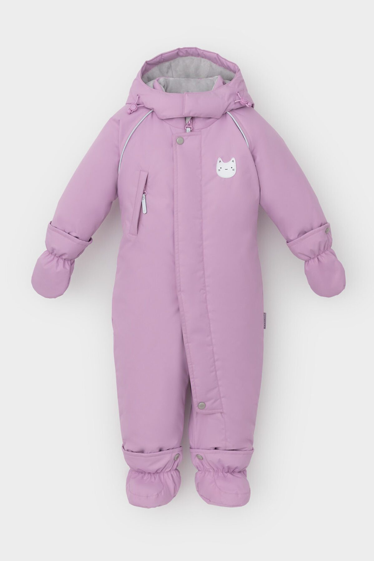 Зимний комбинезон ясельный с утеплителем SEE®: 300 г/м2. Выполнен из мембранной ткани с дополнительной тефлоновой обработкой, которая предохраняет изделие от загрязнений и отталкивает влагу. Подклад выполнен из велюра (80% хлопок, 20% полиэстер) и полиэстера Tricot. Комбинезон застёгивается на молнию и внешнюю планку на липучках, предусмотрена защита подбородка. Несъёмный капюшон имеет эластичную утяжку со стопперами и декоративные ушки. Резинка по спинке для лучшего прилегания. На груди карман на молнии. По рукавам и низу изделия эластичные манжеты, на ножках отстёгивающиеся силиконовые штрипки. До размера 80-86 включительно в комплекте идут рукавицы и пинетки. Во всех изделиях верхнего ассортимента для безопасности ребёнка предусмотрены светоотражающие элементы.