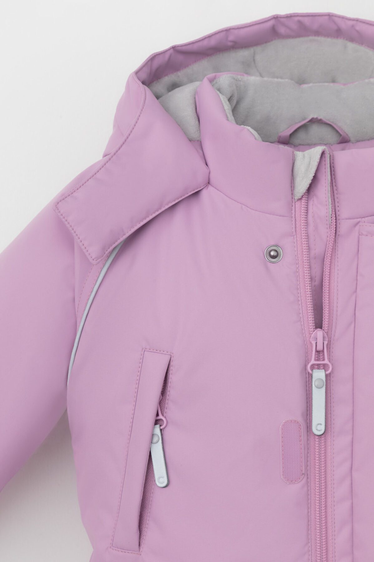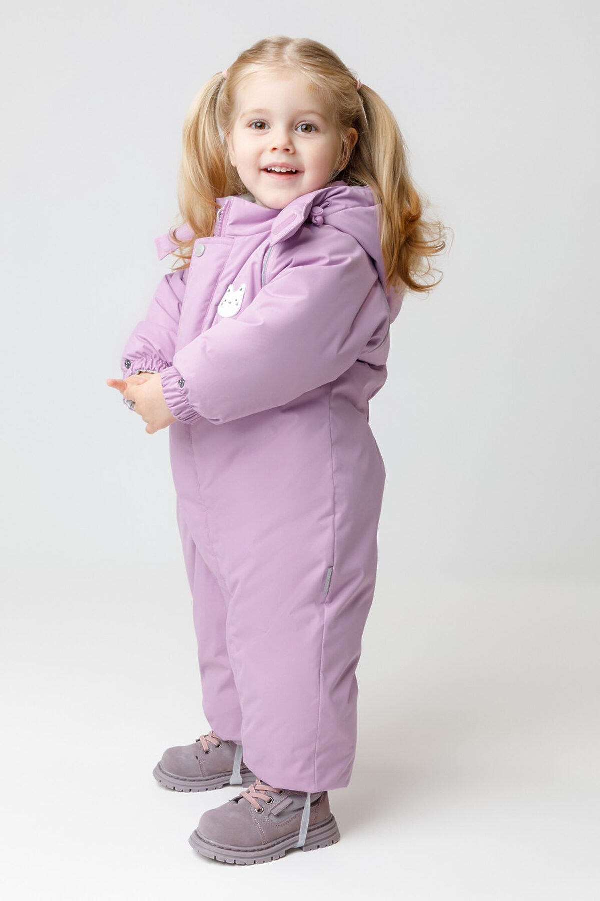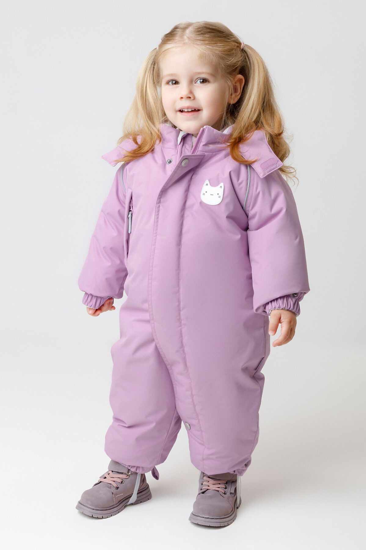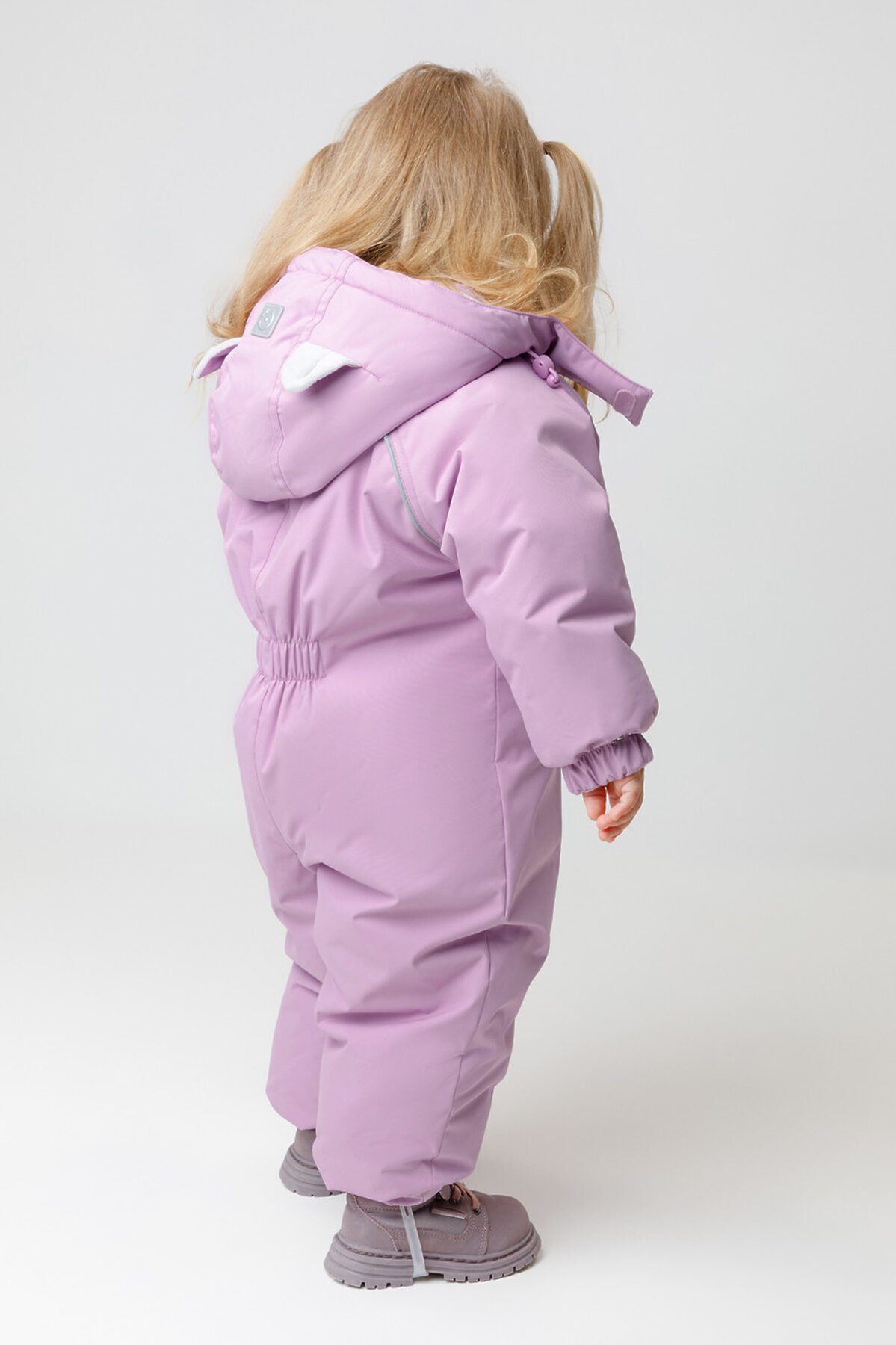 Зимний комбинезон ясельный с утеплителем SEE®: 300 г/м2. Выполнен из мембранной ткани с дополнительной тефлоновой обработкой, которая предохраняет изделие от загрязнений и отталкивает влагу. Подклад выполнен из велюра (80% хлопок, 20% полиэстер) и полиэстера Tricot. Комбинезон застёгивается на молнию и внешнюю планку на липучках, предусмотрена защита подбородка. Несъёмный капюшон имеет эластичную утяжку со стопперами и декоративные ушки. Резинка по спинке для лучшего прилегания. На груди карман на молнии. По рукавам и низу изделия эластичные манжеты, на ножках отстёгивающиеся силиконовые штрипки. До размера 80-86 включительно в комплекте идут рукавицы и пинетки. Во всех изделиях верхнего ассортимента для безопасности ребёнка предусмотрены светоотражающие элементы.