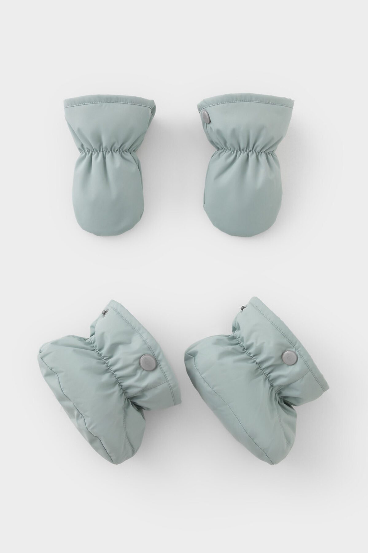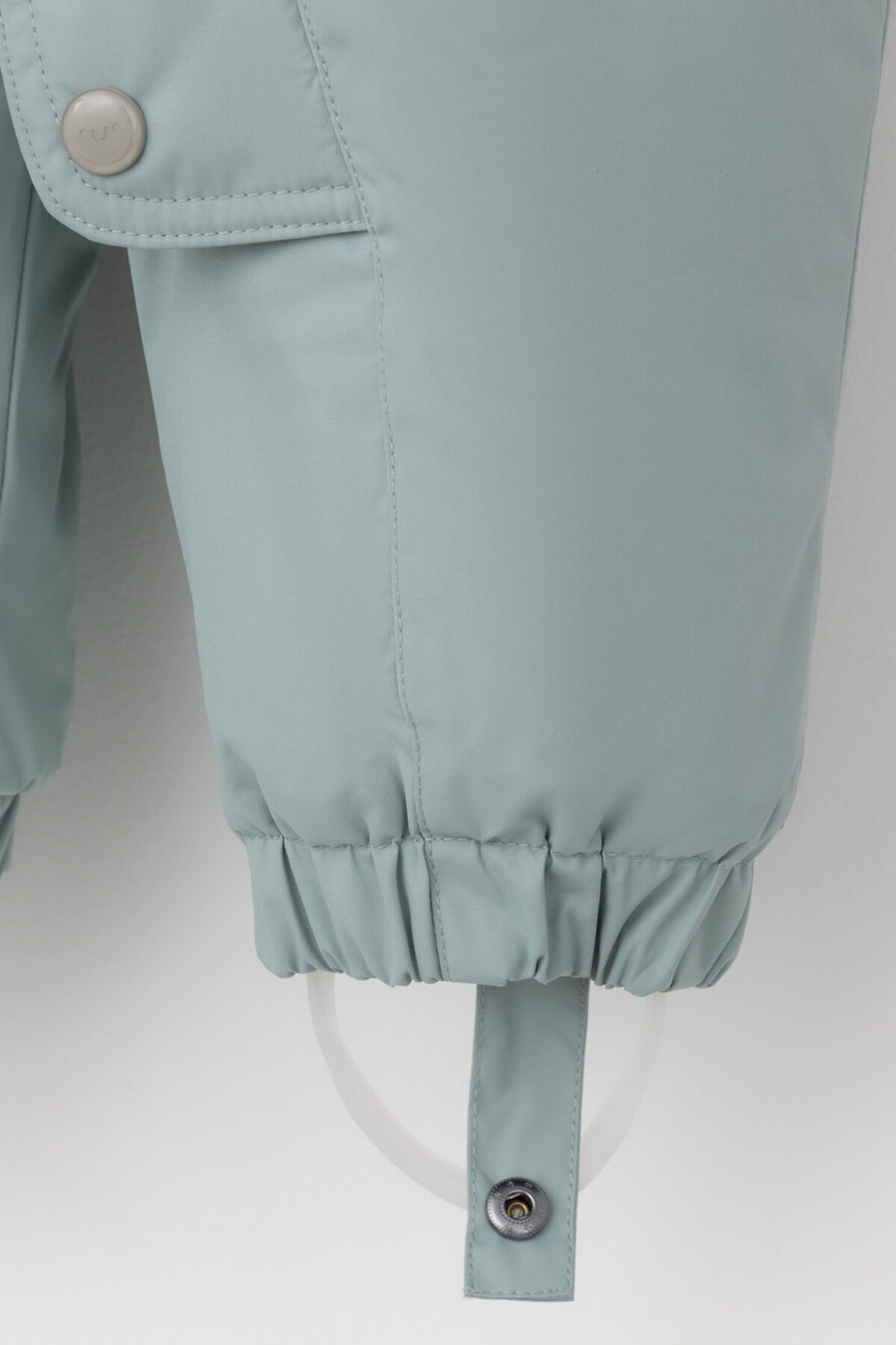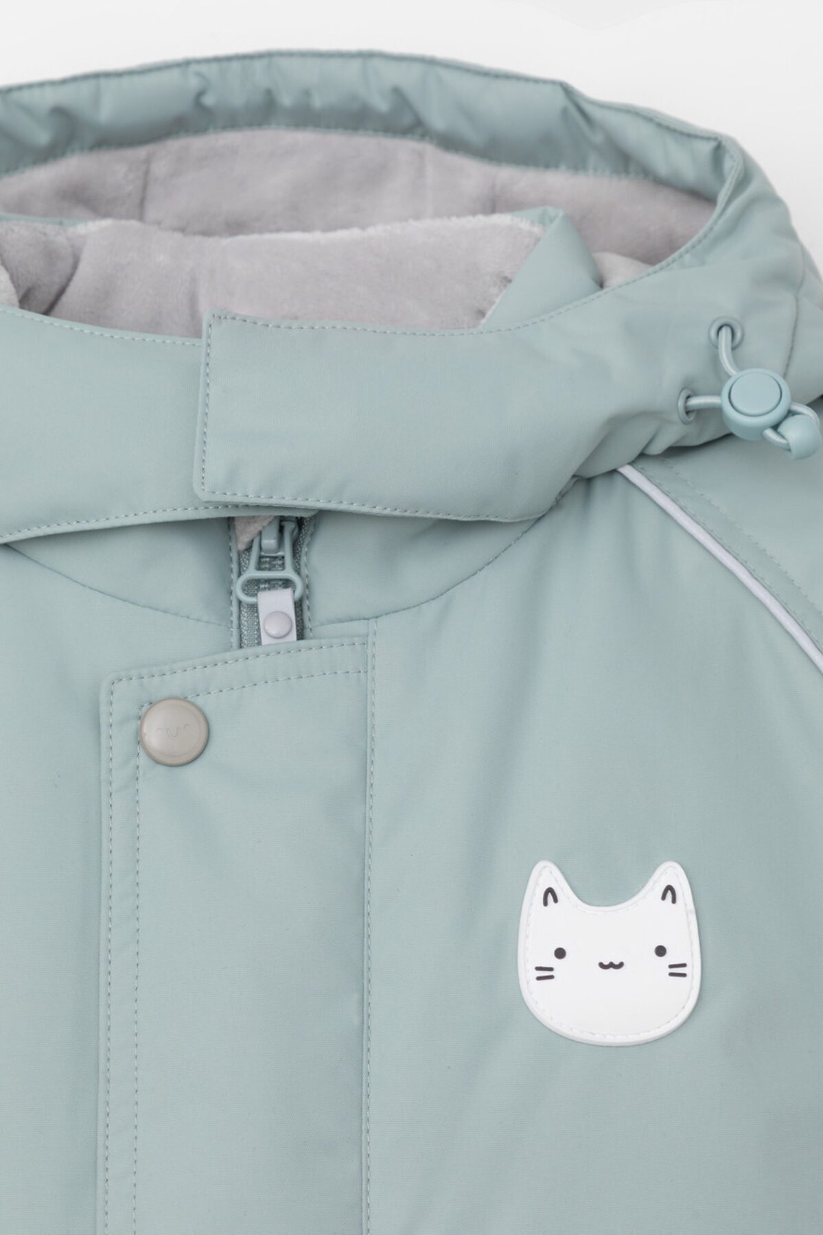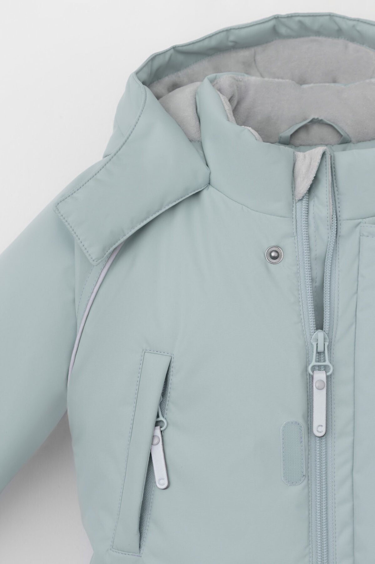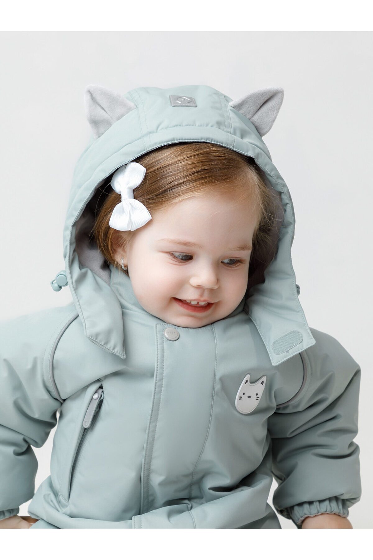 Зимний комбинезон ясельный с утеплителем SEE®: 300 г/м2. Выполнен из мембранной ткани с дополнительной тефлоновой обработкой, которая предохраняет изделие от загрязнений и отталкивает влагу. Подклад выполнен из велюра (80% хлопок, 20% полиэстер) и полиэстера Tricot. Комбинезон застёгивается на молнию и внешнюю планку на липучках, предусмотрена защита подбородка. Несъёмный капюшон имеет эластичную утяжку со стопперами и декоративные ушки. Резинка по спинке для лучшего прилегания. На груди карман на молнии. По рукавам и низу изделия эластичные манжеты, на ножках отстёгивающиеся силиконовые штрипки. До размера 80-86 включительно в комплекте идут рукавицы и пинетки. Во всех изделиях верхнего ассортимента для безопасности ребёнка предусмотрены светоотражающие элементы.
