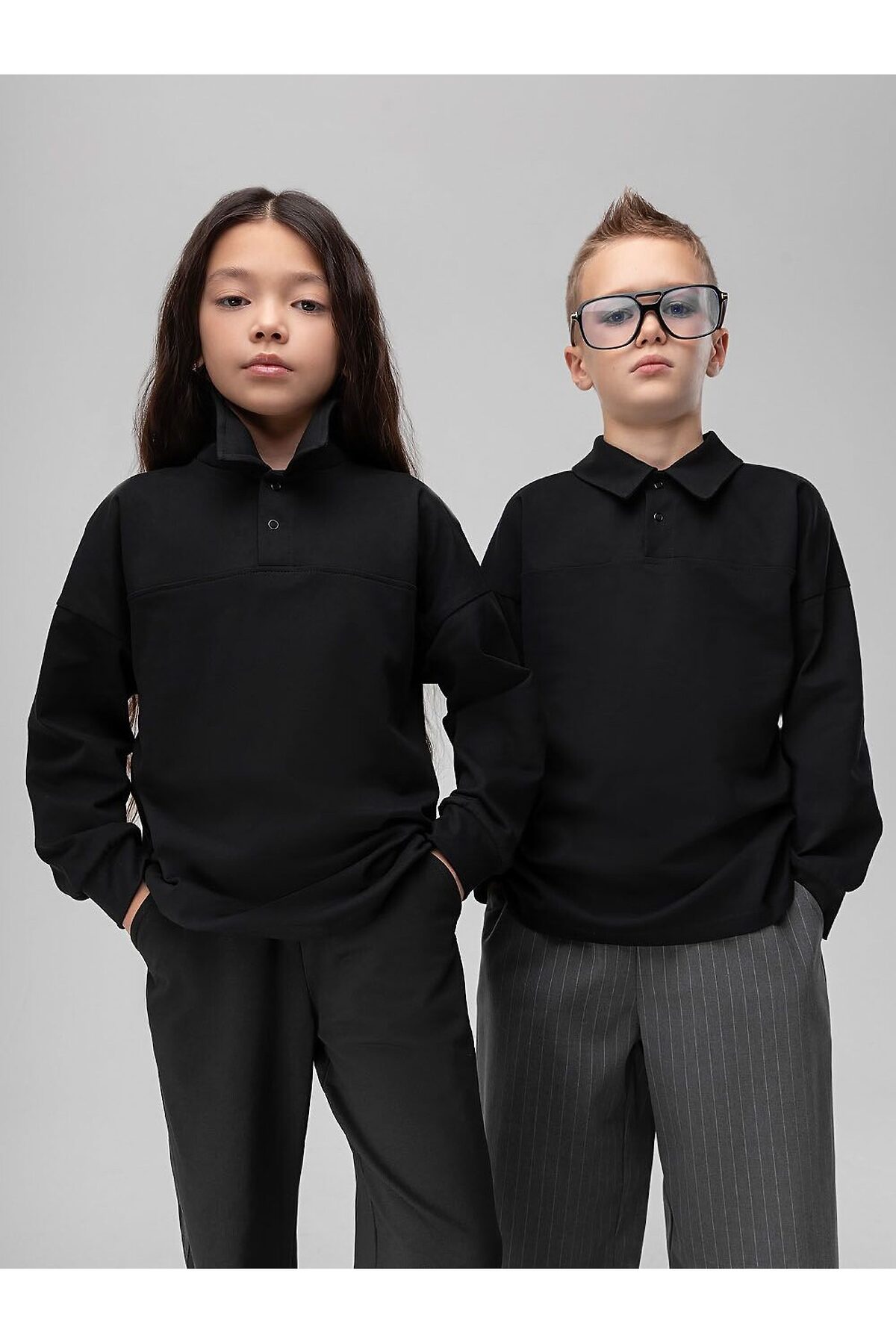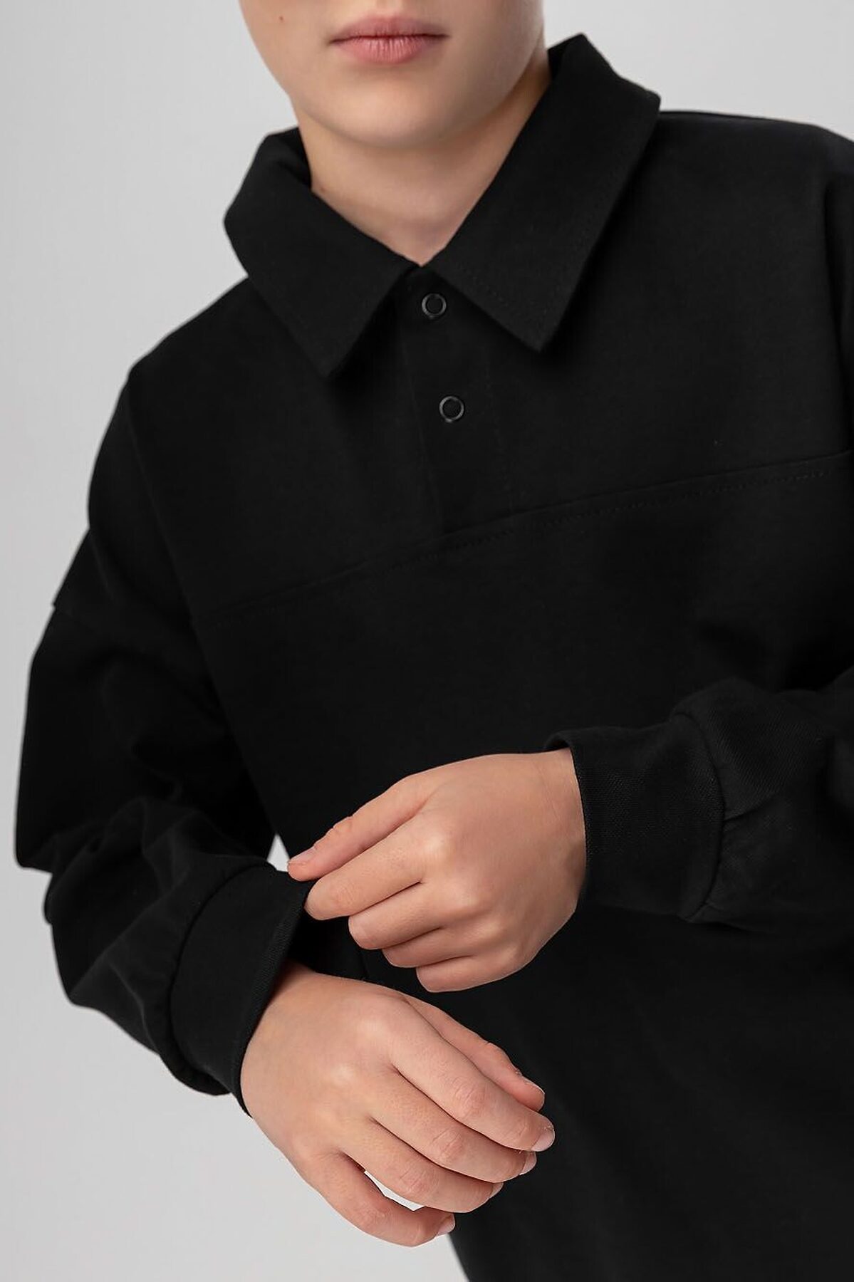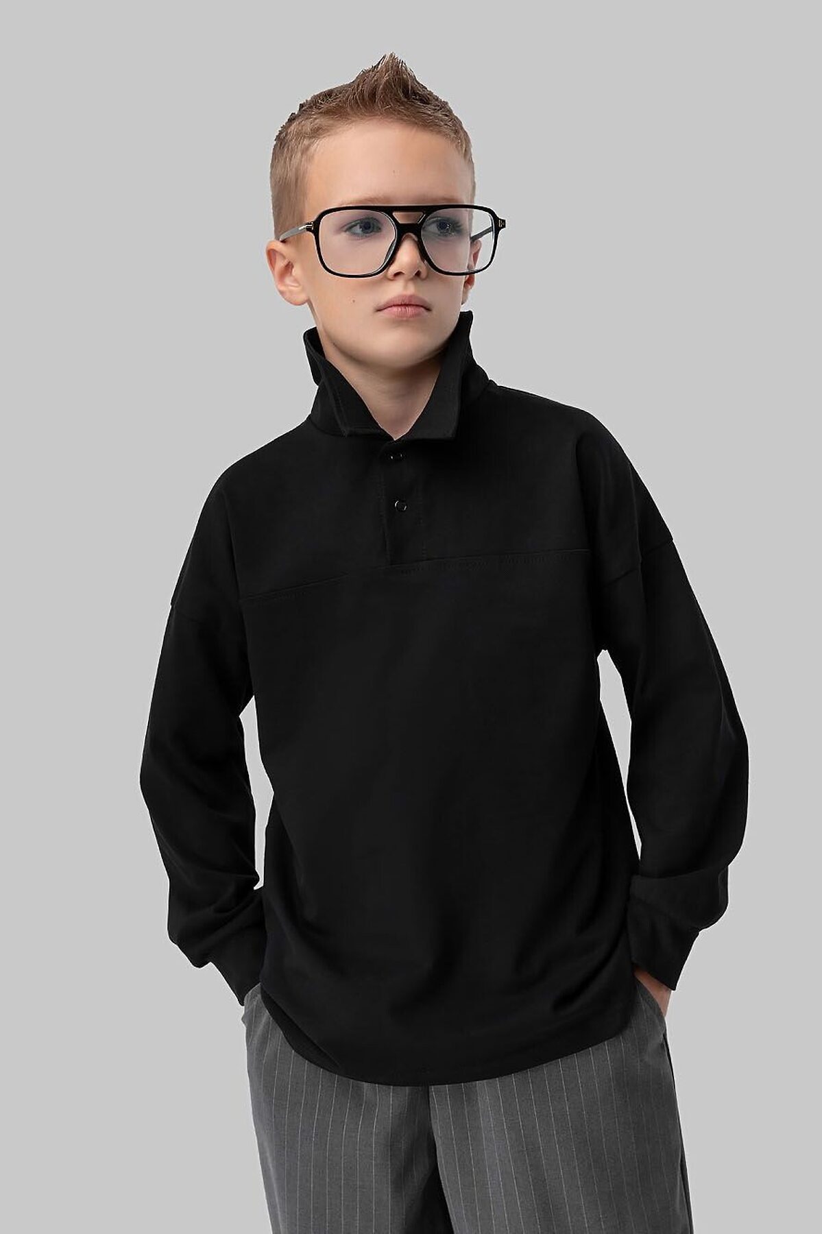 Лонгслив - поло свободного силуэта с длинным рукавом. Лонгслив с отложным воротником и застежкой на две кнопки.