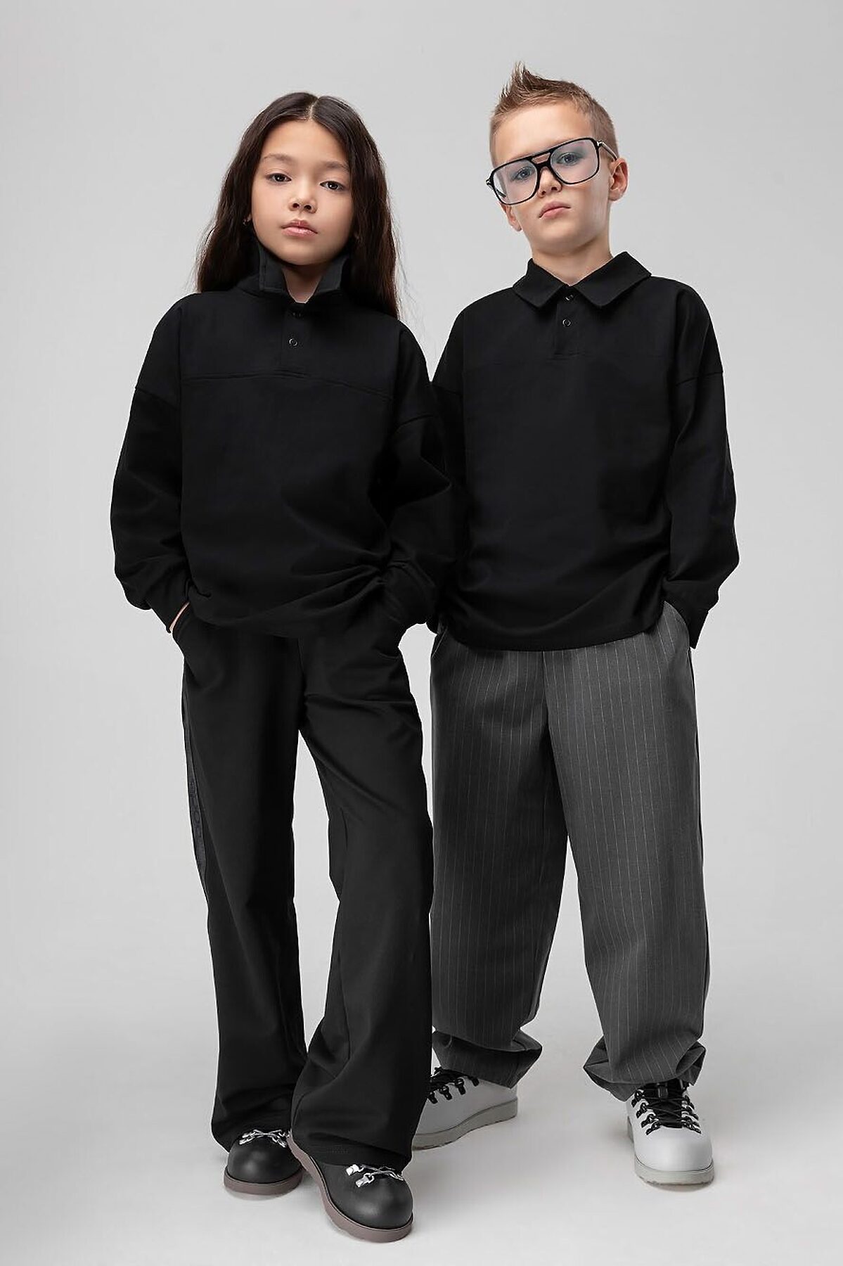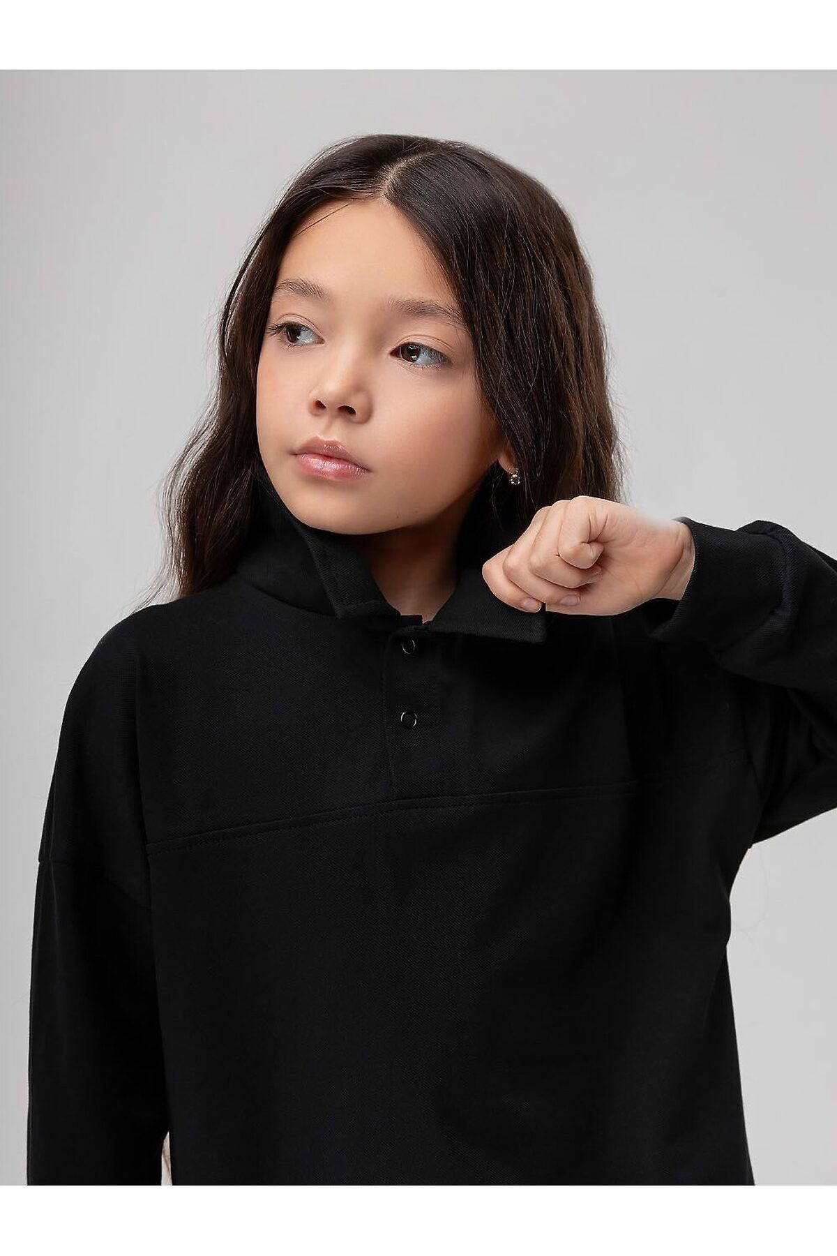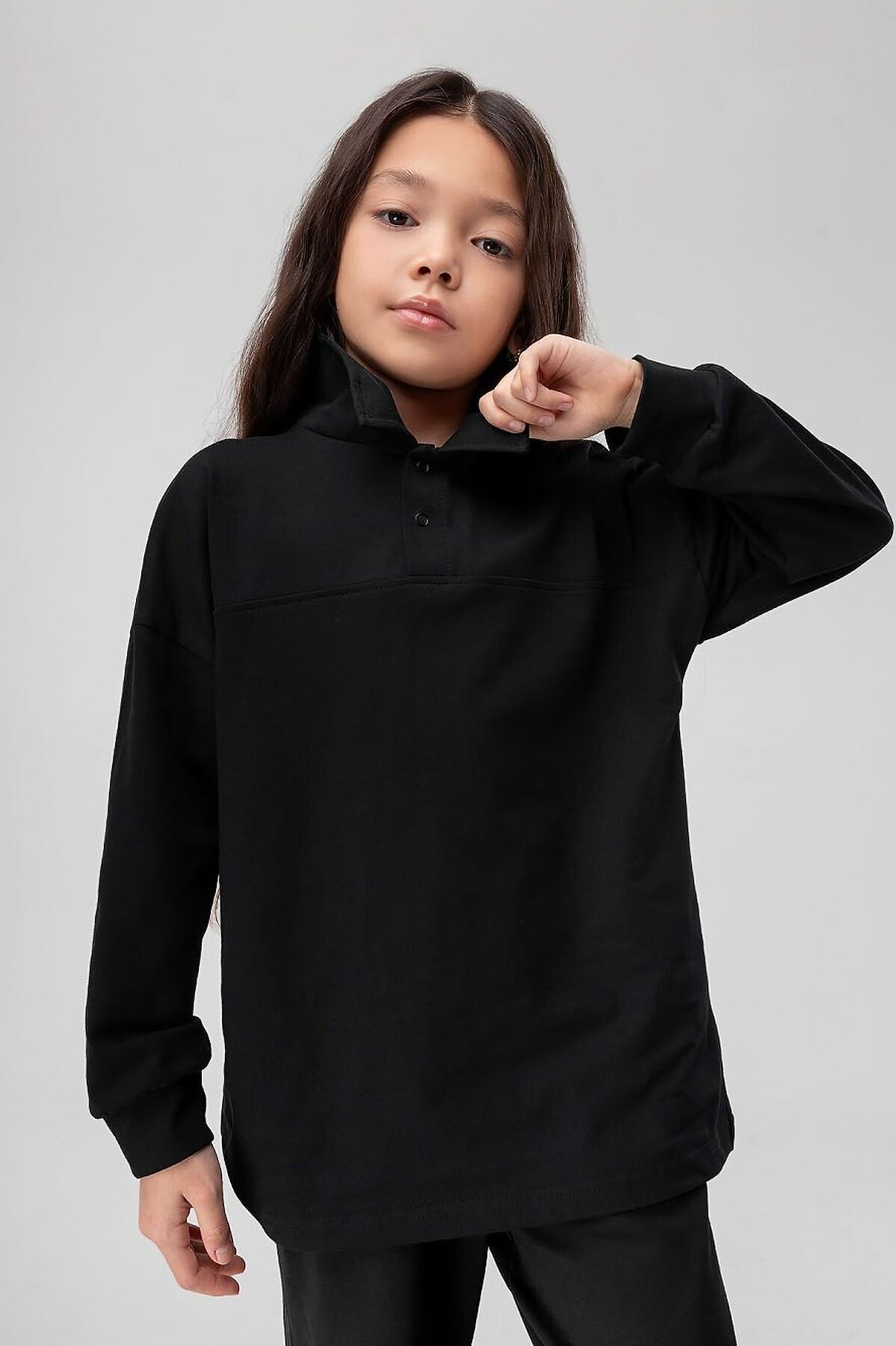 Лонгслив - поло свободного силуэта с длинным рукавом. Лонгслив с отложным воротником и застежкой на две кнопки.