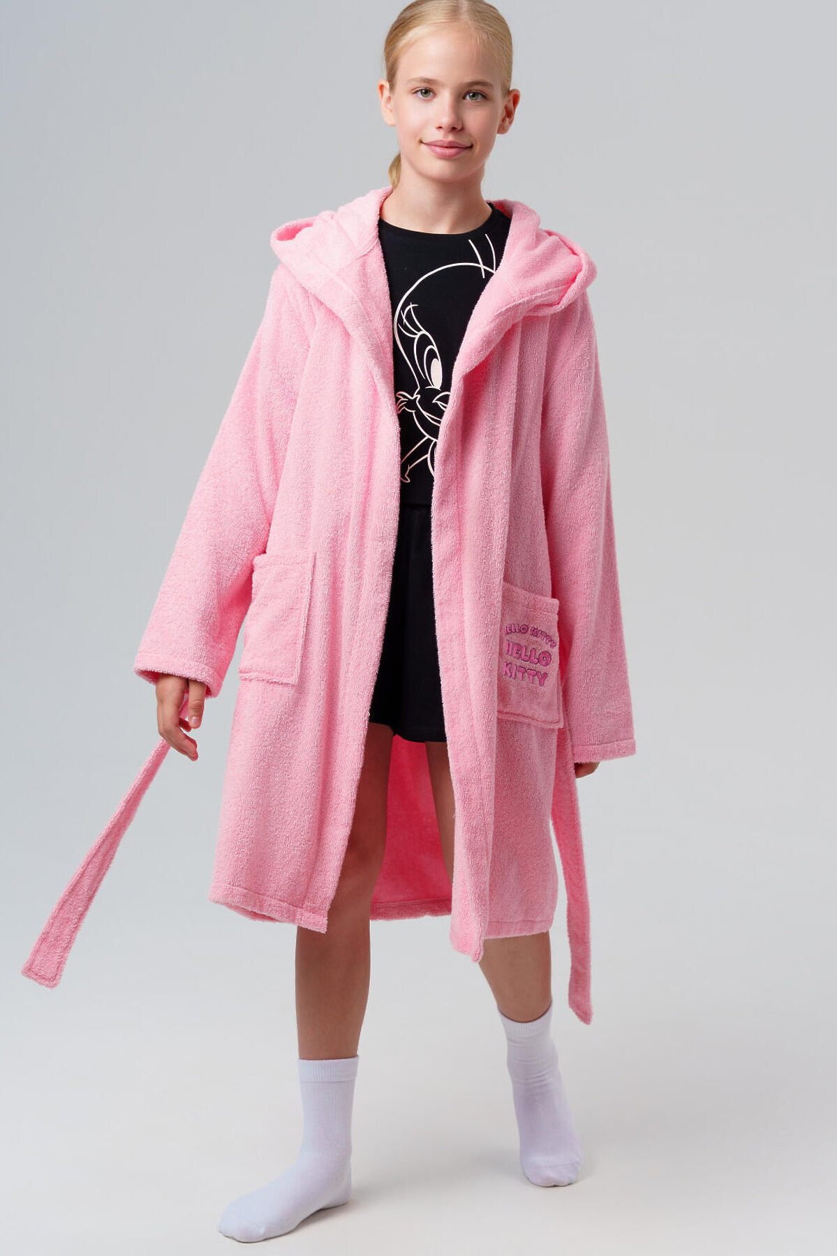 Халат для девочки подростка. Мягкий и уютный махровый халат из высококачественного полотна. 100% натуральный хлопок. Отлично впитывает влагу и позволяет коже дышать. Пришитый пояс, по спинке резинка. Декорированный капюшон.