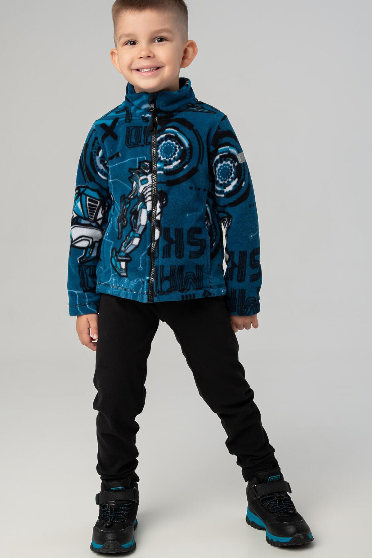 Детская флисовая трикотажная толстовка на молнии для мальчика от PlayToday — универсальный вариант для прохладных дней, сочетающий тепло, комфорт и свободу движений. Преимущества модели: + флис с начёсом (220 г/м²) — тёплый, мягкий, не сковывает движений + два удобных кармана — для мелочей и согрева рук + лёгкая и комфортная в носке — ребёнку удобно активно двигаться Модель выполнена из флиса линии LIGHT с плотностью 220 г/м² и мягким начёсом на внутренней стороне — это идеальный утеплённый слой на каждый день. Эта детская флисовая кофта на молнии — практичный и тёплый выбор для повседневных прогулок, детского сада и активных игр на свежем воздухе. Подходит как флисовая куртка для мальчика, утеплённая кофта на замке или средний слой под зимнюю одежду. Благодаря дышащему материалу и базовому дизайну, флисовая куртка для мальчика легко комбинируется с джинсами, брюками или спортивными штанами. Актуальна для сезона осень–весна, а также как утеплённая поддева зимой. Советы по стилю: Носите с джоггерами, утеплёнными штанами или спортивными комплектами. Отлично сочетается с демисезонной курткой, жилетом или дождевиком. Добавьте шапку-бини или бафф — и образ для прохладной погоды готов. размерный ряд: модель представлена на рост 98–122 см — для мальчиков 3–7 лет.