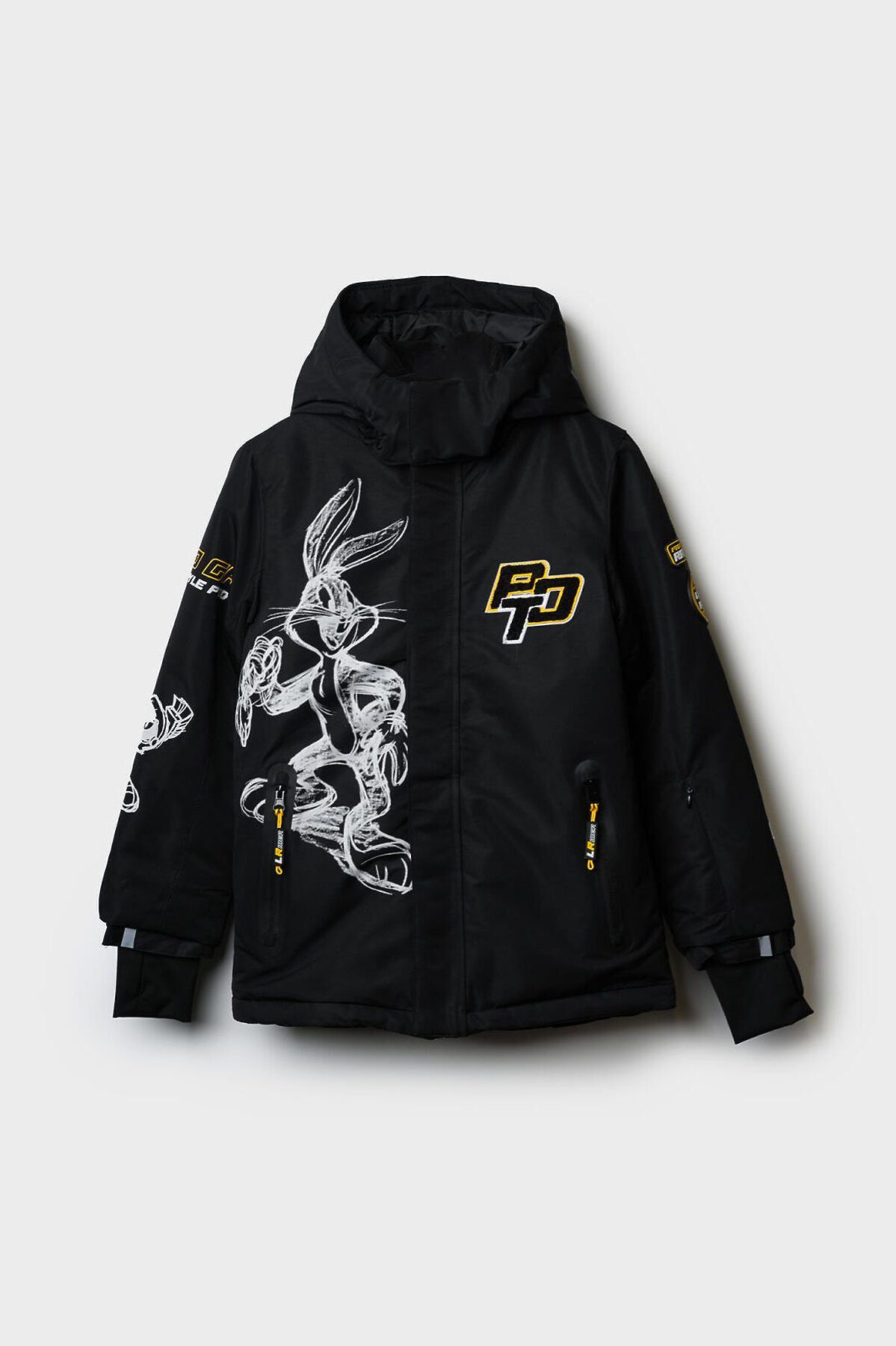 Зимняя мембранная куртка Луни Тюнз для мальчика подростка от PlayToday — универсальная верхняя одежда для школы, прогулок и активного отдыха в холодное время года. Модель сочетает современный дизайн, надёжную защиту от непогоды и удобную посадку, обеспечивая комфорт в морозы и ветреную погоду. Преимущества модели: + температурный режим от –5 до –20 °C — комфорт в умеренные и сильные морозы + современная мембрана 5000*5000 — надёжная защита от влаги и ветра при сохранении воздухообмена + внешняя ветрозащитная планка на липучках + внутренние эластичные лямки + мягкая флисовая подкладка — дополнительное тепло и уют + снегозащитная юбка + съёмный капюшон с утяжкой на стопперах — подстраивается под погоду и образ + карманы на молнии — безопасное хранение телефона, ключей и других мелочей + внутренний карман-сетка + специальный карман для skipass на рукаве — удобство на горнолыжных склонах + рукава на липучке с эластичным манжетом и прорезью для пальца — защита от попадания снега и удержание тепла + светоотражающие элементы Размерный ряд: модель доступна для роста 128–176 см, подойдёт мальчикам младшего и старшего школьного возраста от 8 лет. Когда носить: Куртка подходит для зимы, поздней осени и ранней весны. Она одинаково удобна для ежедневной носки в школу, активных игр во дворе, катания на санках, лыжах или сноуборде, а также поездок за город. Стиль и сочетания: Для школы комбинируйте куртку с утеплёнными брюками или джинсами, ботинками на толстой подошве и рюкзаком. Для выходных и активных прогулок — со спортивными утеплёнными штанами, шапкой-бини и варежками. Эта зимняя подростковая куртка для мальчика от PlayToday — практичное решение на каждый день: тёплая, защищающая от снега и ветра, с функциональными деталями для активного образа жизни.