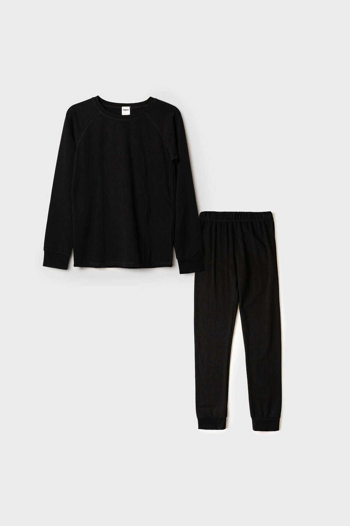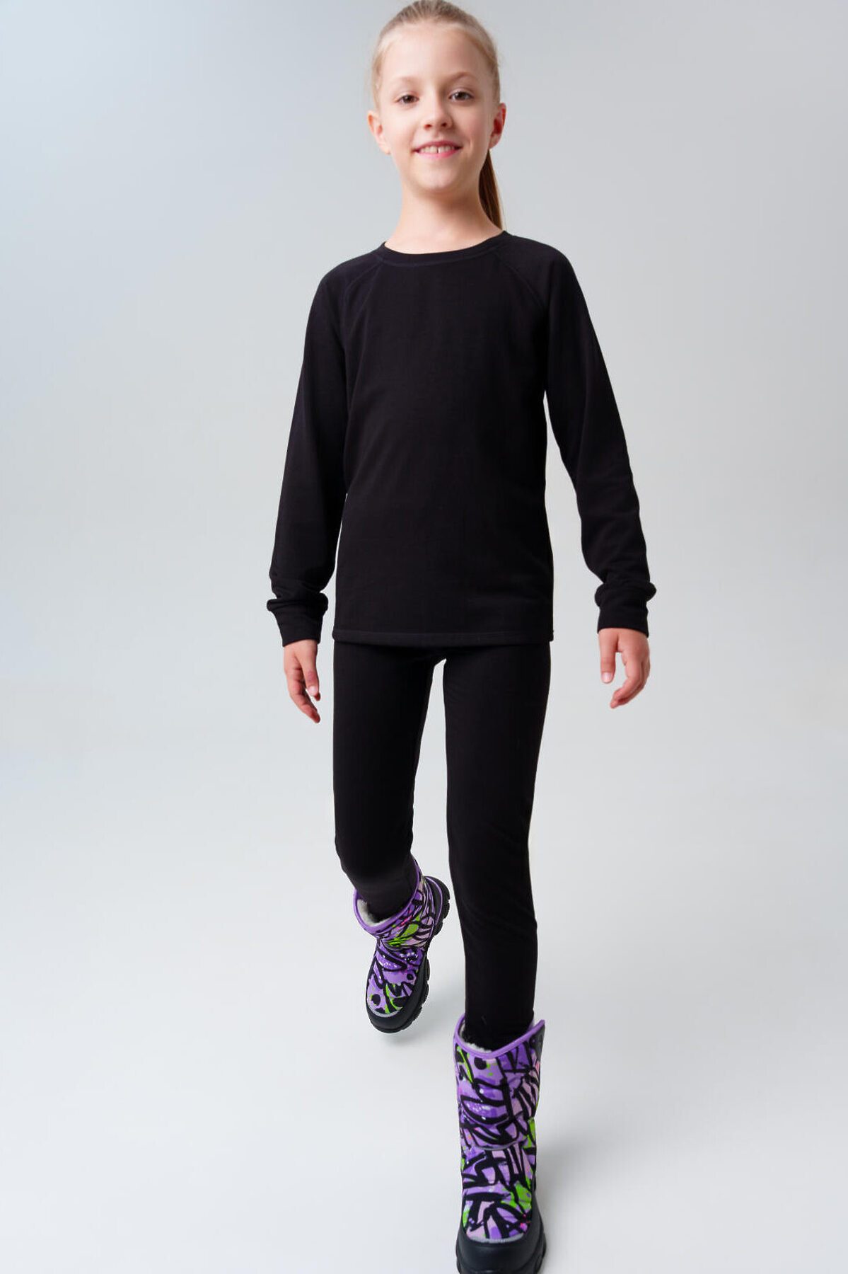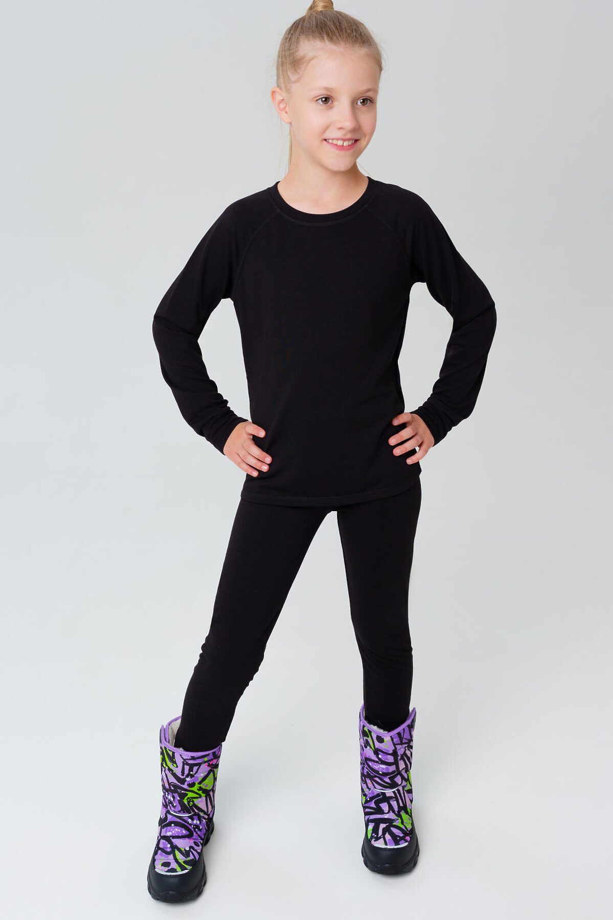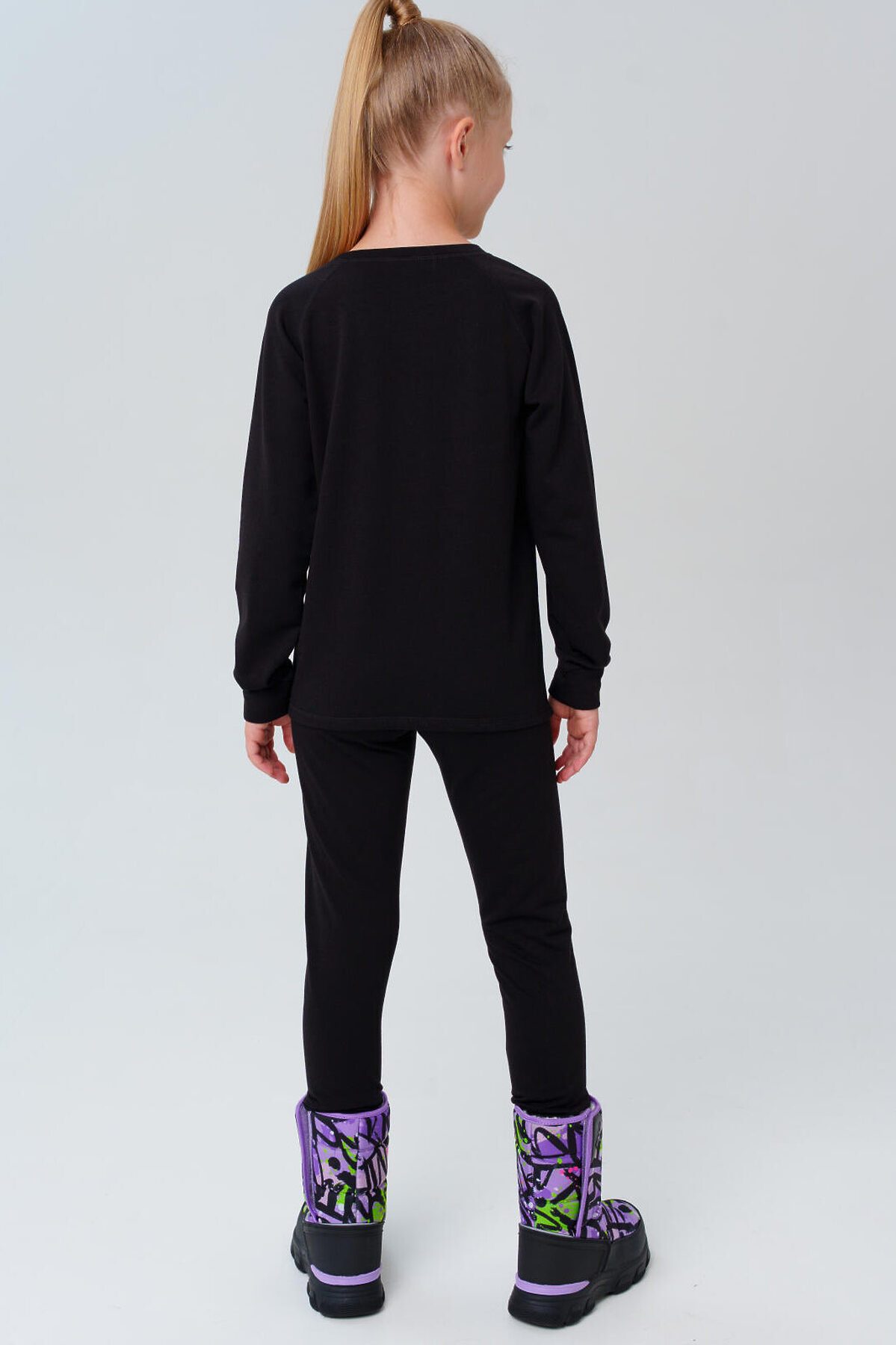 Термокомплект трикот. для девочек: фуфайка (футболка) с длин. рук, брюки для эпизод. использования PLAYTODAY, черный