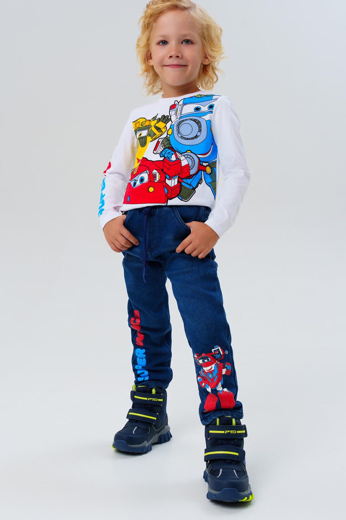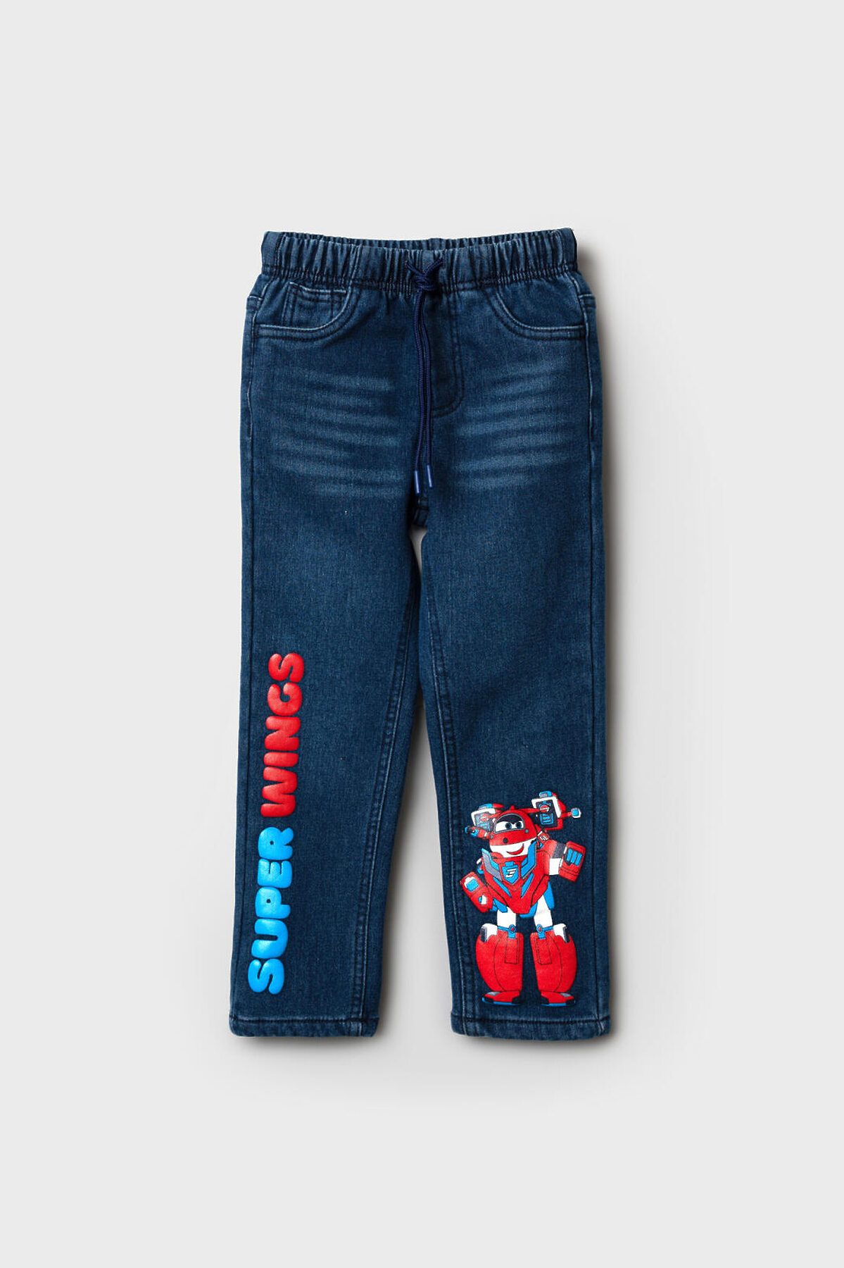 Джинсы детские утеплённые на флисе от PlayToday для мальчика— тёплая и стильная модель для мальчиков, которая сочетает комфорт, функциональность и яркие акценты. Преимущества модели: + утеплённые флисом — идеально для прохладной погоды + пояс на эластичной резинке со шнурком для удобной регулировки + свободный крой со средней посадкой — комфорт без ограничений + пять функциональных карманов + яркие принты Super Wings на штанинах Модель выполнена из синего денима средней плотности с мягкой флисовой подкладкой. Джинсы надёжно защищают от холода, оставаясь при этом комфортными и приятными к телу. Прочный материал устойчив к износу и легко переносит активную носку. Пояс на широкой резинке со шнурком позволяет подстроить посадку под фигуру ребёнка — джинсы удобно сидят и не сползают даже во время подвижных игр. Свободный крой и средняя посадка обеспечивают свободу движений в любой ситуации. Пять карманов — два боковых, два задних и один маленький дополнительный — делают модель функциональной и удобной для повседневного использования. Яркие акценты — два резиновых принта на передних штанинах — добавляют образу динамичности и настроения, которые точно оценят дети. Эти утеплённые джинсы легко сочетаются с футболками, лонгсливами, худи, свитшотами и верхней одеждой. Они подойдут как для школы, так и для прогулок, поездок и активного отдыха. Материал сохраняет форму и насыщенный цвет даже после многократных стирок. Подходят для мальчиков от 3 до 7 лет.