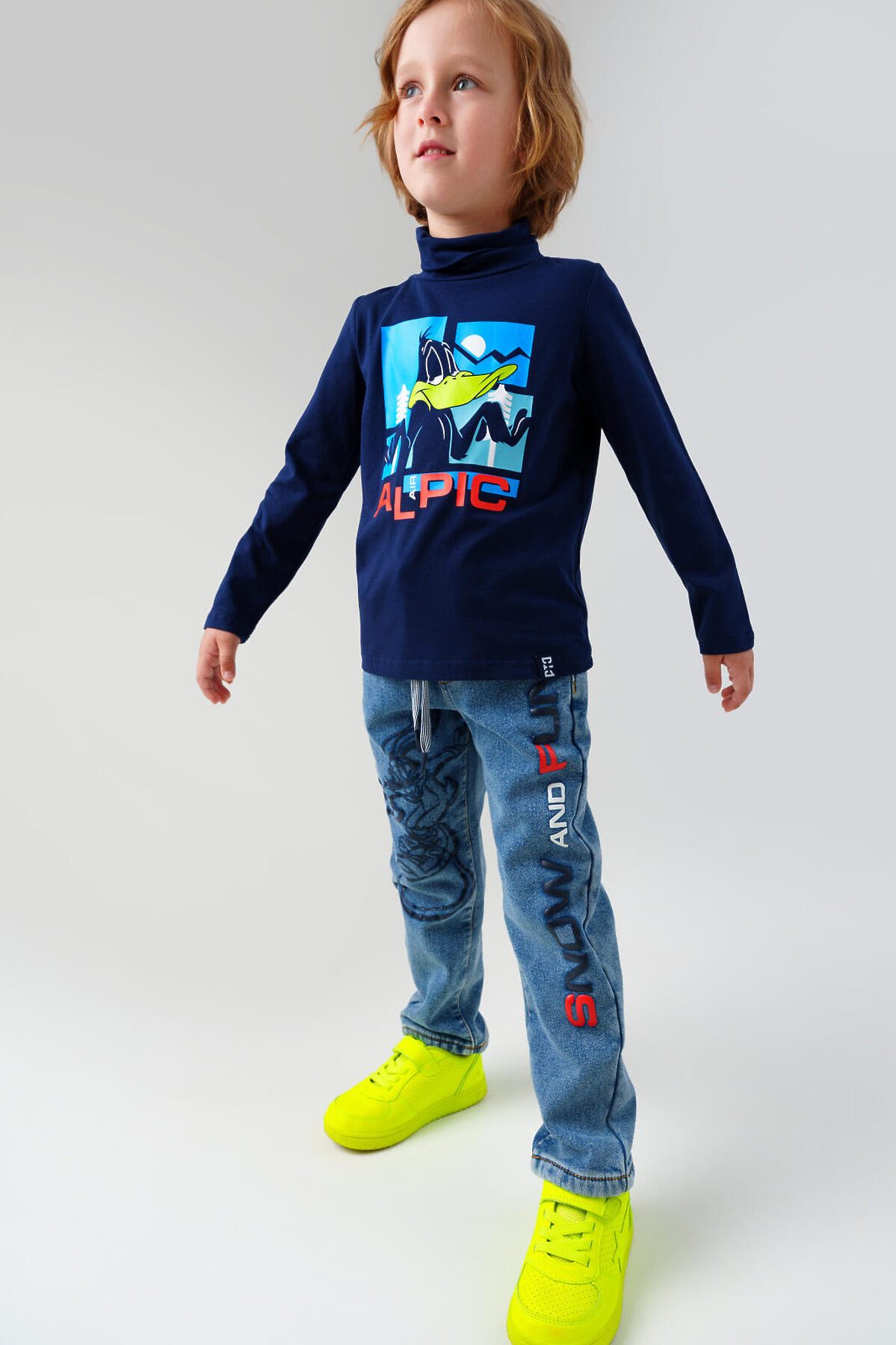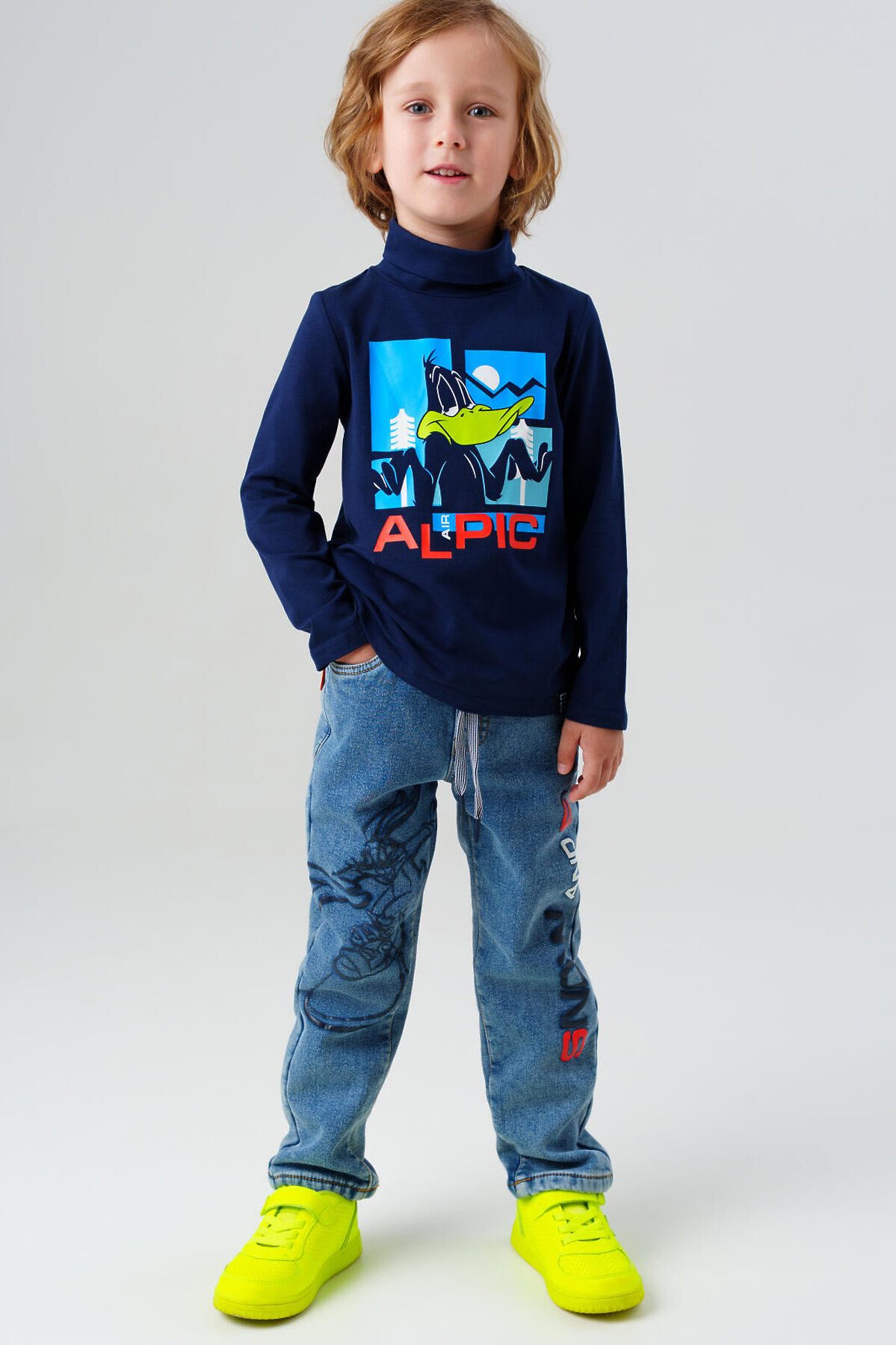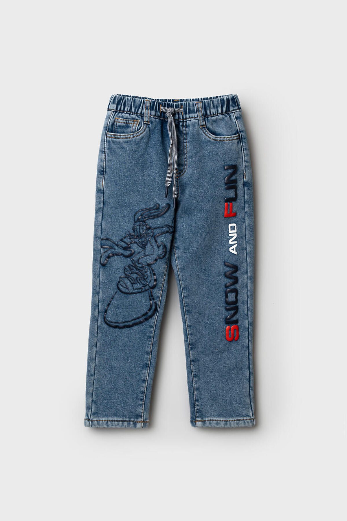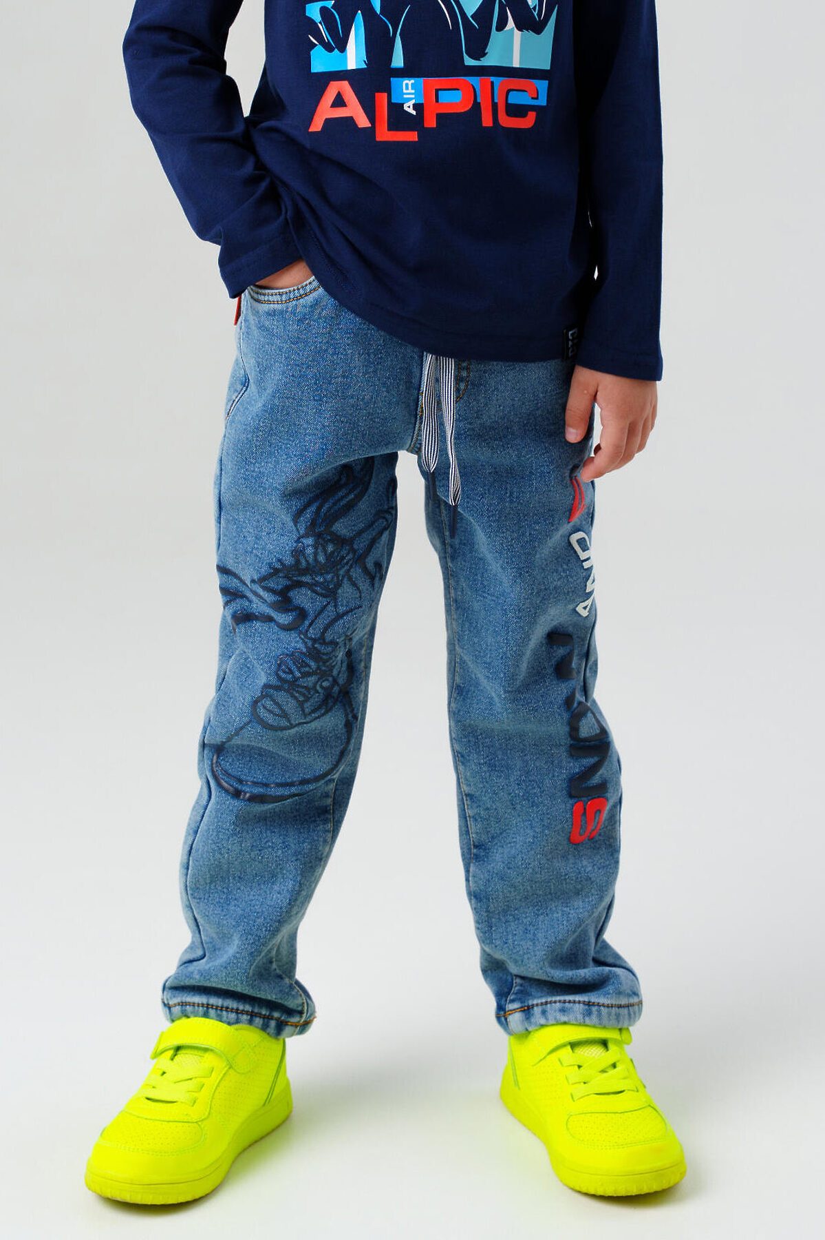 Джинсы детские утепленные на флисе от PlayToday для мальчика — модная и удобная модель для мальчиков, созданная с учётом активного ритма жизни и актуальных трендов. Преимущества модели: + джинсы на резинке со шнурком + свободная посадка + утепленные флисом Выполнены из голубого денима средней плотности с мягкой флисовой подкладкой — тёплые, комфортные и приятные к телу. Свободный крой со средней посадкой обеспечивает свободу движений, а эластичный пояс со шнурком позволяет легко отрегулировать посадку по фигуре, не создавая давления и дискомфорта. Модель оснащена четырьмя функциональными карманами, а два принта на передних штанинах добавляют стильный акцент в духе уличной моды и подчёркивают характер. Эти джинсы отлично подойдут как для школьных будней, так и для прогулок, отдыха или встреч с друзьями. Сочетаются с худи, футболками, бомберами или куртками — на их основе легко собрать модные образы в стиле Y2K. Уход: машинная стирка при температуре до 30°C, глажка при температуре до 150°C. Джинсы сохраняют форму и цвет даже после многократных стирок. Подходят для мальчиков от 3 до 7 лет.