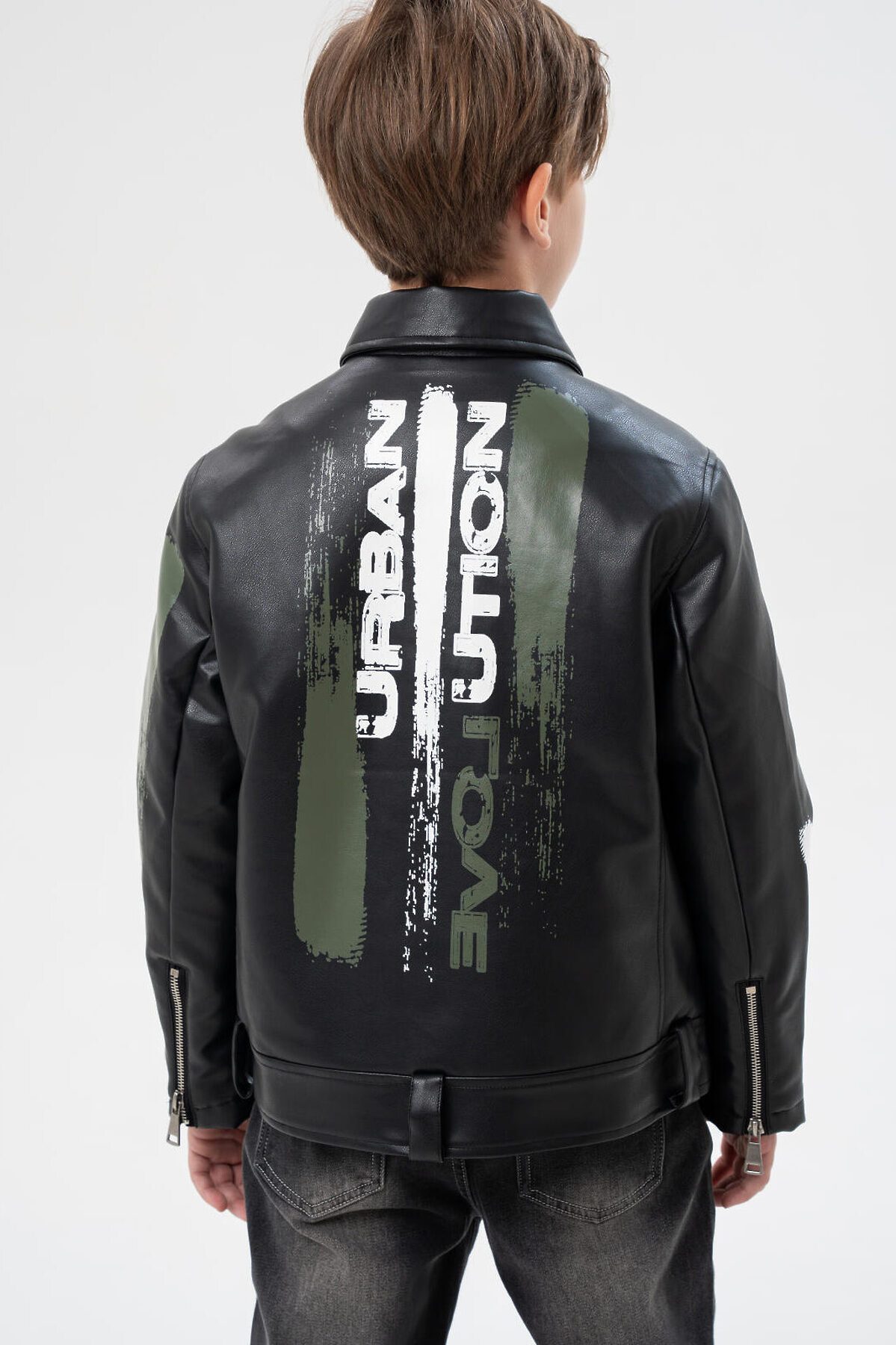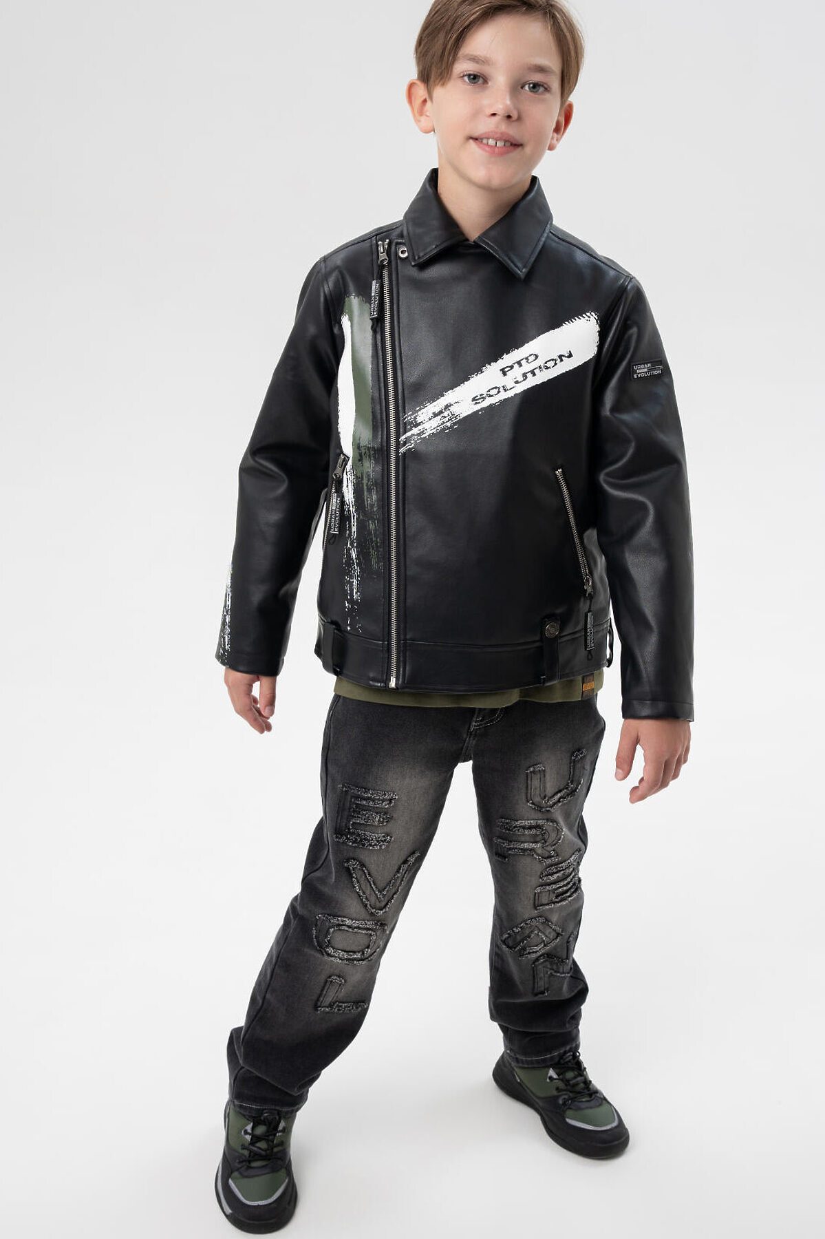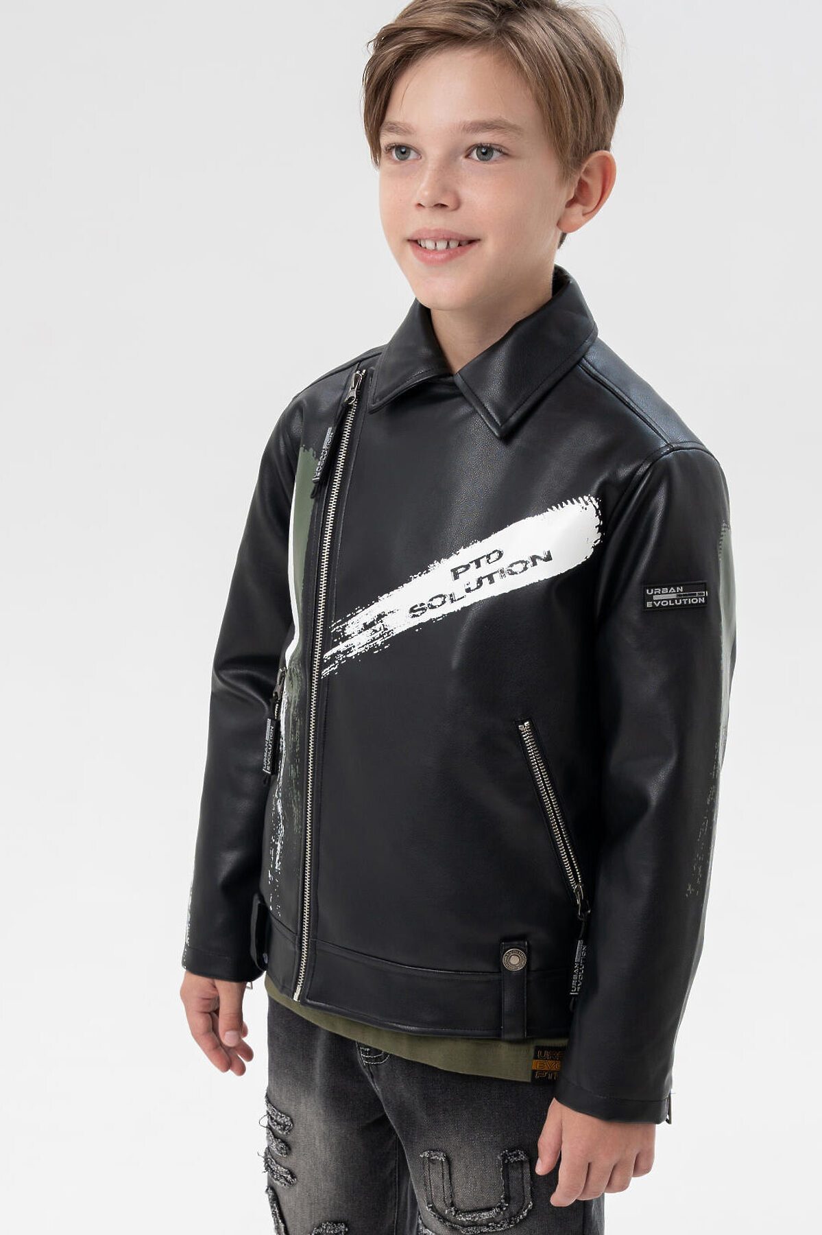 Куртка кожаная для мальчиков PLAYTODAY, черный,хаки