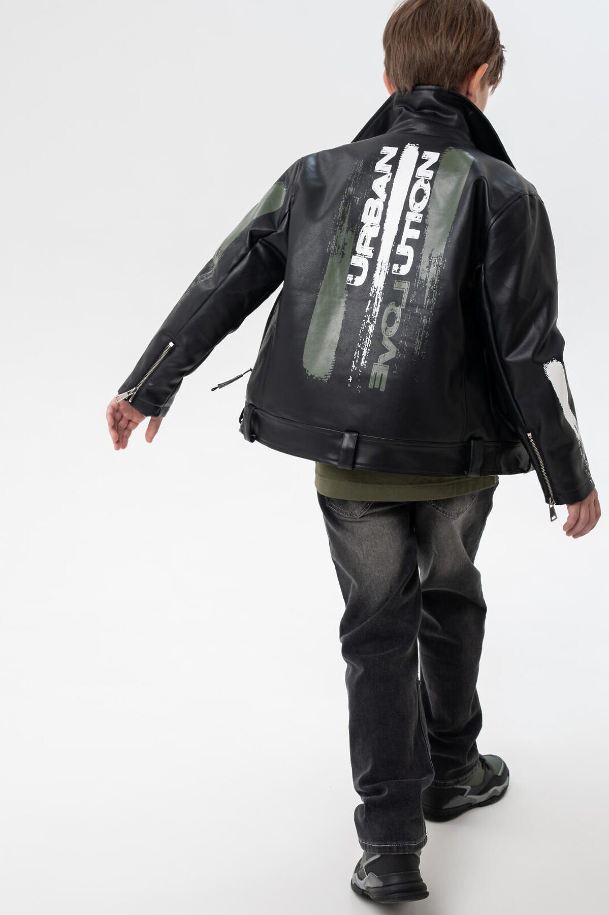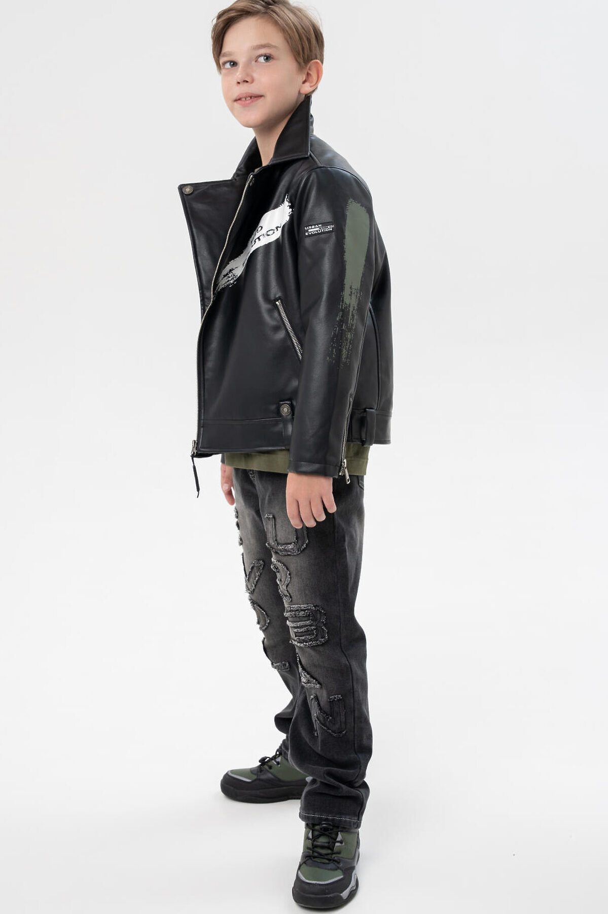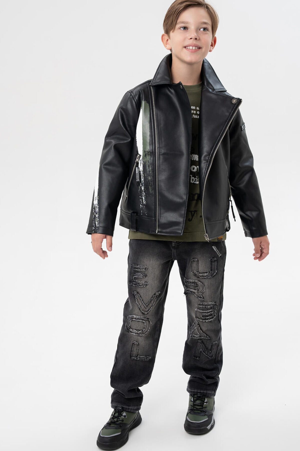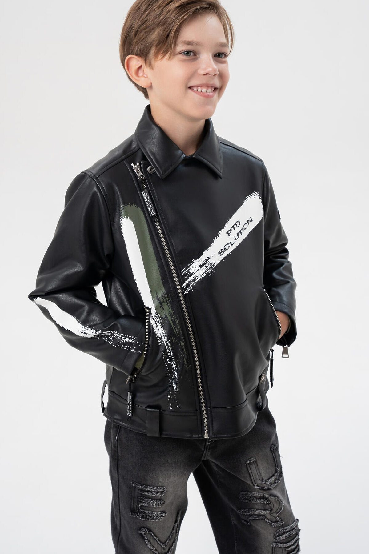 Куртка кожаная для мальчиков PLAYTODAY, черный,хаки