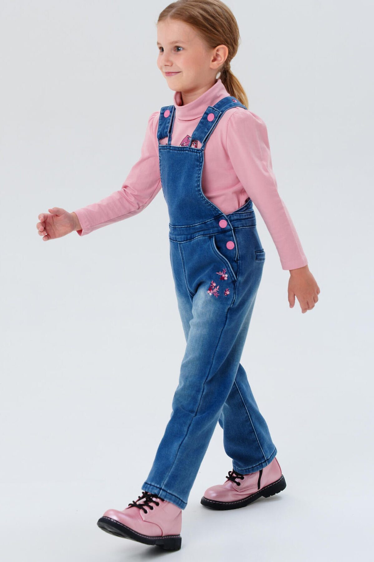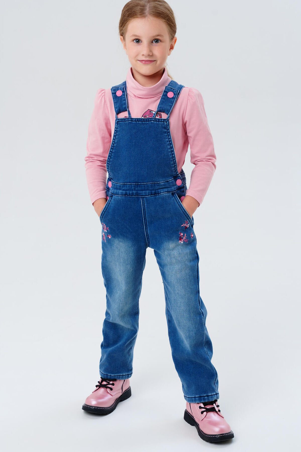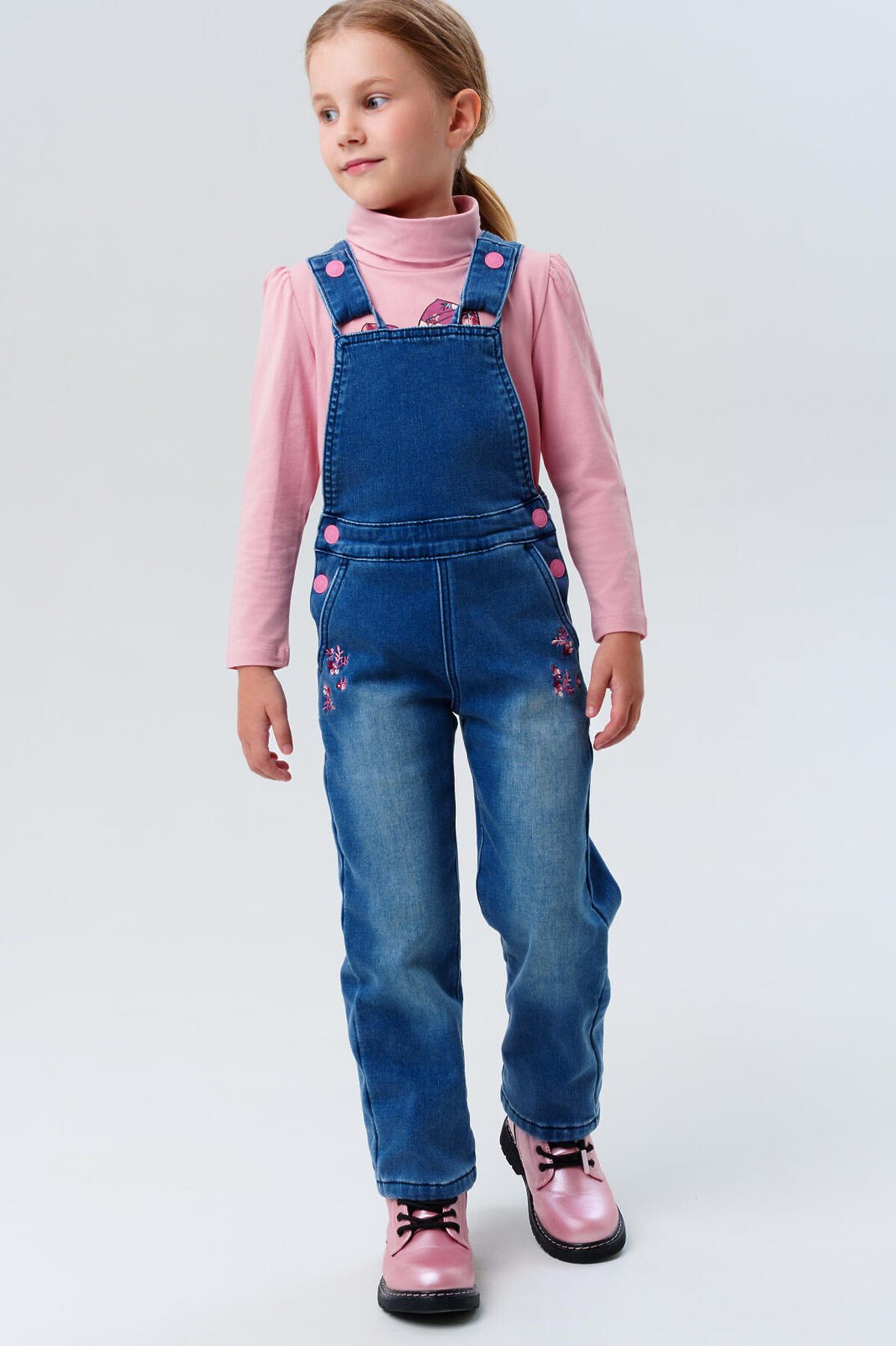 Комбинезон утеплённый на флисе от PlayToday для девочки — тёплая и уютная модель, которая сочетает стильный внешний вид, практичность и комфорт. Преимущества модели: + утеплённый флисом — надёжно защищает от холода + застёжка на пуговицу с потайной эластичной резинкой для регулировки пояса + просторный свободный крой — удобно для активных игр + два удобных боковых кармана для мелочей Модель выполнена из мягкого синего денима средней плотности с тёплой флисовой подкладкой. Натуральная по составу ткань приятна к телу, отлично сохраняет тепло и выдерживает активную носку. Застёжка на пуговицу позволяет легко надевать и снимать комбинезон, а потайная эластичная резинка внутри пояса помогает подогнать его по фигуре, обеспечивая идеальную посадку и комфорт. Свободный крой не сковывает движения — ребёнку будет удобно бегать, играть и заниматься любыми активностями в течение дня. Этот утеплённый комбинезон для девочек отлично сочетается с футболками, водолазками, лонгсливами или худи. Идеален для школы, прогулок, поездок и повседневных активностей в прохладную погоду. Материал сохраняет форму и насыщенный цвет даже после множества стирок. Подходит для девочки от 3 до 7 лет.