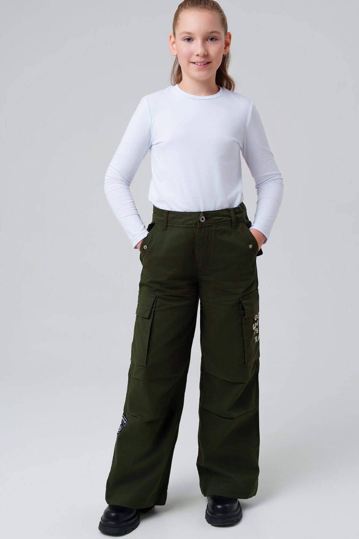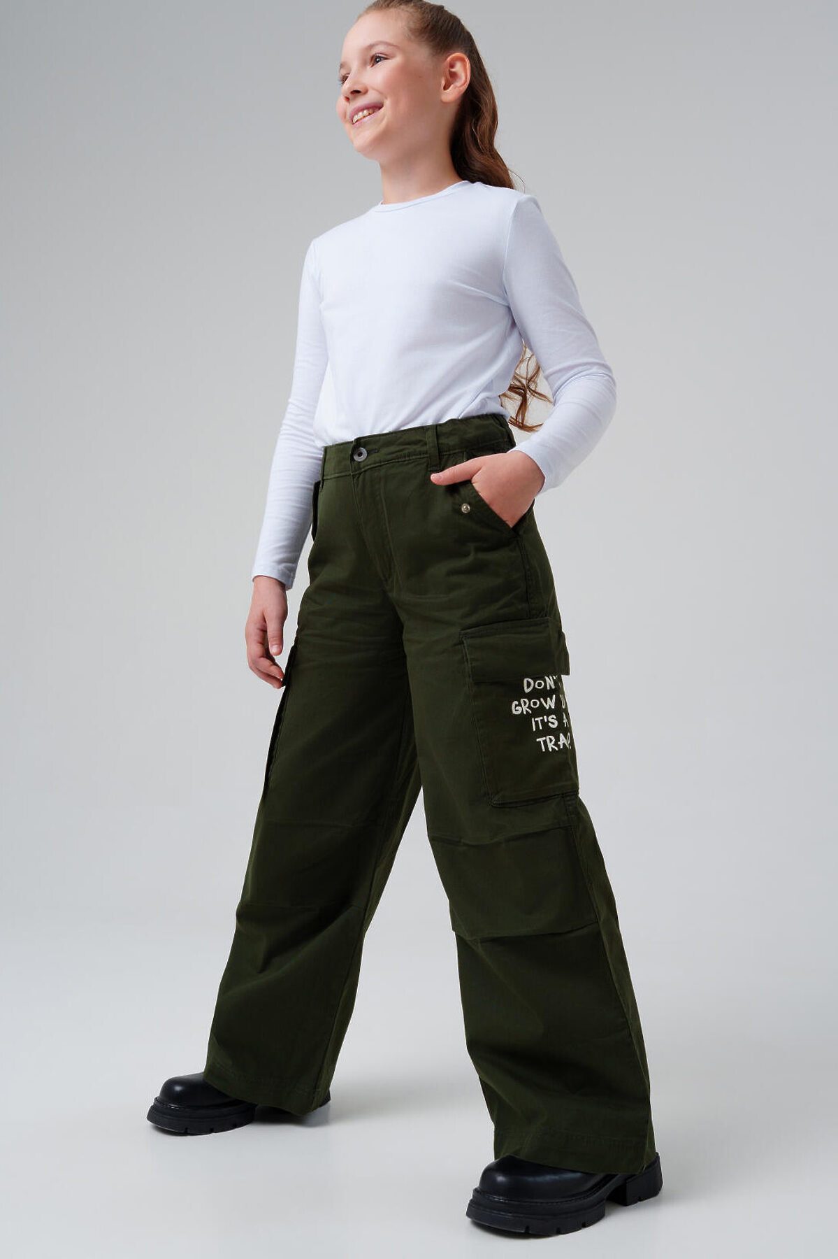 Брюки текстильные для девочек PLAYTODAY, хаки