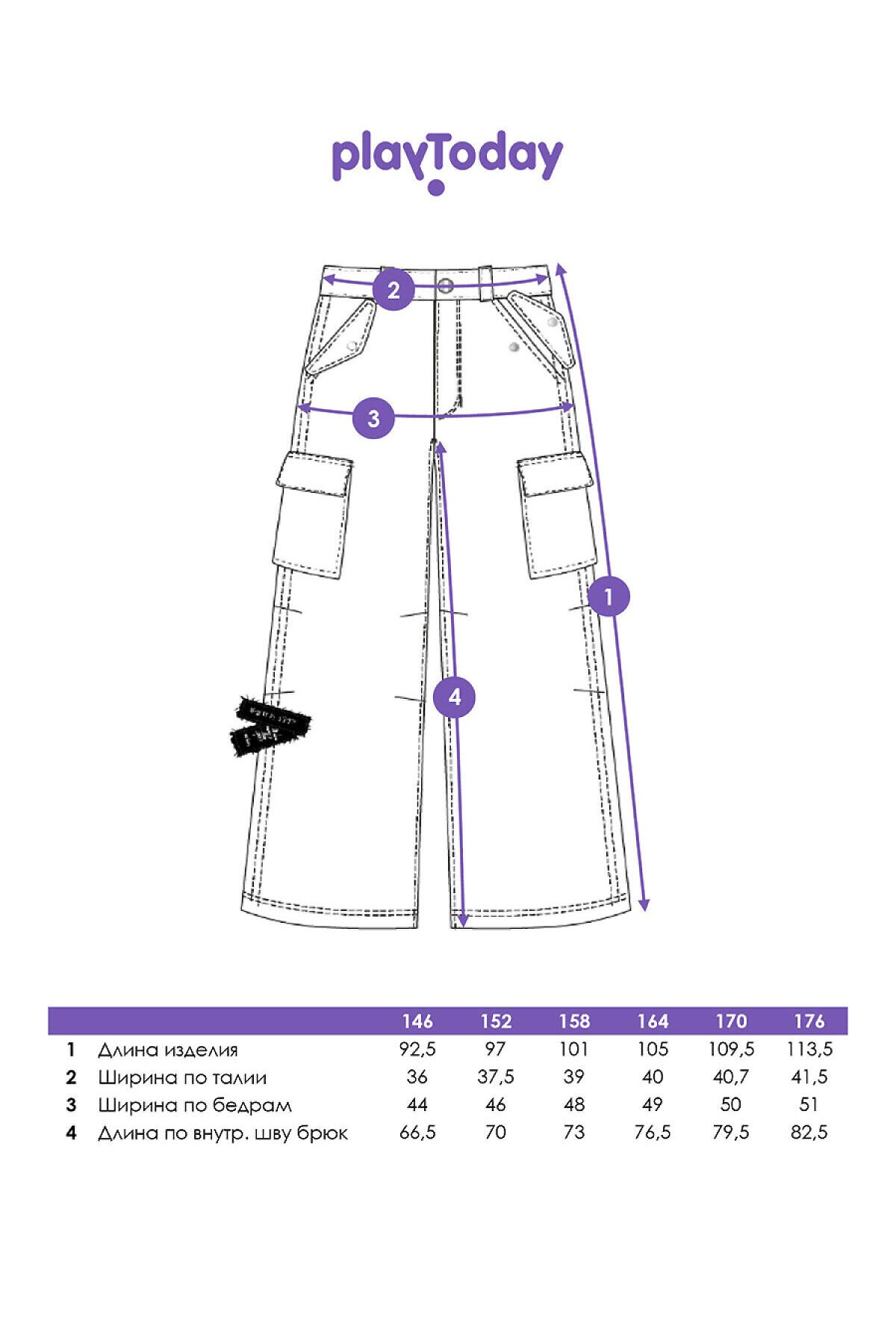 Широкие брюки карго текстильные брюки для девочки подростка от бренда PlayToday — трендовые палаццо в стиле street style. Преимущества модели: + карго-брюки широкие — актуальный тренд подростковой моды + брюки на молнии с болтом — удобная и надежная застёжка + четыре функциональных кармана — 2 боковых + 2 карго на бедрах + плотный текстиль — отлично держит форму и не просвечивает + стиль streetwear для девочек-подростков — модно и удобно + размеры от 146 до 176 см — подойдут для подростков разного роста Подростковая одежда для школы и прогулок — универсальный выбор Ультрамодная модель свободного кроя с высокой посадкой выполнена из плотного хлопкового материала, который хорошо держит форму и не теряет цвет после стирки. Брюки застёгиваются на молнию и болт, оснащены двумя боковыми и двумя накладными карго-карманами. Акцентные детали, такие как декоративные ремешки, придают образу дерзости и динамики. Когда и как носить: Идеальны для школы, прогулок, поездок, активного отдыха и стильных образов на каждый день. Можно носить в межсезонье и летом. Подходят как для кэжуал, так и для спортивного гардероба. Советы по стилю: Сочетайте с лонгсливами, кроп-топами, худи или бомберами. Дополните образ массивными кроссовками, бейсболкой или панамой для городского стиля. Эти брюки станут ключевым элементом в гардеробе современной девочки-подростка. Подходит для девочек от 11 до 17 лет.