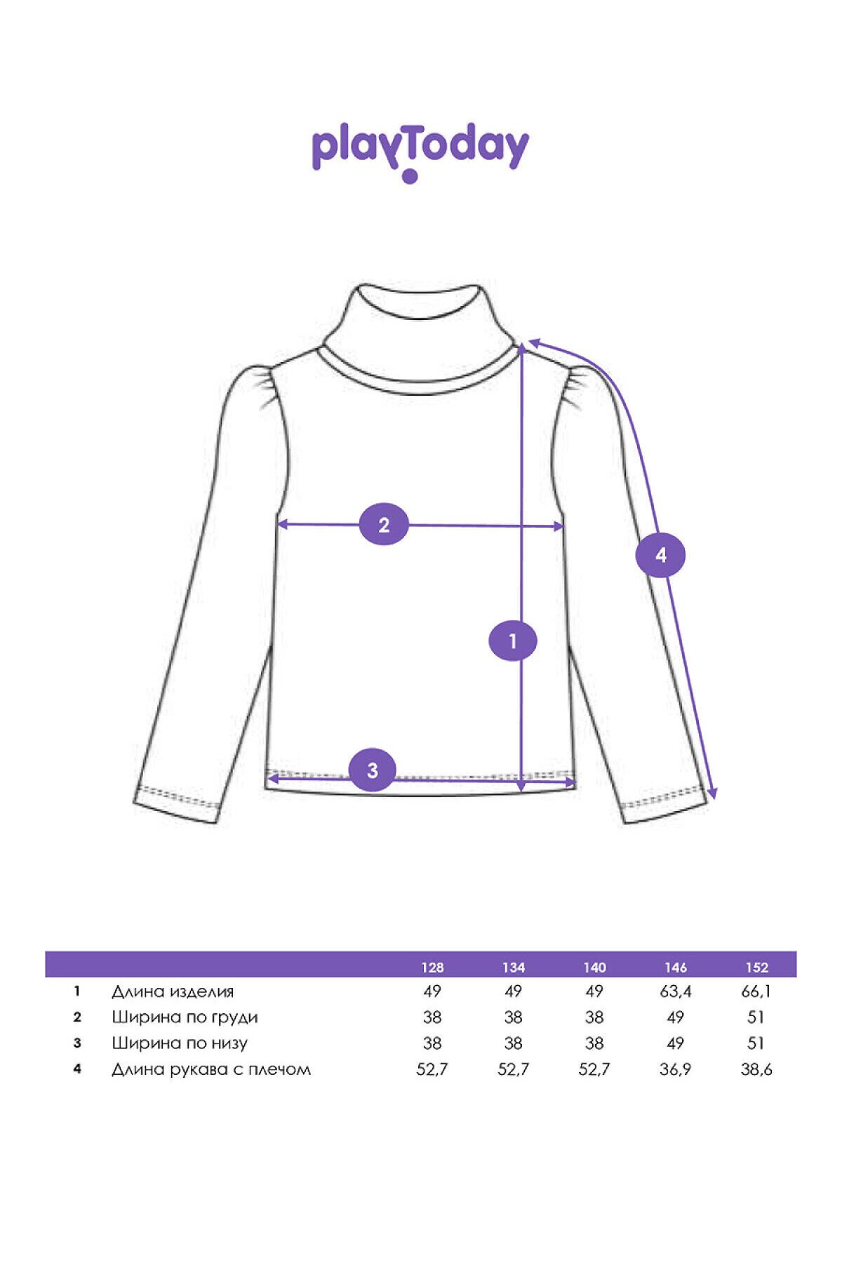 Трикотажная водолазка для девочки подростка от PlayToday — базовая и удобная модель для школы и повседневной носки. Преимущества модели: + Трикотажная водолазка для девочки с высоким горлом и удобным воротником-стойкой + Эластичная ткань с отличной посадкой — не сковывает движения + Водолазка с принтом — яркий и модный элемент школьного и повседневного гардероба + Универсальная модель: подходит как для школы, так и для прогулок и дома + Комфортная базовая вещь — легко сочетается с брюками, джинсами, сарафанами, юбками Водолазка с горлом выполнена из мягкого эластичного трикотажа, идеально садится по фигуре и не сковывает движения. Модный принт спереди делает эту водолазку стильным акцентом в образе подростка. Ворот с отворотом защищает от ветра и холода, а дышащая ткань приятна к телу. Когда и как носить: Идеальна для школы, детского сада, активных прогулок, занятий и отдыха. Особенно удобна в прохладную погоду осенью, зимой и весной. Можно носить как самостоятельный элемент или в качестве первого слоя под свитшот, жилет, кардиган или куртку. Советы по стилю: Сочетайте с джинсами, трикотажными юбками, сарафанами или брюками. Водолазка легко вписывается в повседневные и школьные образы. Добавьте ботинки или кеды и теплую куртку — получится готовый образ для города, школы или выходных. Подходит для девочек от 8 до 13 лет.