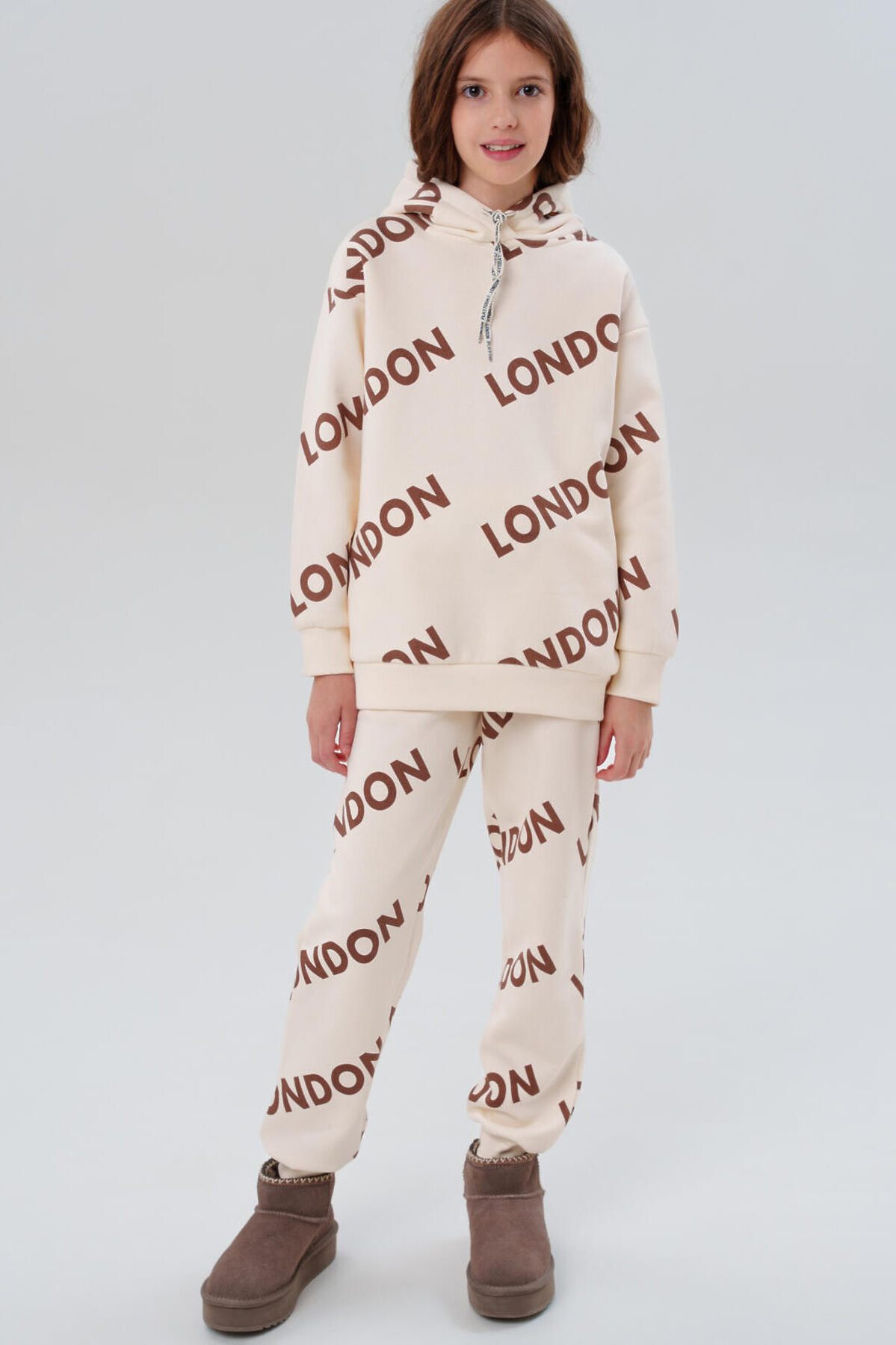 Комплект трикотажный для девочек: толстовка, брюки PLAYTODAY, молочный