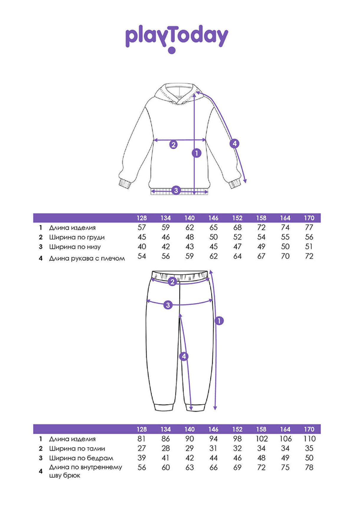 Стильный спортивный трикотажный костюм оверсайз с начёсом для девочки подростка от бренда PlayToday. Преимущества модели: + спортивный костюм для девочки подростка — комфорт и актуальный дизайн + толстовка-худи с капюшоном и длинным рукавом — удобно, модно, тепло + брюки на резинке с карманами и шнурком — практичные и универсальные + футер с начёсом — мягкий внутри, удерживает тепло + принтованный материал — яркий, стильный акцент + свободный крой (оверсайз) — не сковывает движений + полный размерный ряд: 128–170 см — подойдёт для девочек разных возрастов + трикотажный костюм утеплённый — отличный вариант на осень, зиму и весну Модный комплект включает утеплённую худи и брюки на резинке со шнурком. Выполнен из мягкого футера с начёсом — плотный, тёплый материал отлично сохраняет тепло и обеспечивает комфорт даже в прохладную погоду. Принтованное полотно делает образ динамичным и запоминающимся. Когда и как носить: Утеплённый костюм для девочек подходит для школы, прогулок, путешествий и активного отдыха. Можно носить как повседневную одежду или спортивный комплект. Идеален для межсезонья и зимы. Советы по стилю: Носите в комплекте или комбинируйте с базовыми вещами: худи отлично сочетается с джинсами, а брюки можно надеть с лонгсливом или свитшотом. Добавьте кроссовки, шапку-бини и рюкзак — получится модный городской образ для девочки подростка. Подходит для девочек от 8 до 16 лет.