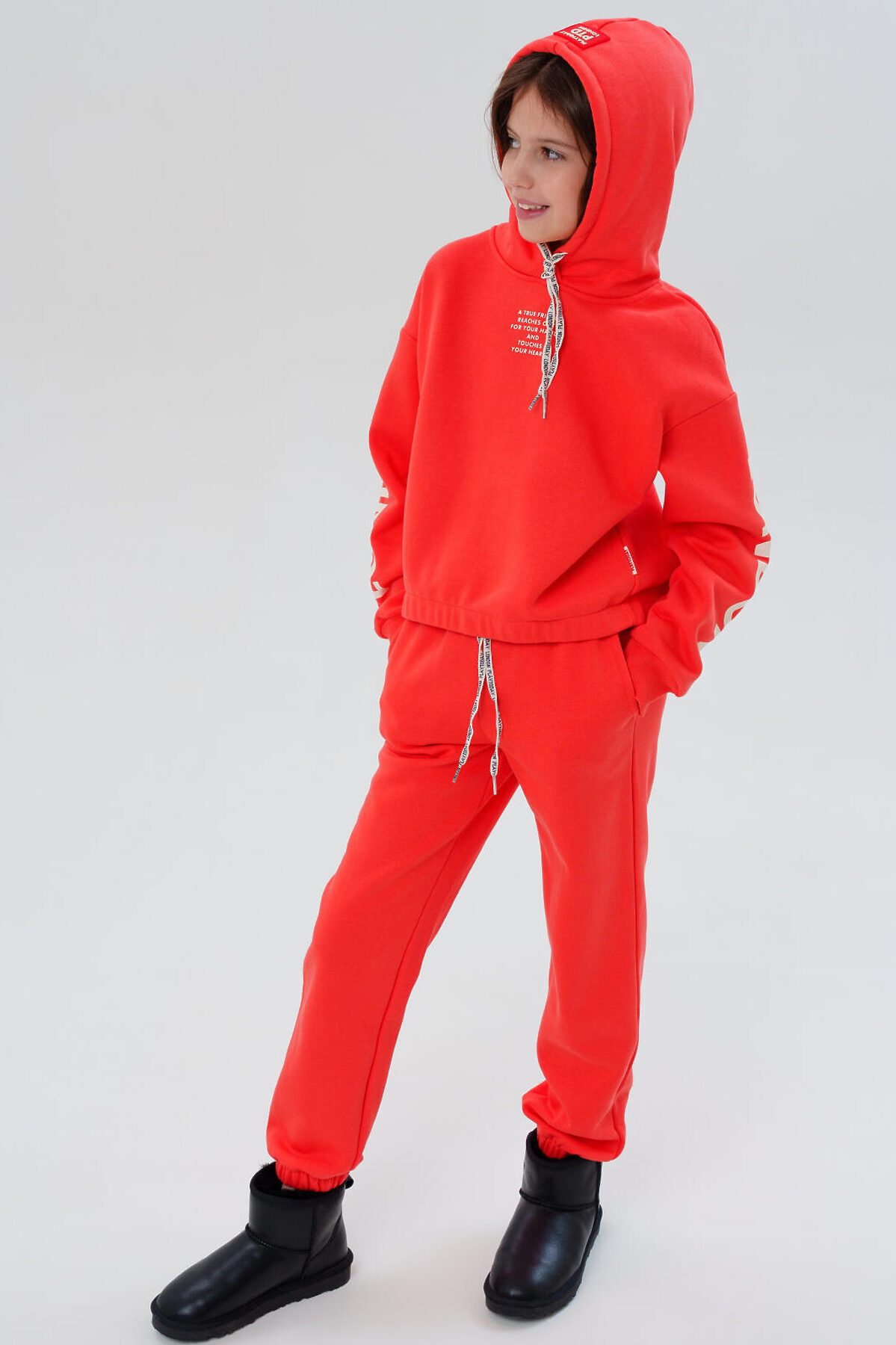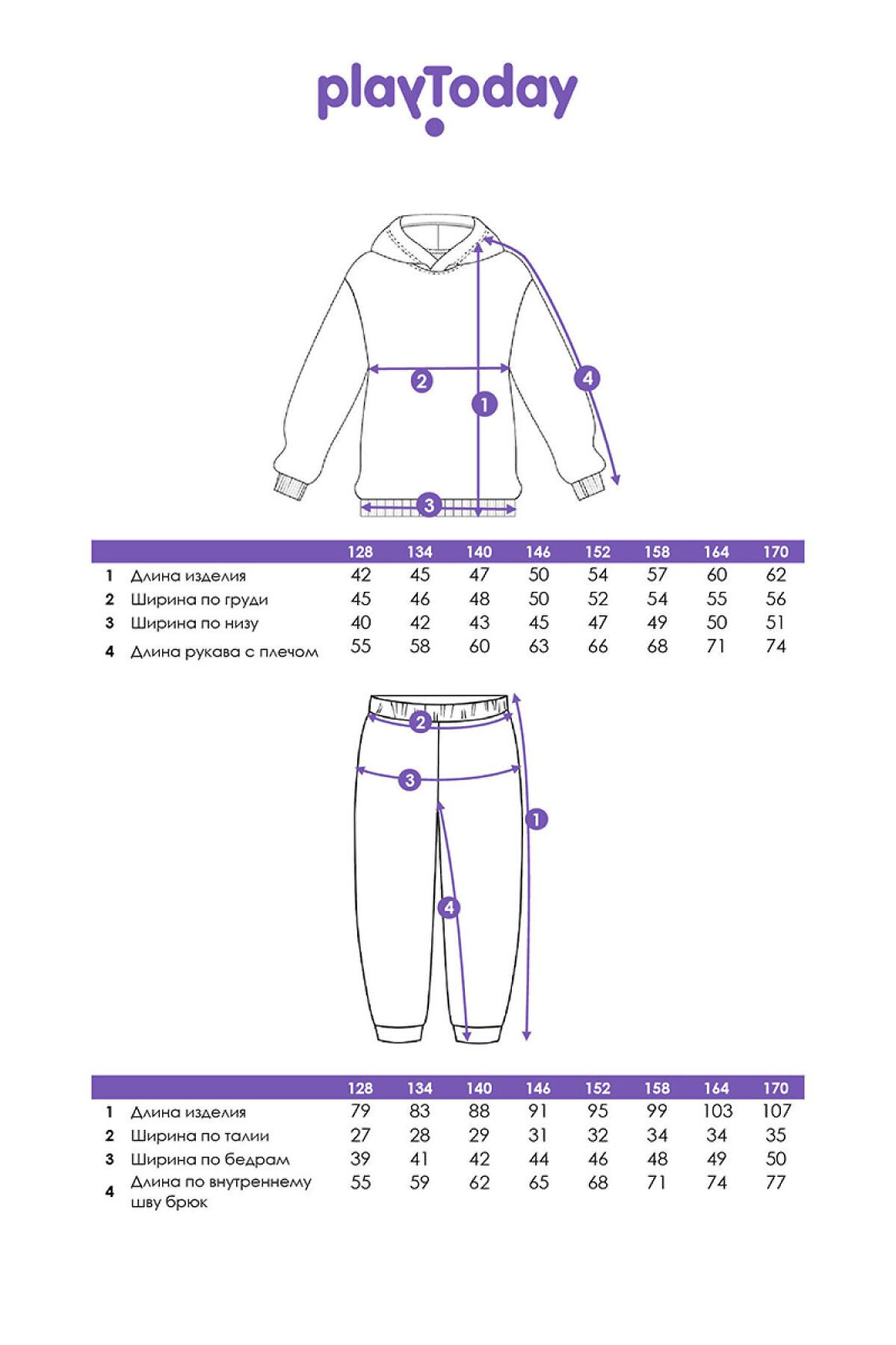 Спортивный костюм из футера с начесом для девочки подростка от PlayToday — стильный комплект из мягкого трикотажа: худи с капюшоном и модным принтом по рукавам + брюки на резинке со шнурком. Универсальный костюм в спортивно-уличном стиле подойдёт для активных будней, школы и отдыха. Преимущества модели: + комплект из худи и брюк на резинке — комфорт и удобство на каждый день + мягкий трикотаж — приятный к телу, не сковывает движения + эластичный пояс и регулируемый шнурок — удобная посадка + принт по рукавам — стильный акцент в образе + функциональные карманы на брюках + отличный вариант для школы, прогулок, секций, поездок Когда и как носить: Идеален как одежда для школы, активных прогулок, поездок, кружков и секций. Подходит на демисезон, раннюю осень, весну и прохладное лето. Может использоваться и как домашняя комфортная одежда. Советы по стилю: Носи костюм с кроссовками, ботинками или высокими носками в спортивном стиле. Добавь рюкзак, кепку или бомбер — получишь модный лук в стиле спорт-шик или кэжуал. Подходит для девочек от 8 до 16 лет.