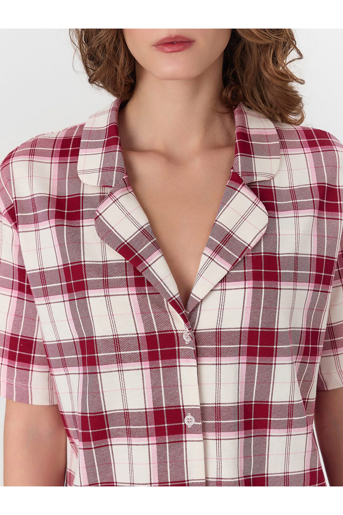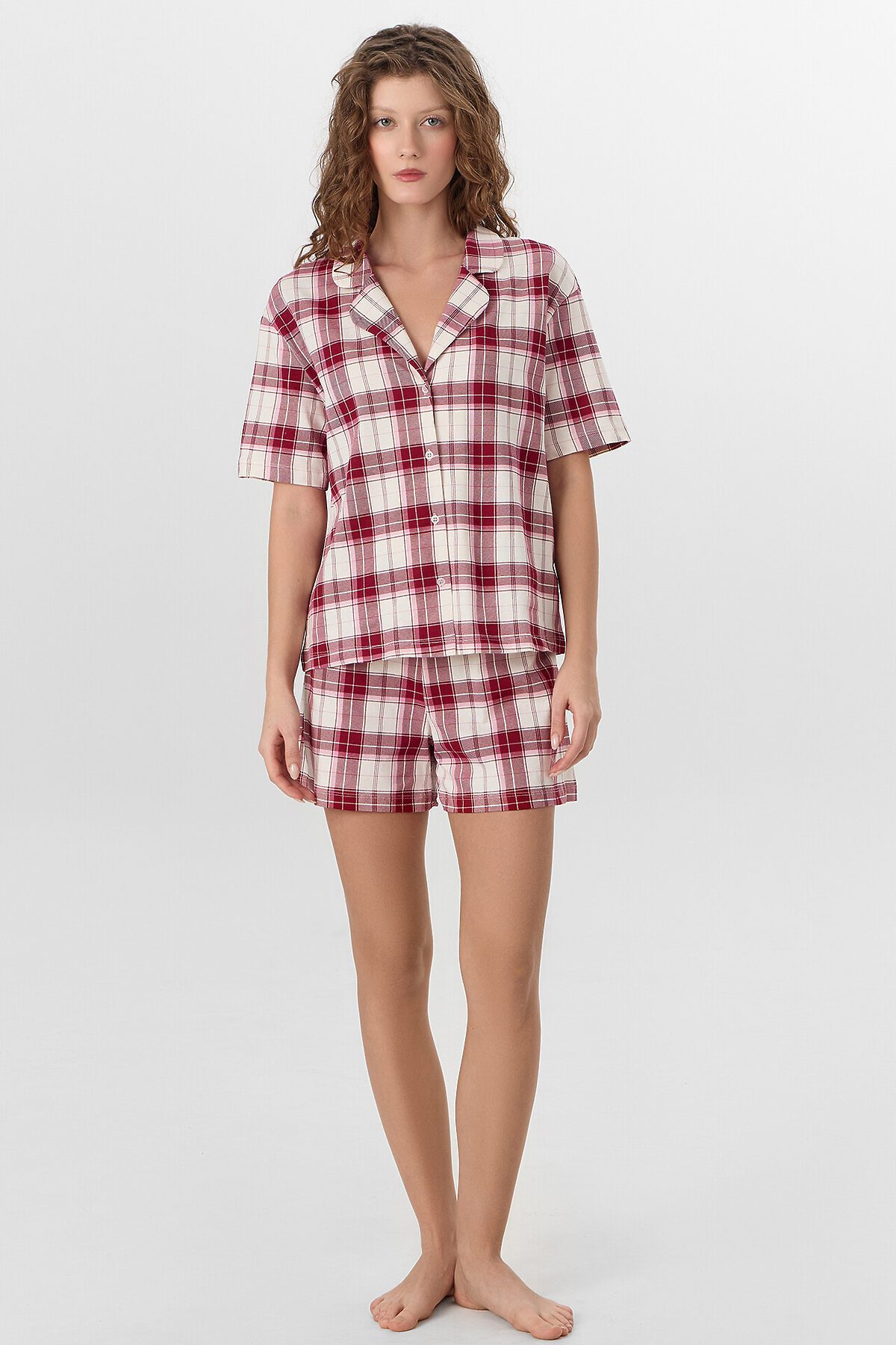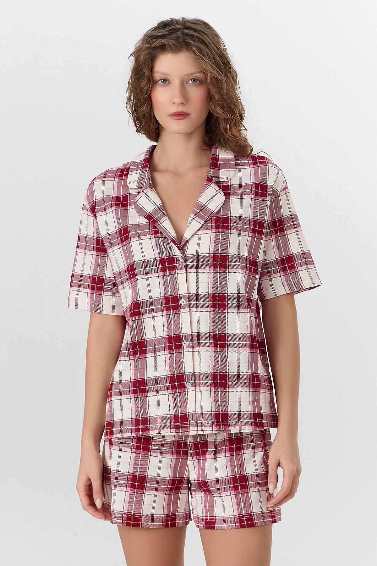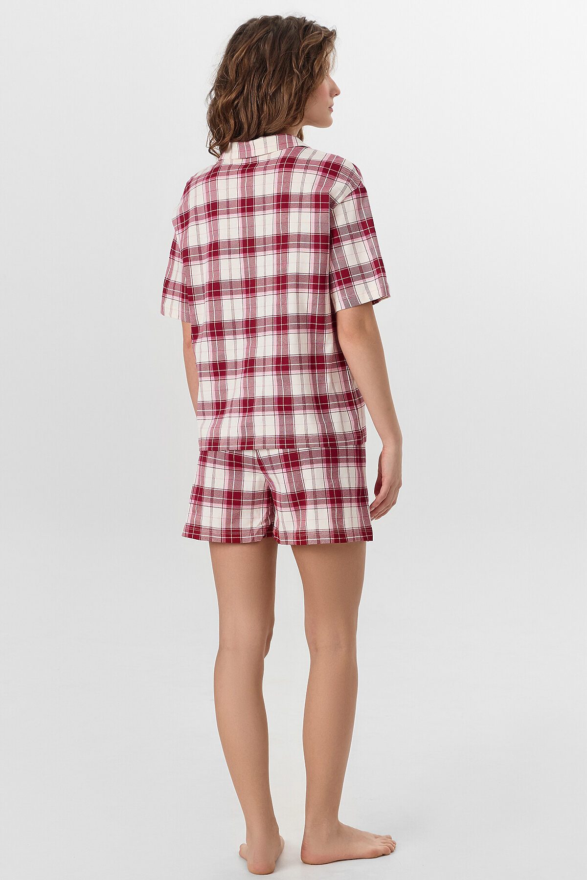 Комплект женский (рубашка, шорты) MARK FORMELLE, молочно -бордовая клетка