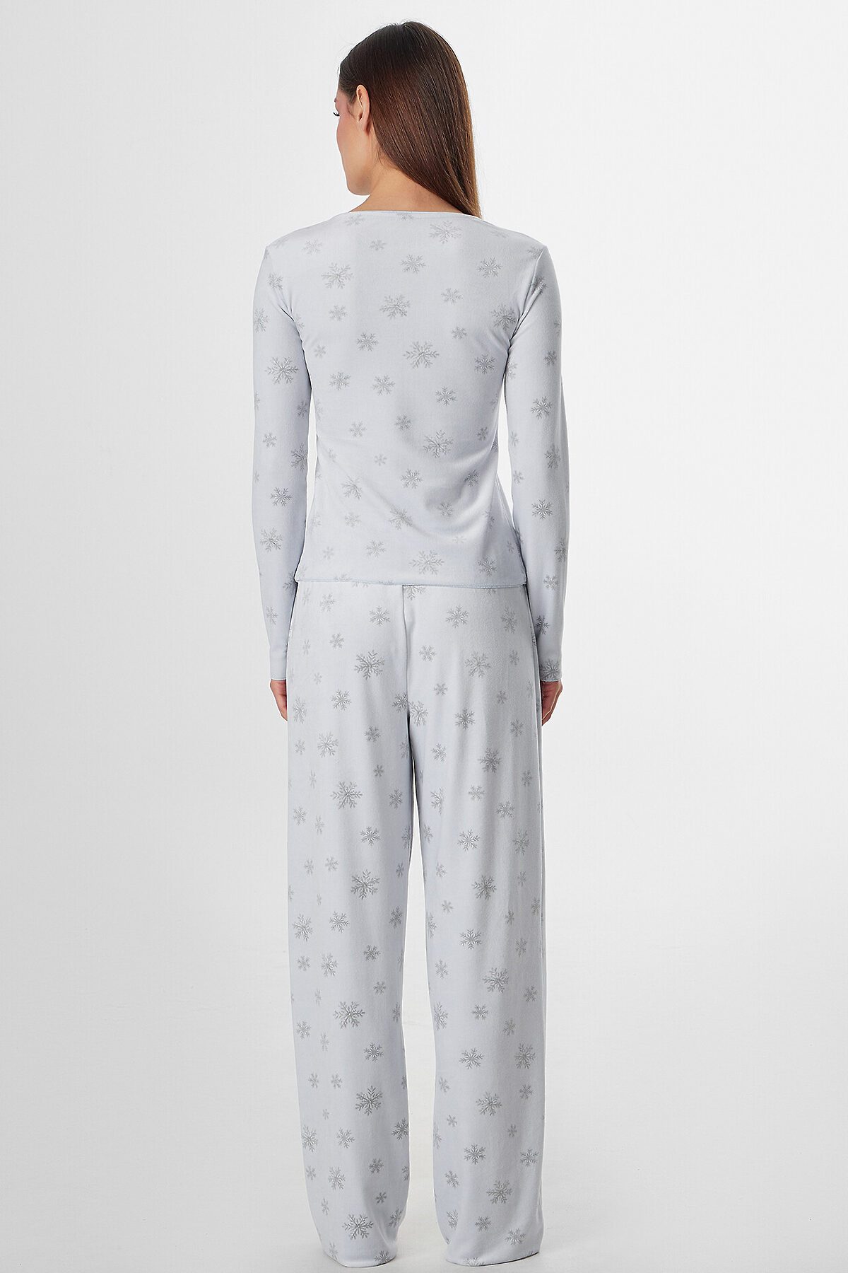 Домашняя пижама из велюра подарит вам ощущение уюта и мягкости. Этот уютный ансамбль состоит из джемпера полуприлегающего силуэта и свободных брюк, созданных для полного расслабления.