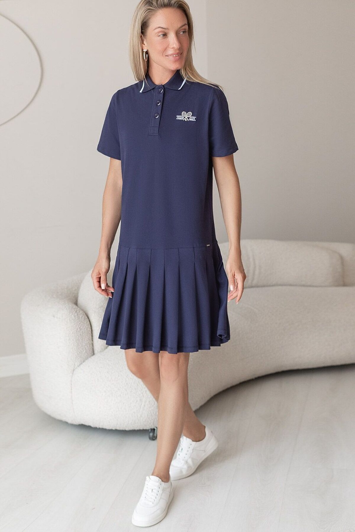 Платье-поло из фактурного трикотажа VILATTE, т.синий