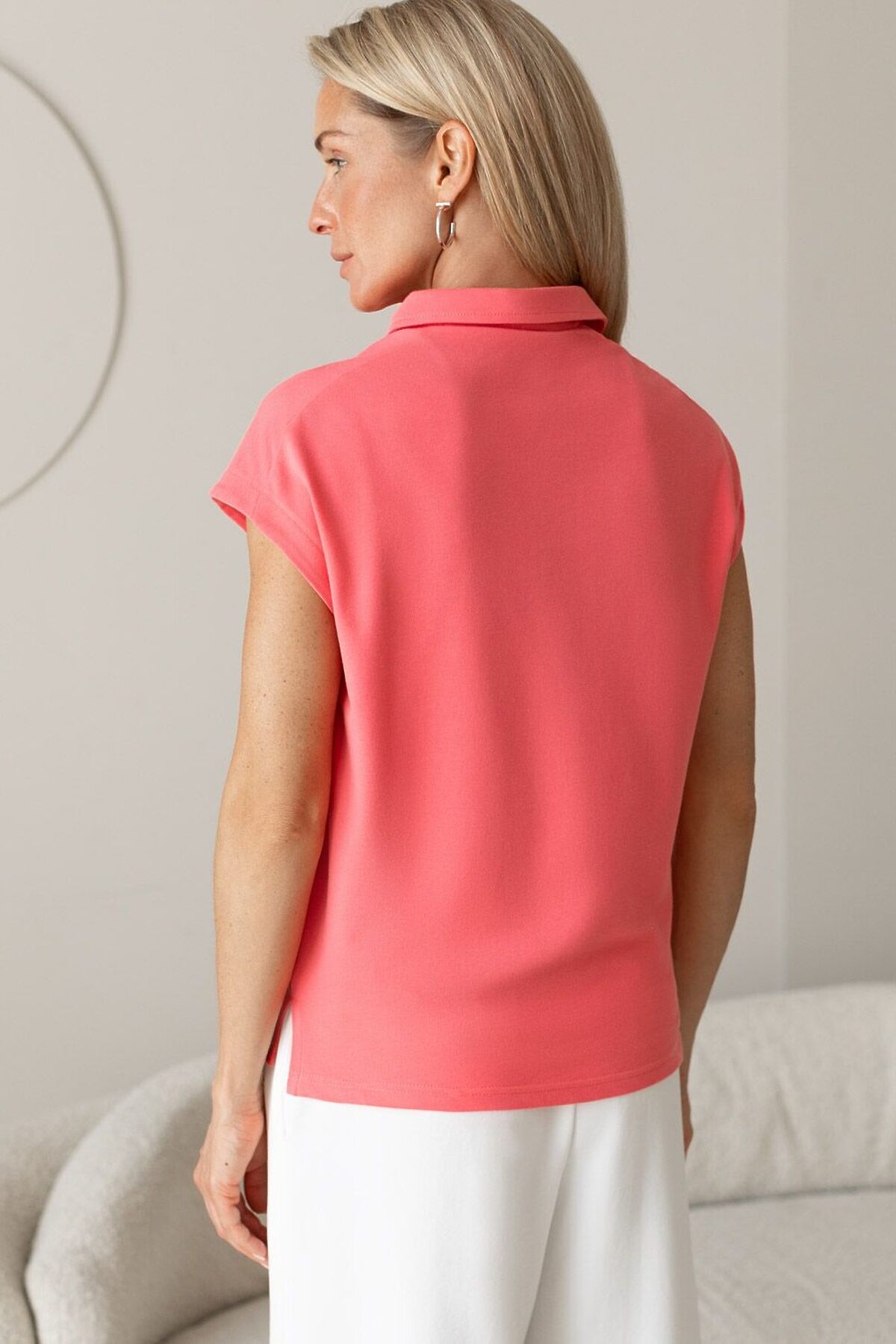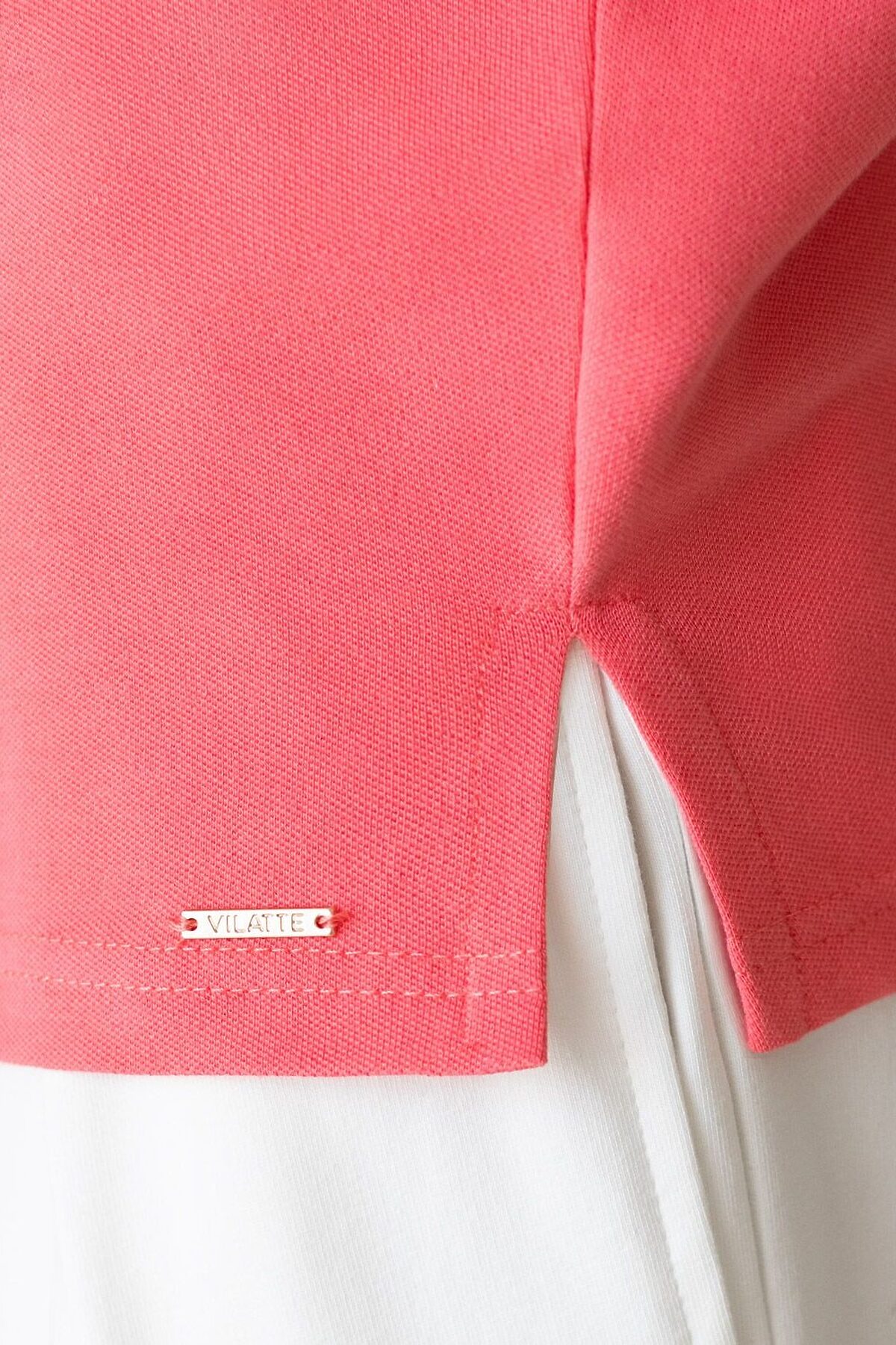 Футболка-поло из фактурного трикотажа VILATTE, розовый коралл