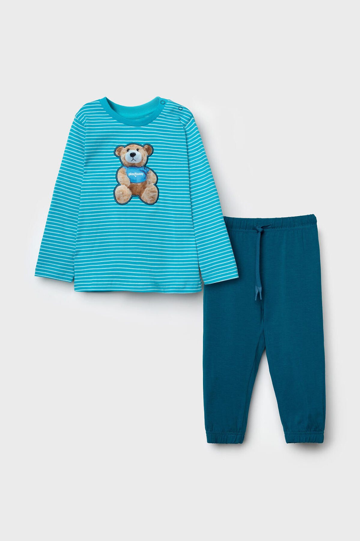 Комплект детский трикотажный для мальчиков: фуфайка (футболка с длинными рукавами), брюки PLAYTODAY, бирюзовый,голубой