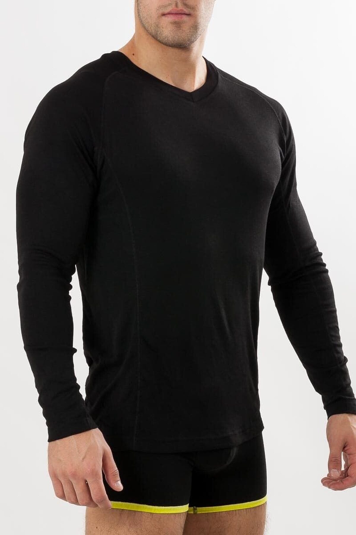Комфортабельная мужская фуфайка из термо-материала с V-образным вырезом горловины и длинным рукавом. Незаменимая деталь гардероба для холодного времени года. "Умный" материал фактуры "термо" удерживает тепло и в то же время отводит избыточную влагу. Изделия из такой ткани могут использоваться ежедневно, для занятий спортом, охотой, рыбалкой и активного отдыха. Особый способ вязания полотна, предуcматривающий воздушные ячейки, соединяющие основу полотна с верхним слоем, придаёт изделиям особые гигиенические и термические свойства. Австрийская технология производства ткани позволяет выдерживать экстремальные температуры до -20 градусов Цельсия. Не мёрзните, не болейте и чувствуйте себя комфортно!