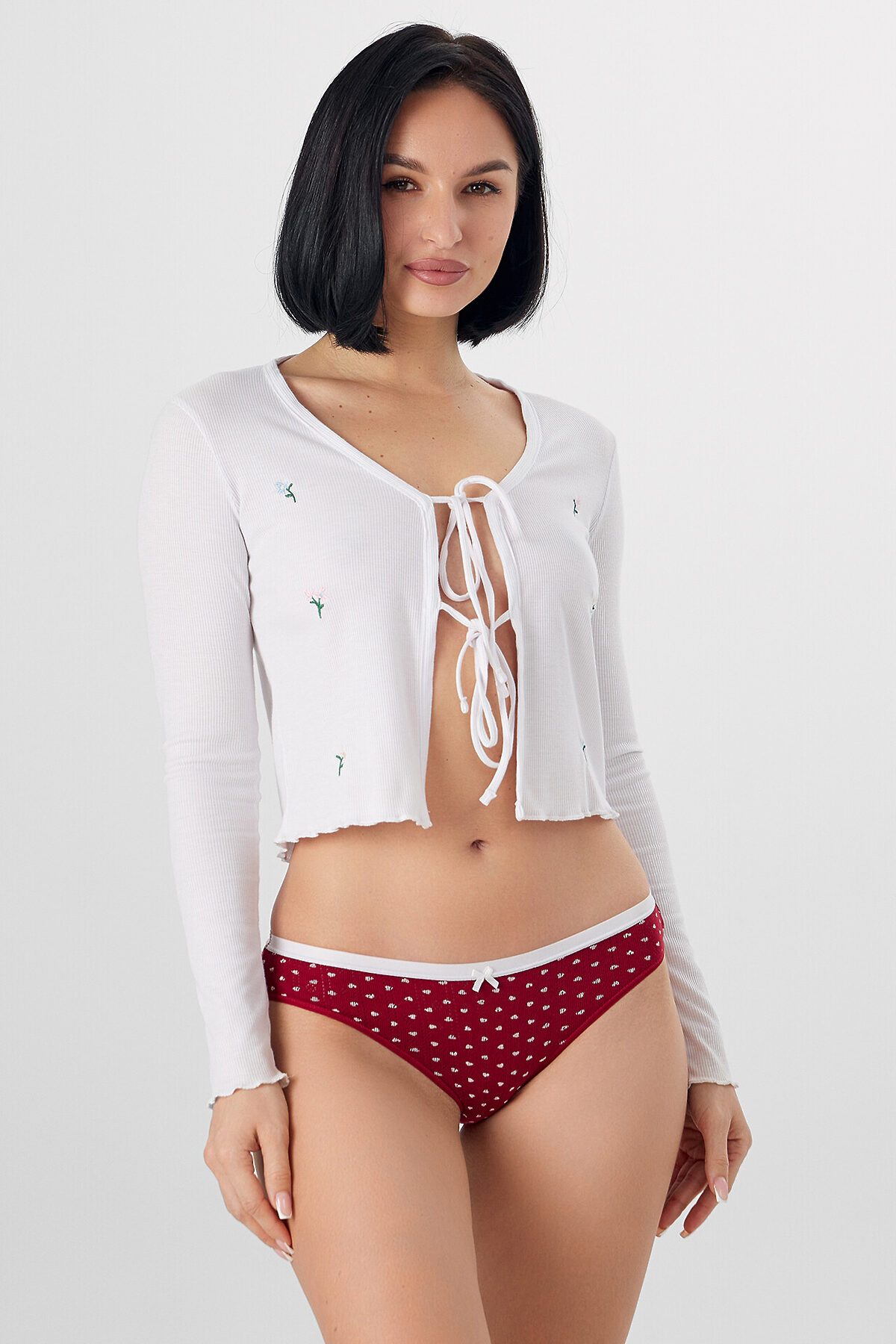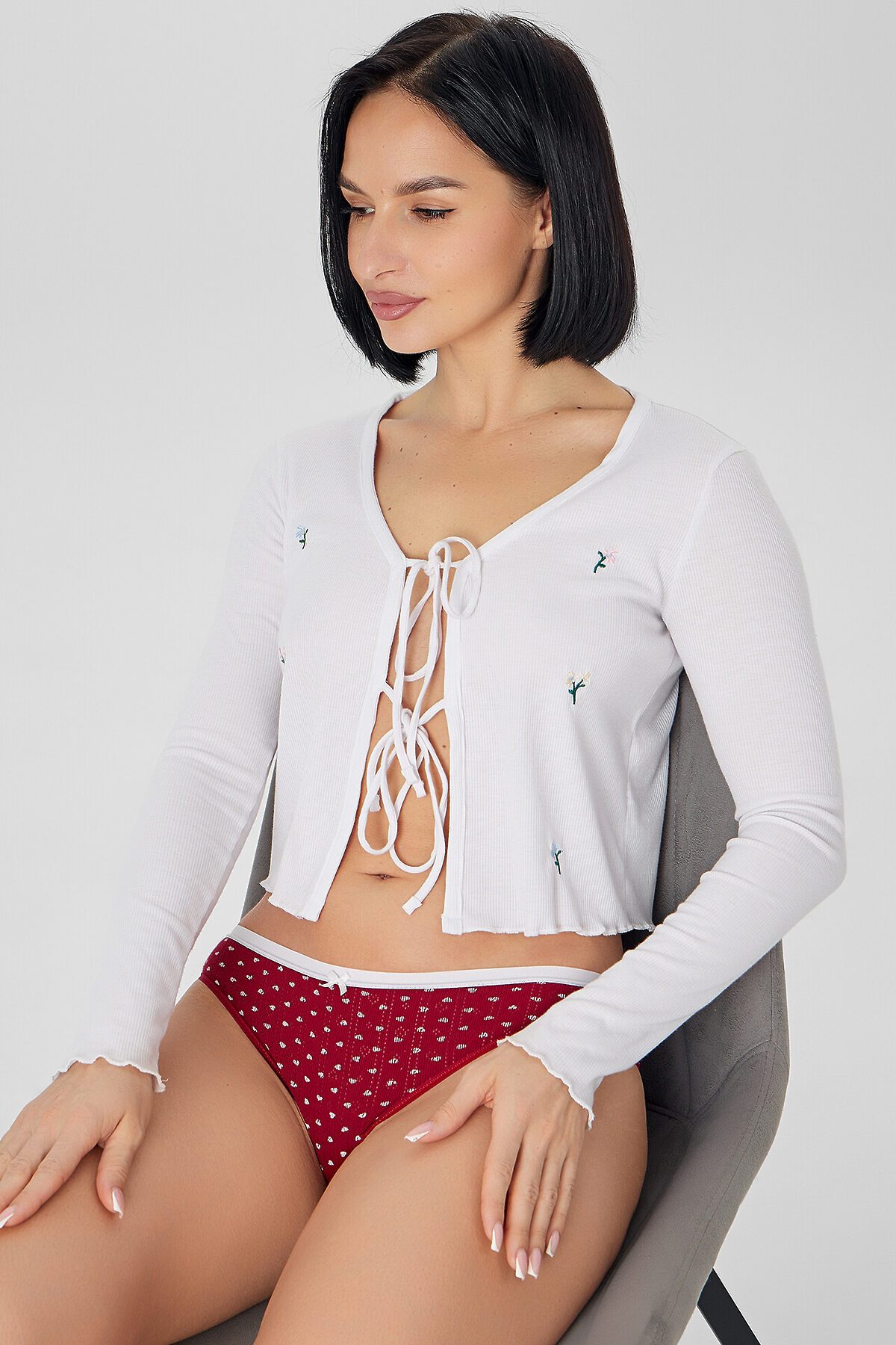 Трусы женские средняя линия талии, силуэт - слипы. Трусы выполнены из рибаны. Верхний срез обработан жилкой 15 мм (WT4-15, Devsel 13195W). Нижние срезы обработаны жилкой 6мм (жилка WT4-6, девсель 13460W), 9 обработка. Верхний срез ластовицы отлетной.