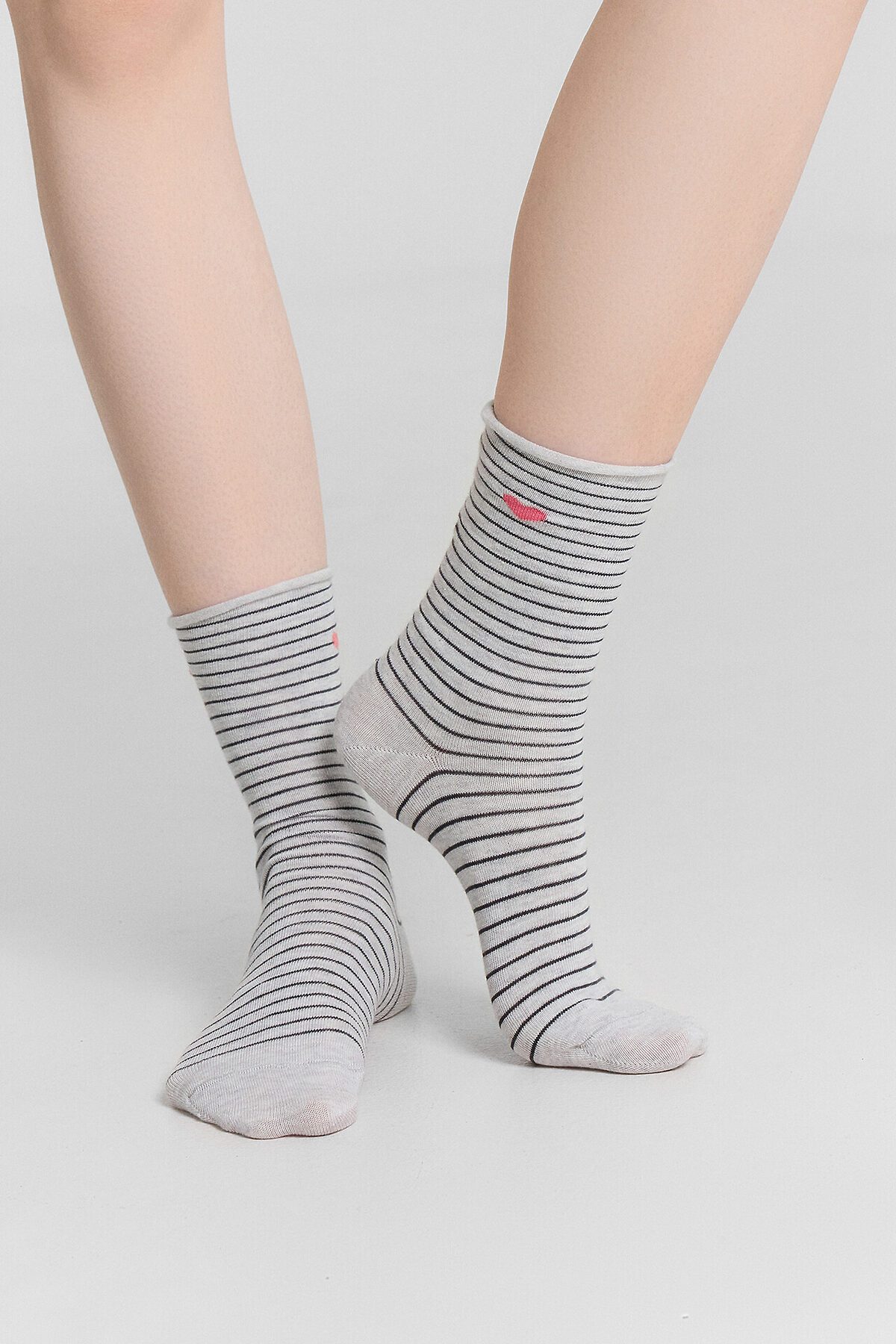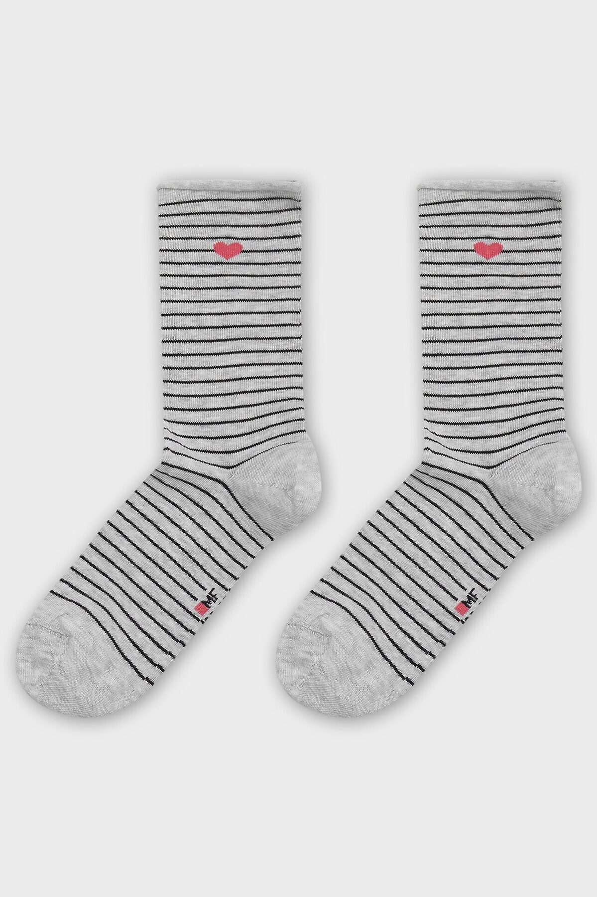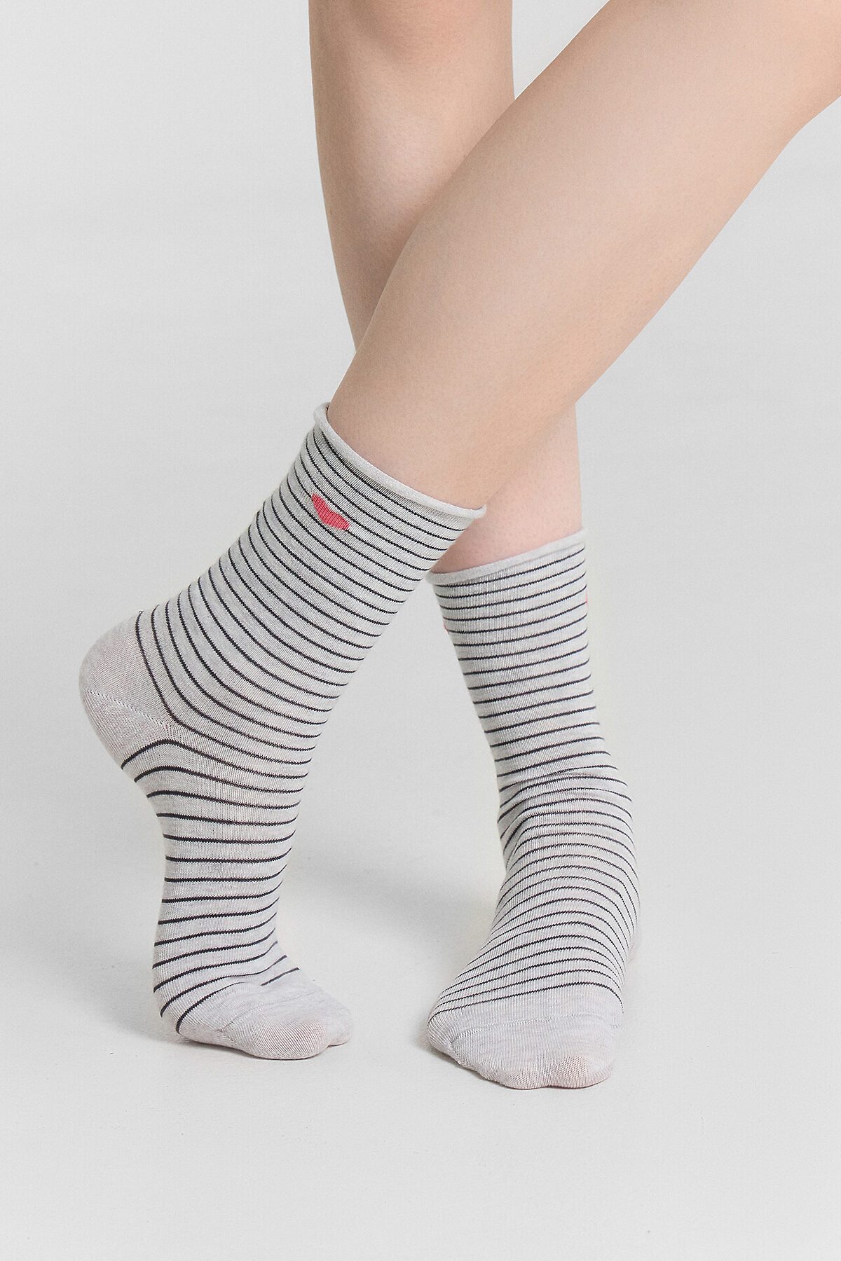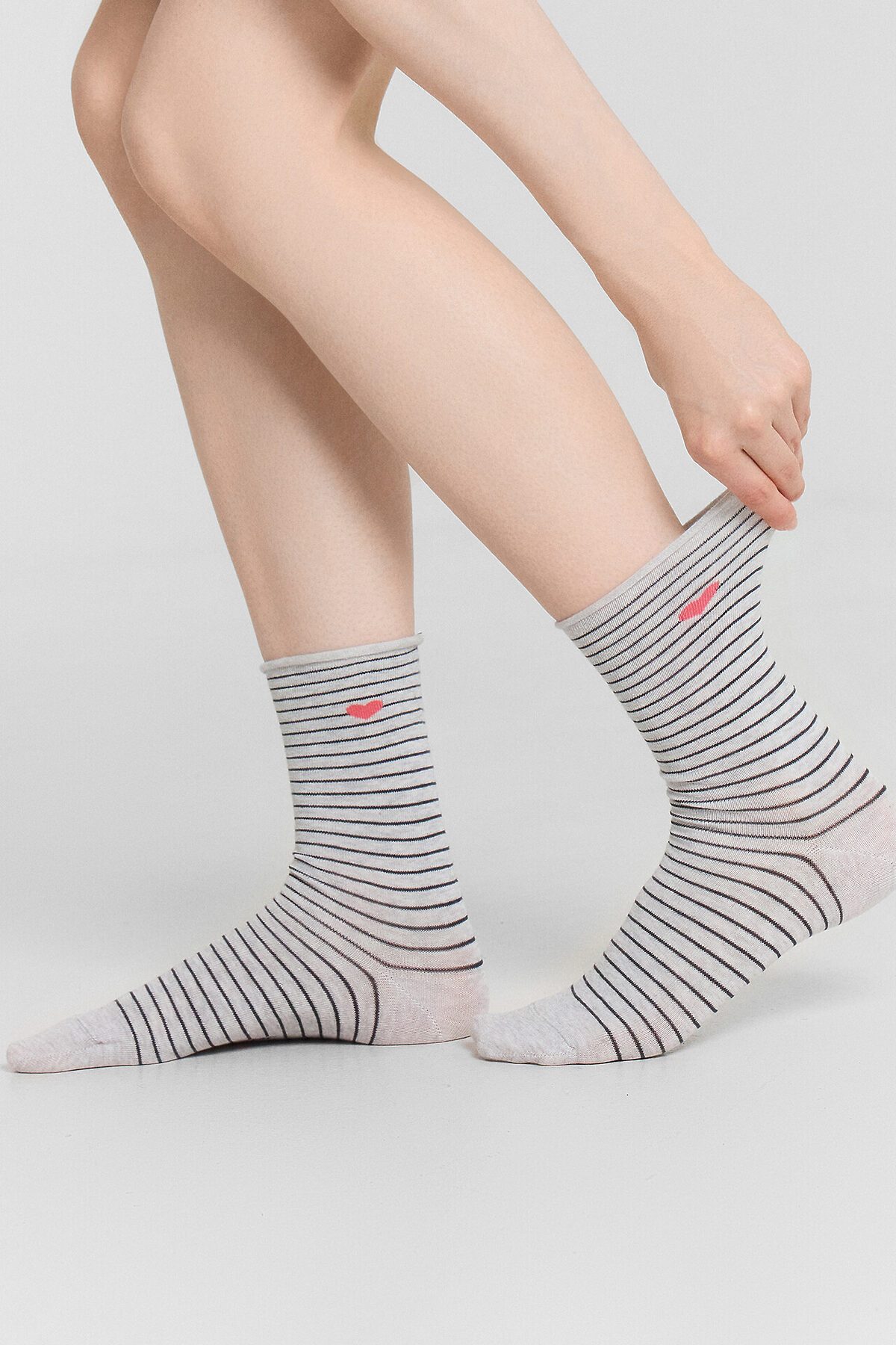 рис.2345 Женские носки классические, без борта, с рисунком в виде сердца и полоски