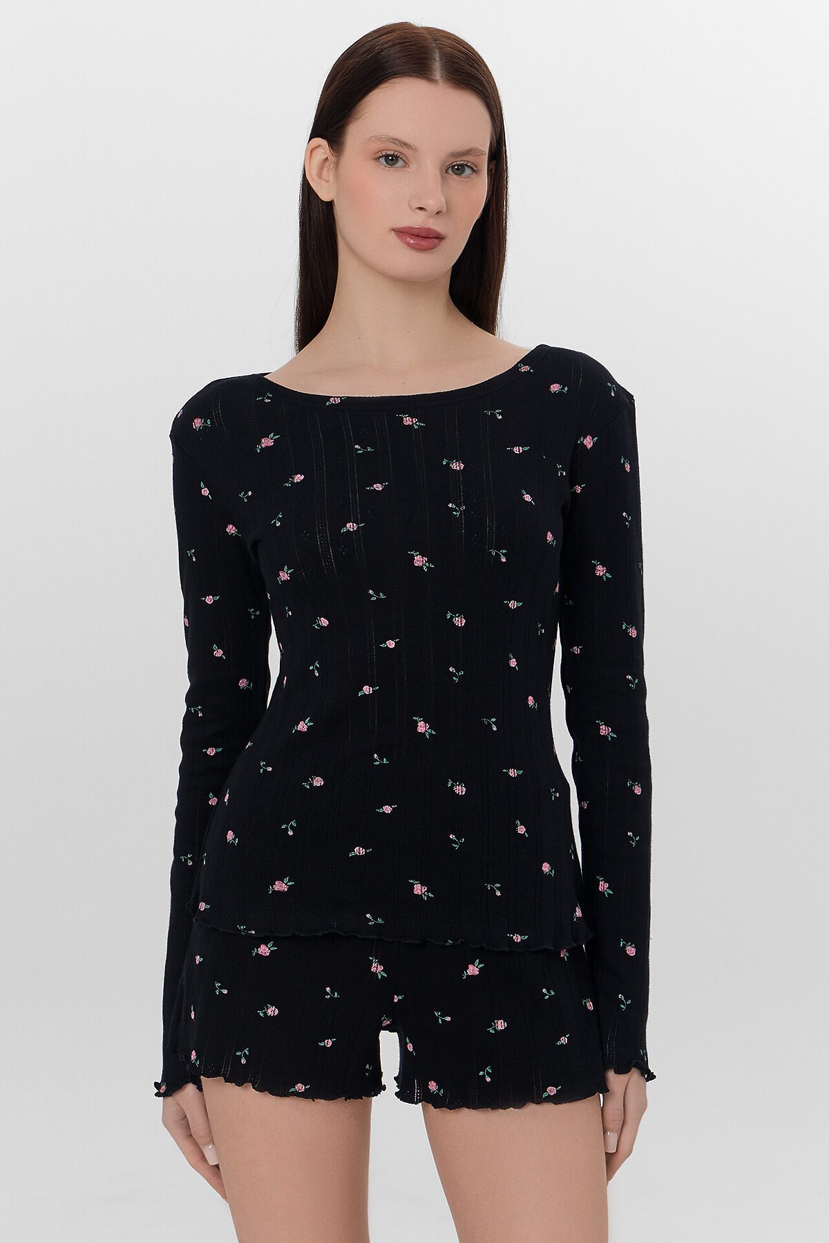 Комплект женский (джемпер, шорты) MARK FORMELLE, розочки на черном