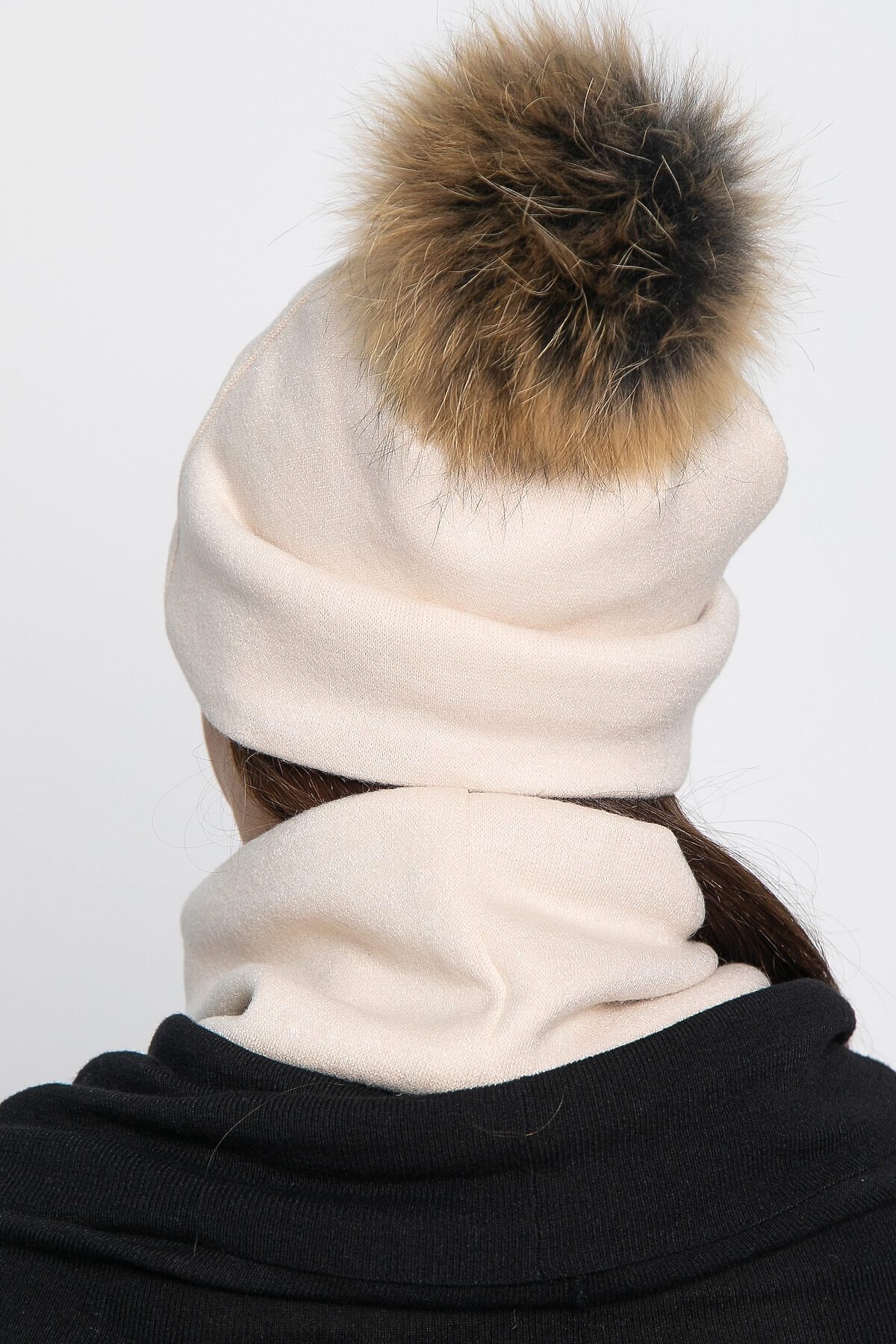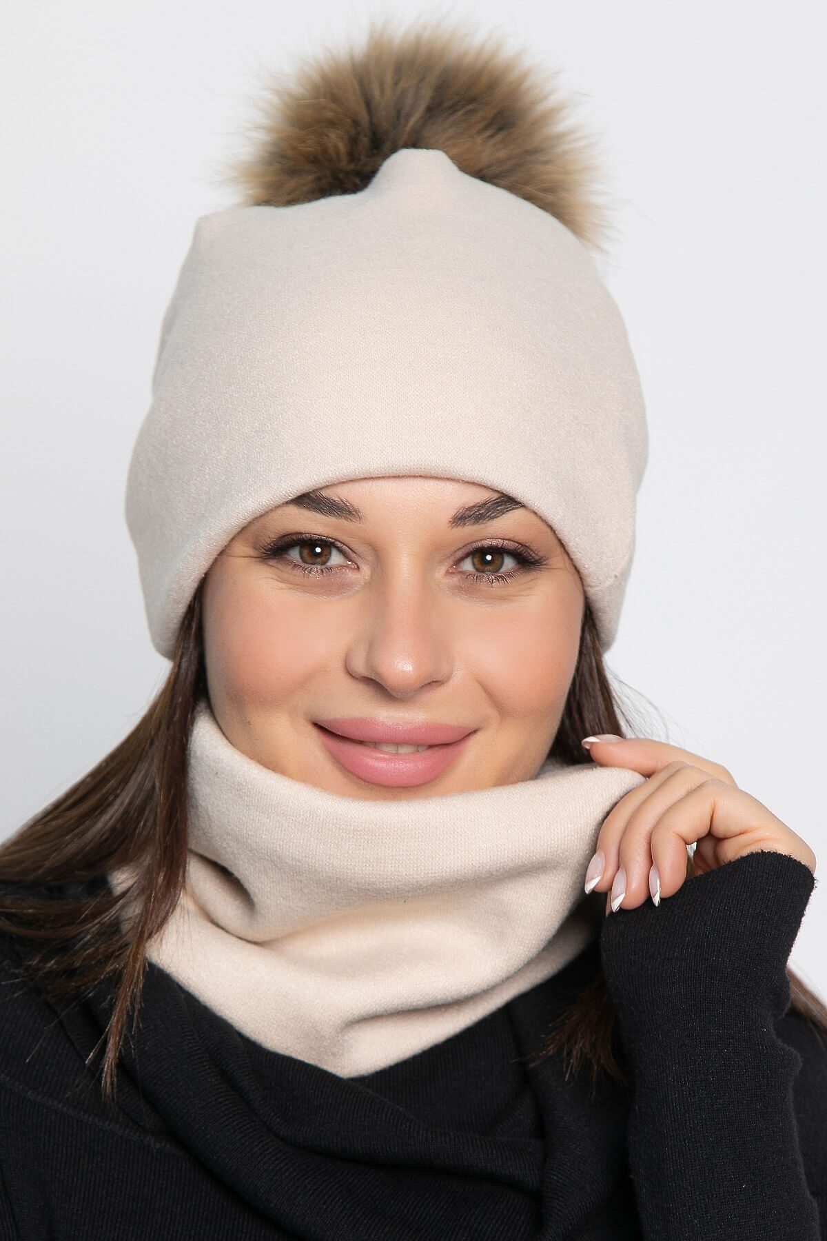 Комплект шапка с помпоном и снуд LADY TAIGA, молочный