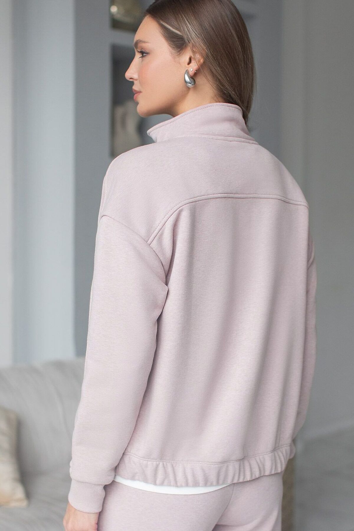 Бомбер среднего объема на молнии из петельчатого футера двухнитки с эластаном VILATTE, макиато меланж