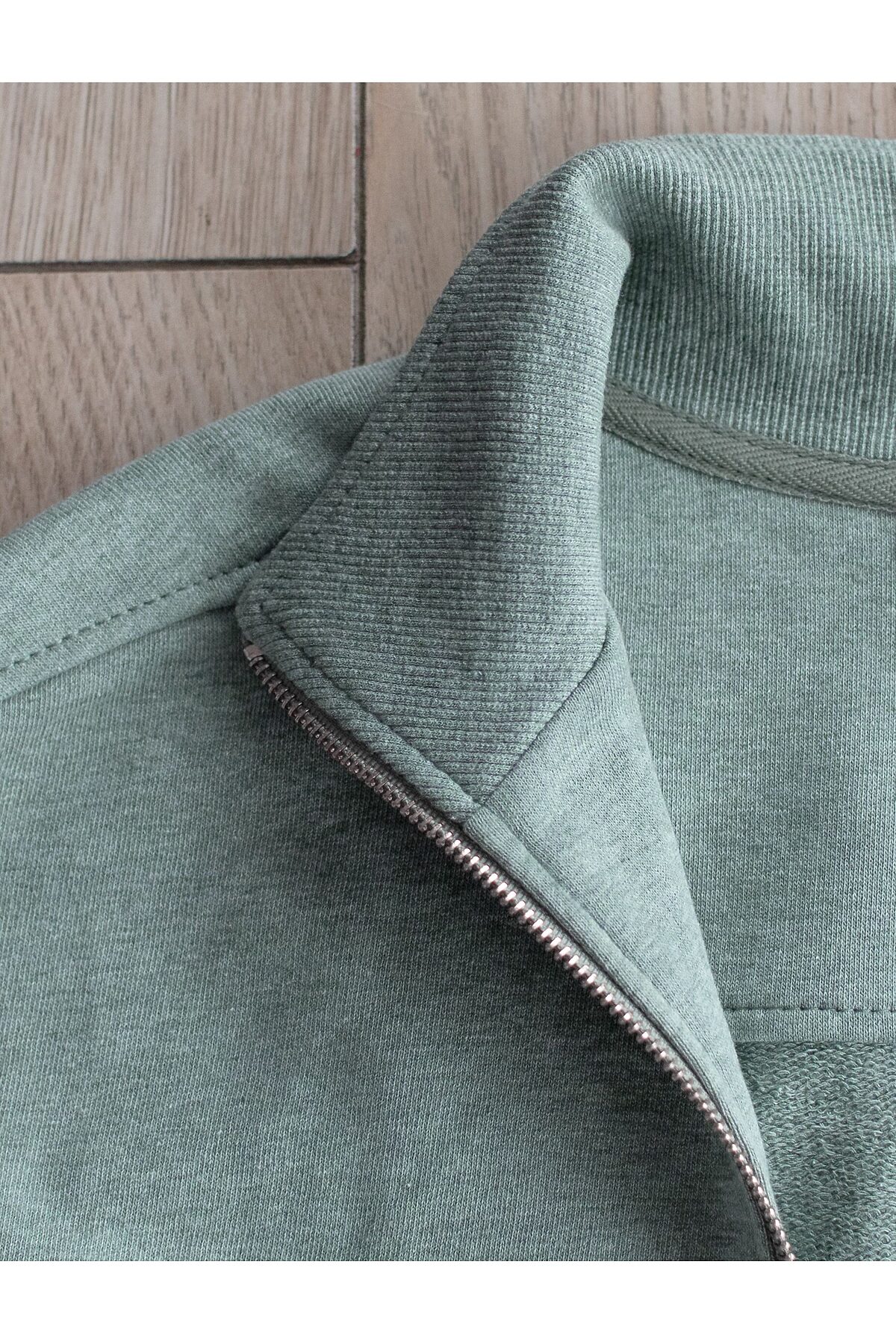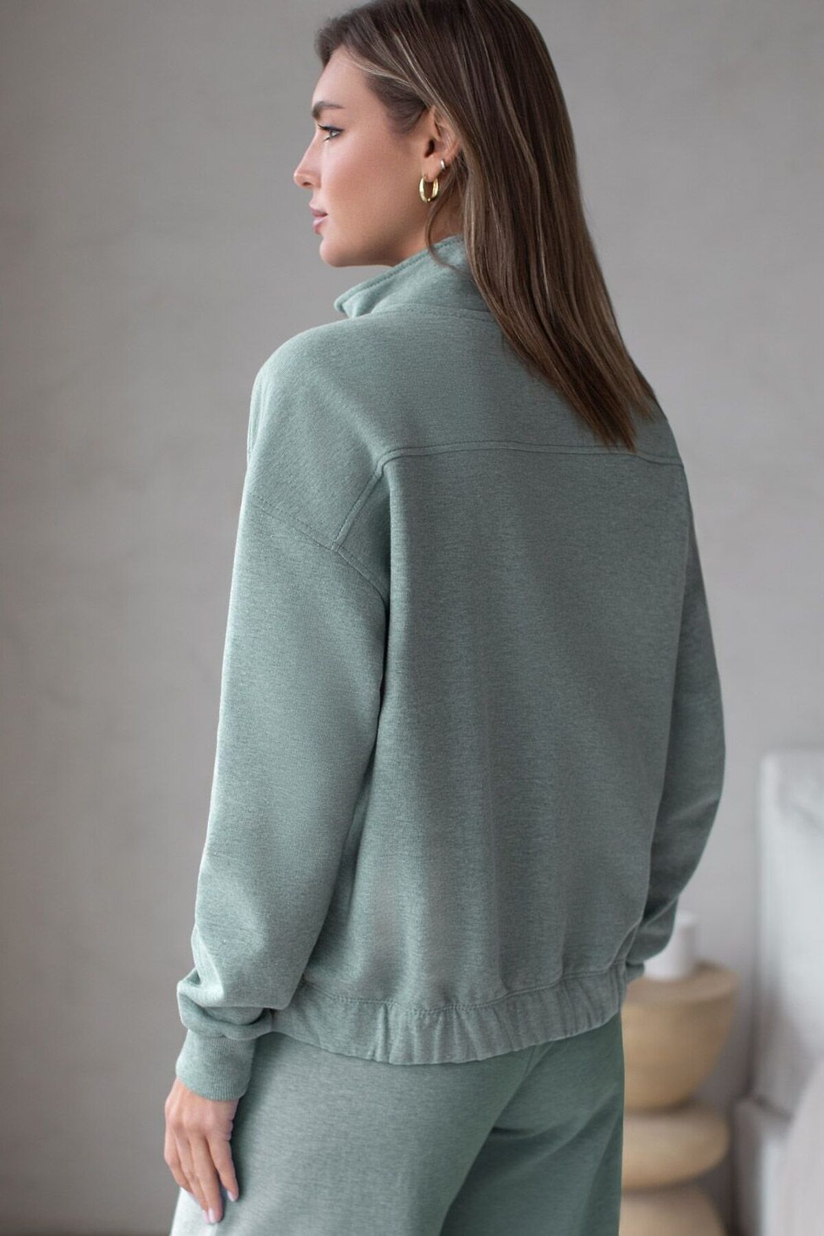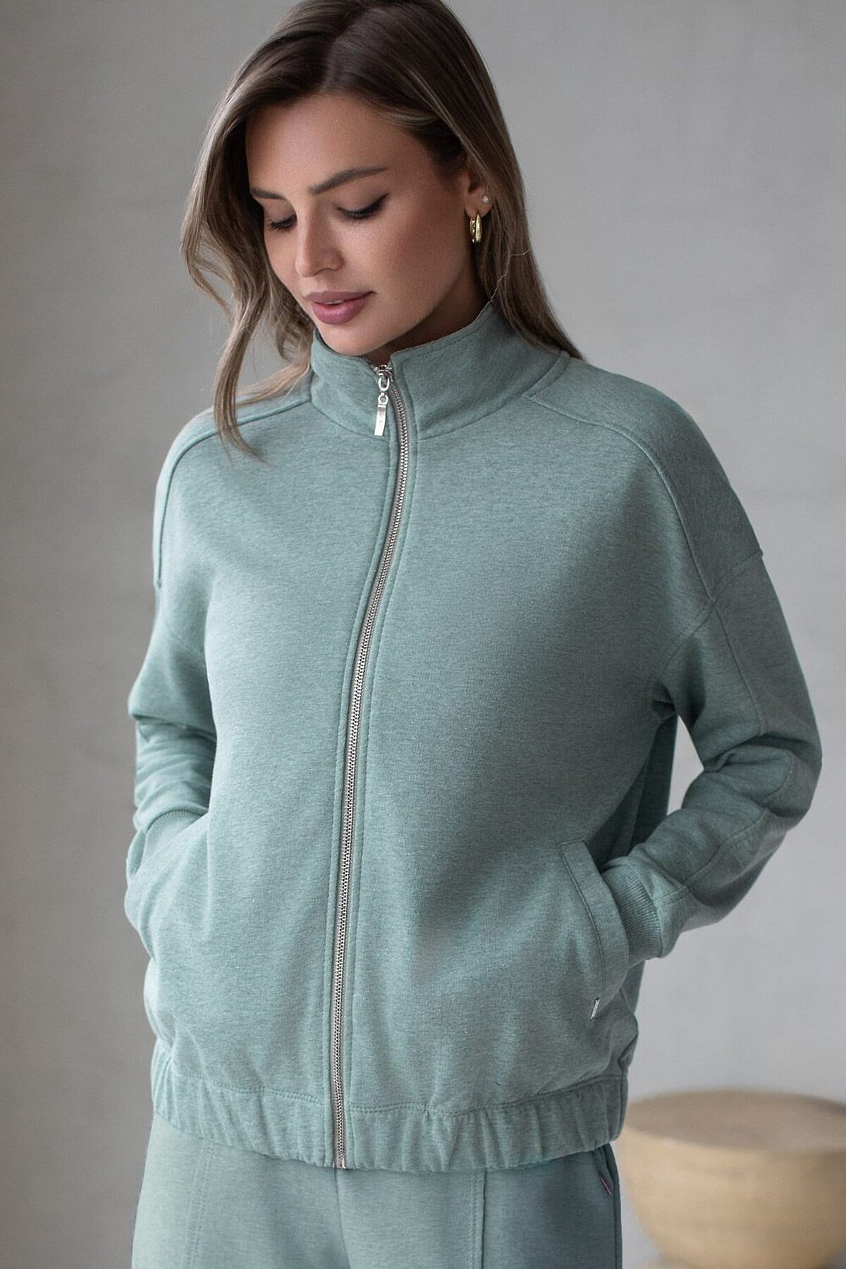 Бомбер среднего объема на молнии из петельчатого футера двухнитки с эластаном VILATTE, оливковый меланж