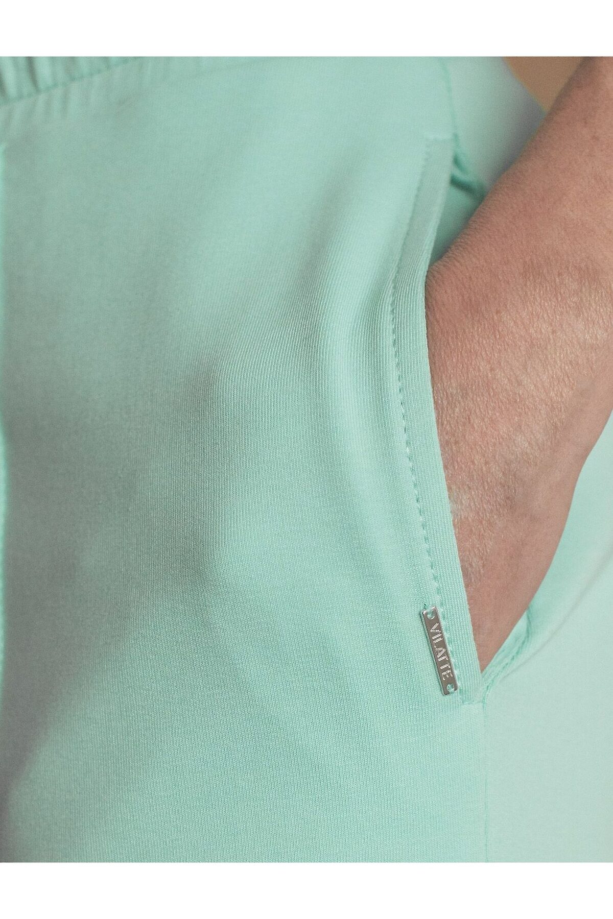 Прямые трикотажные брюки на резинке из футера двухнитки эластичные VILATTE, мятный