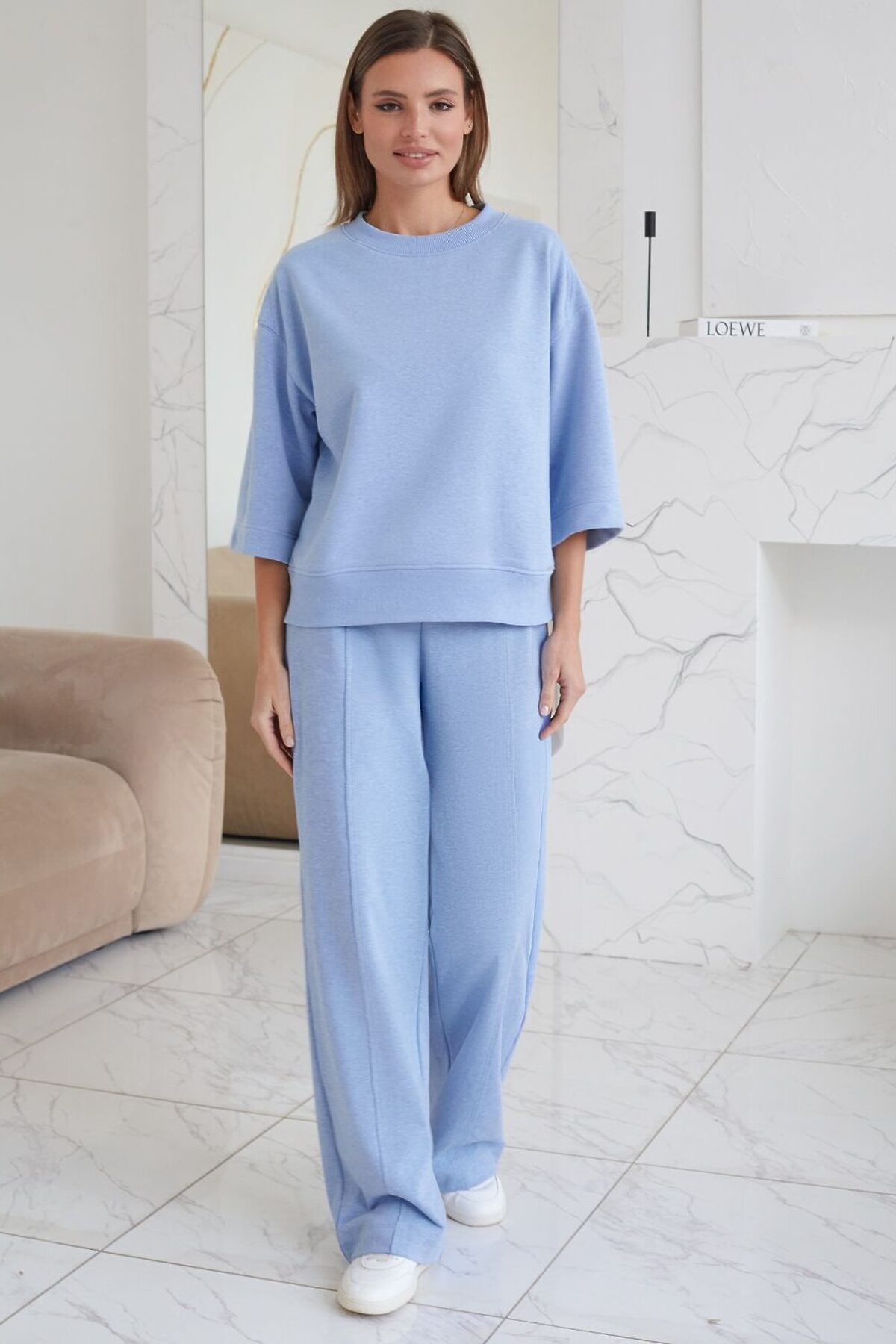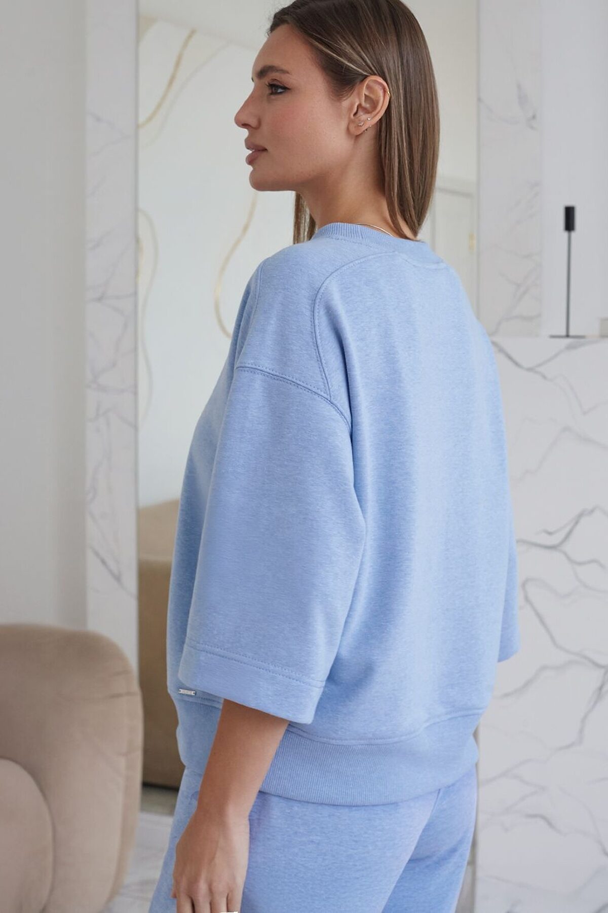 Свитшот свободный из петельчатого футера двухнитки с эластаном VILATTE, голубой меланж