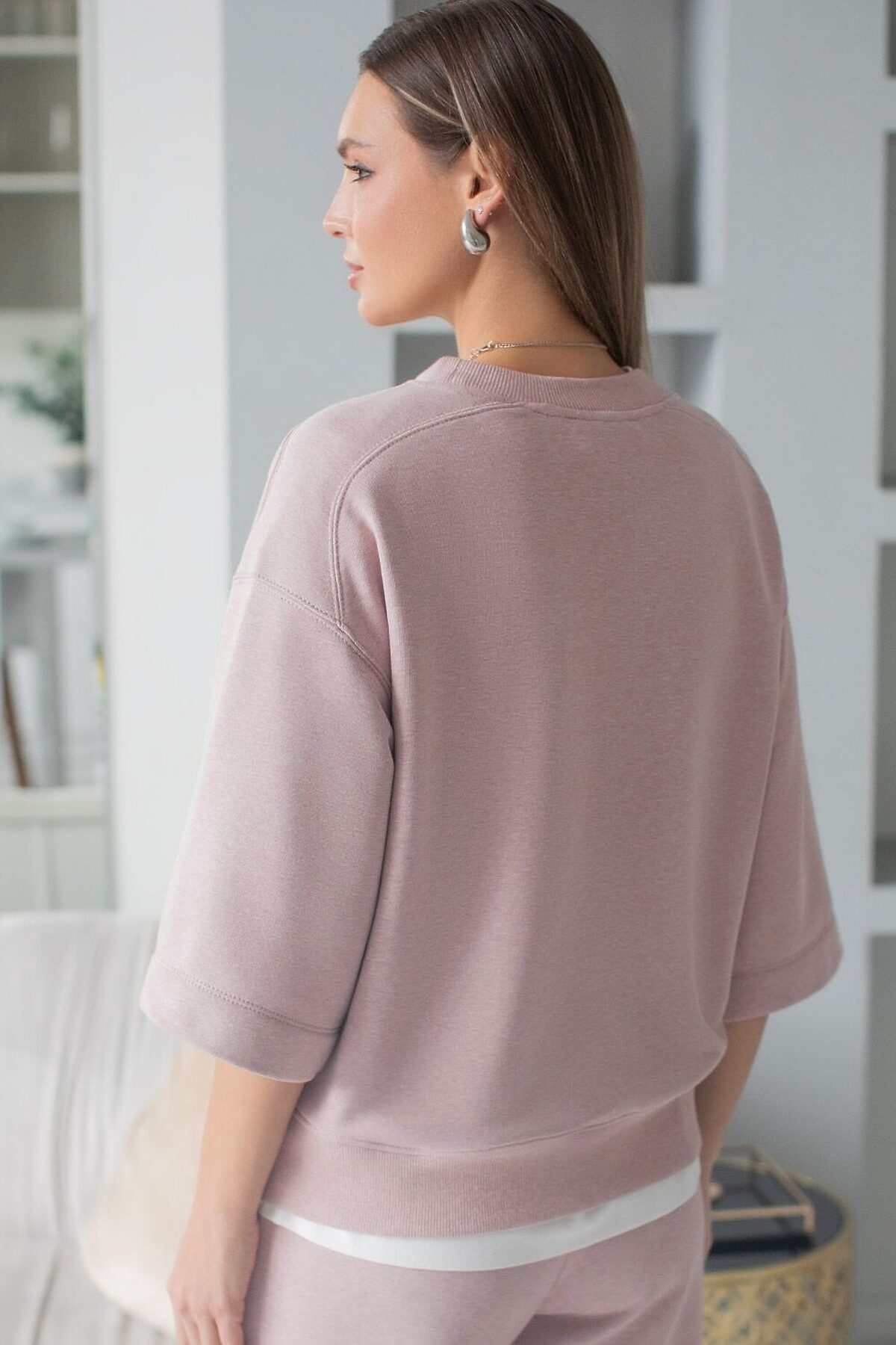 Свитшот свободный из петельчатого футера двухнитки с эластаном VILATTE, макиато меланж