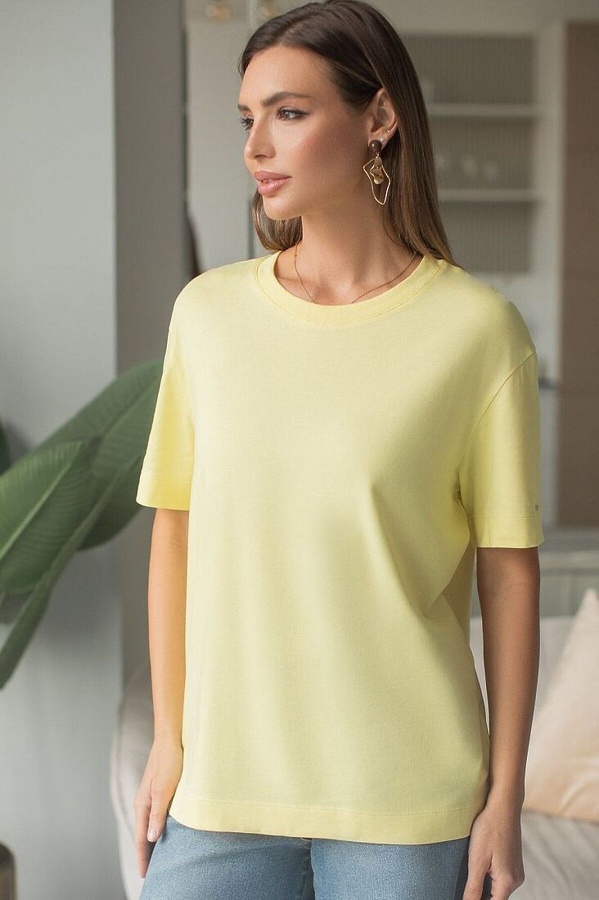 Футболка свободная из премиального хлопка с эластаном VILATTE, лимонный