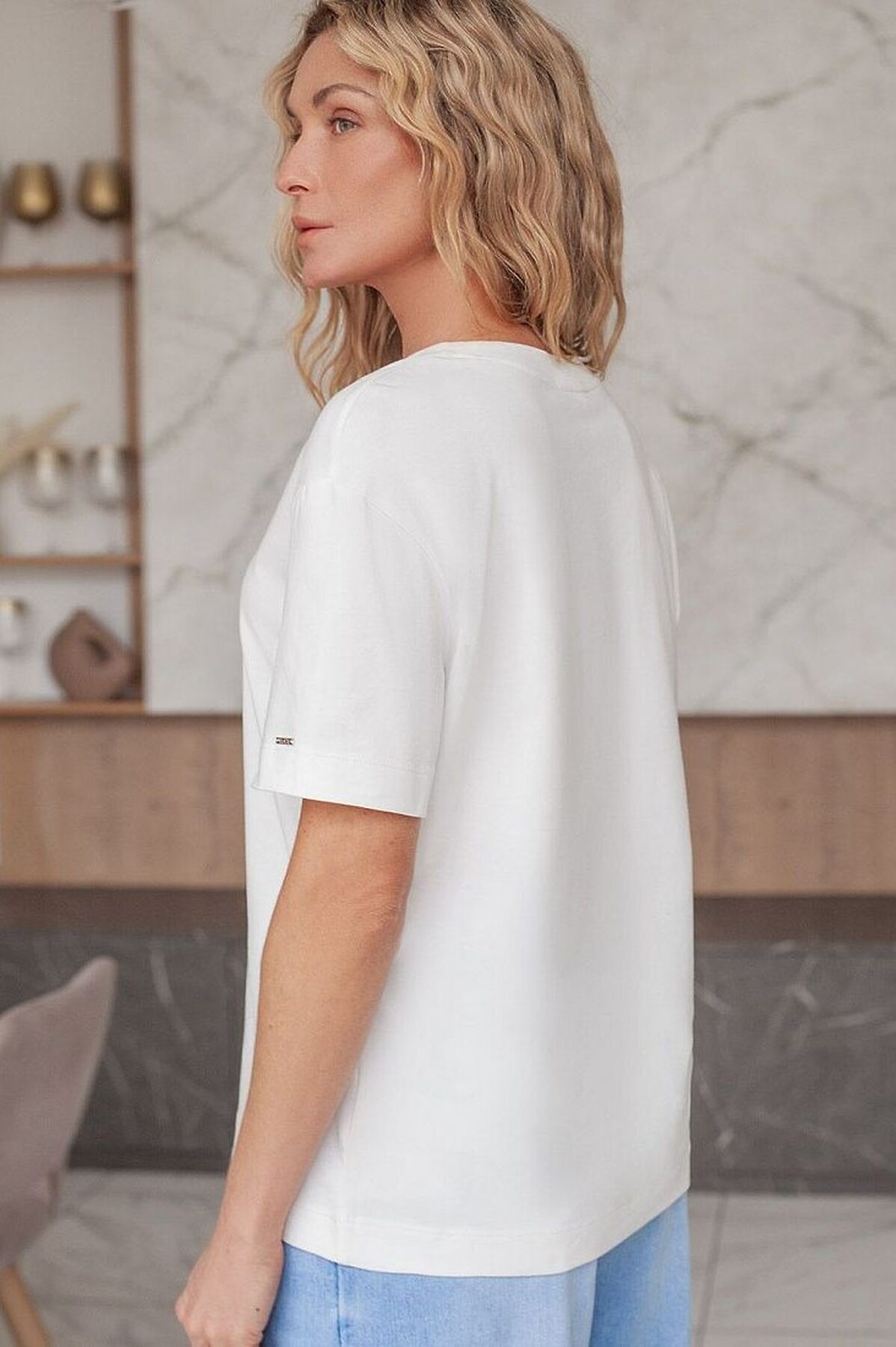 Футболка свободная из премиального хлопка с эластаном VILATTE, молочный