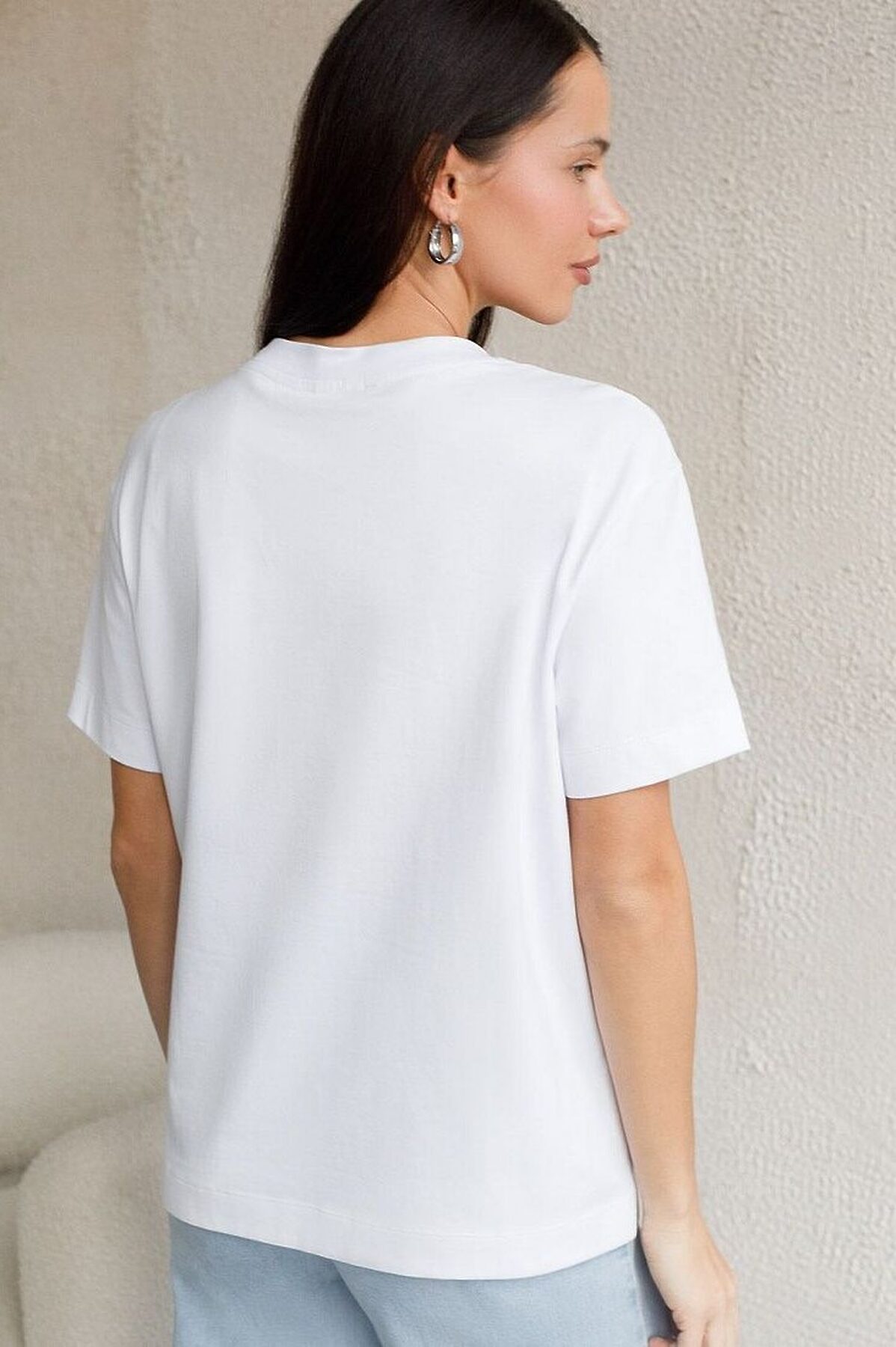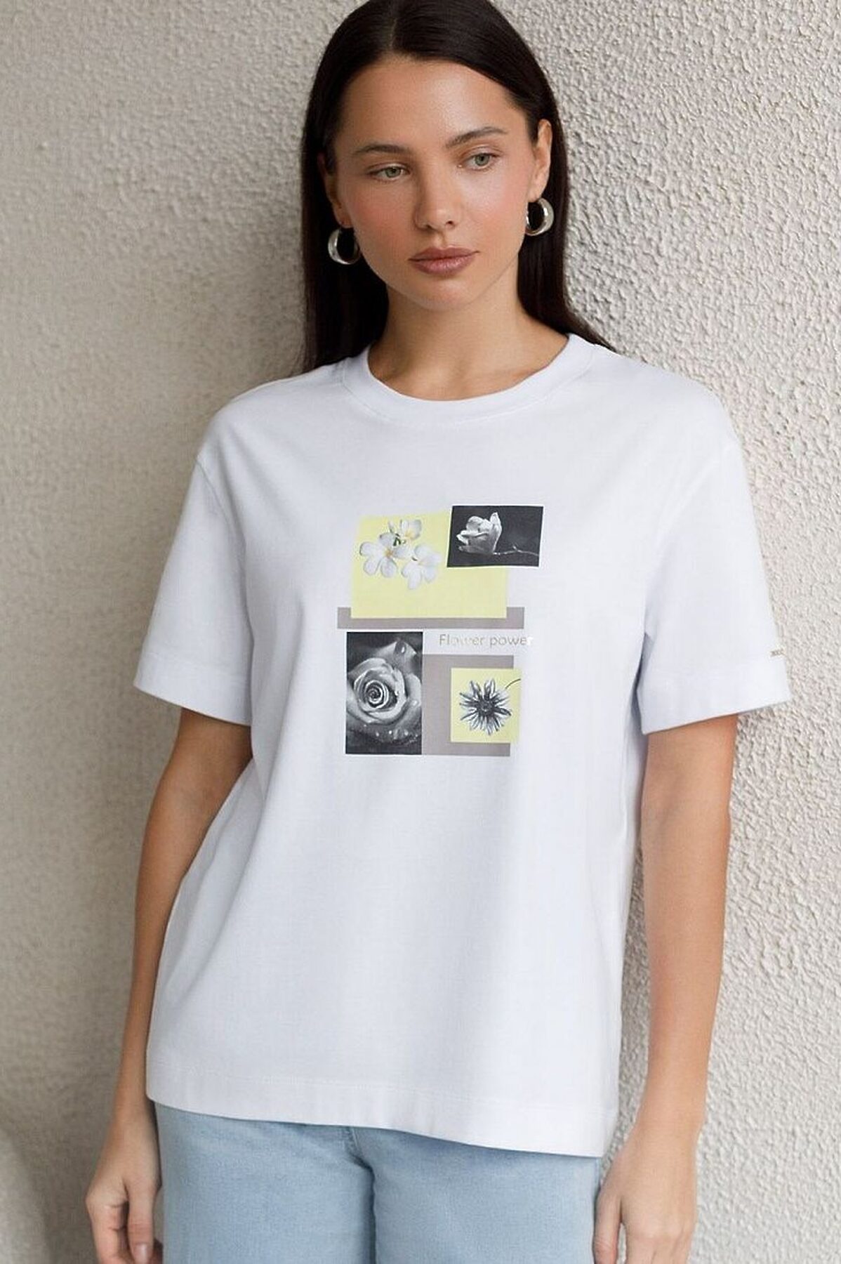 Свободная футболка с принтом из премиального хлопка с эластаном VILATTE, белый_flower_power