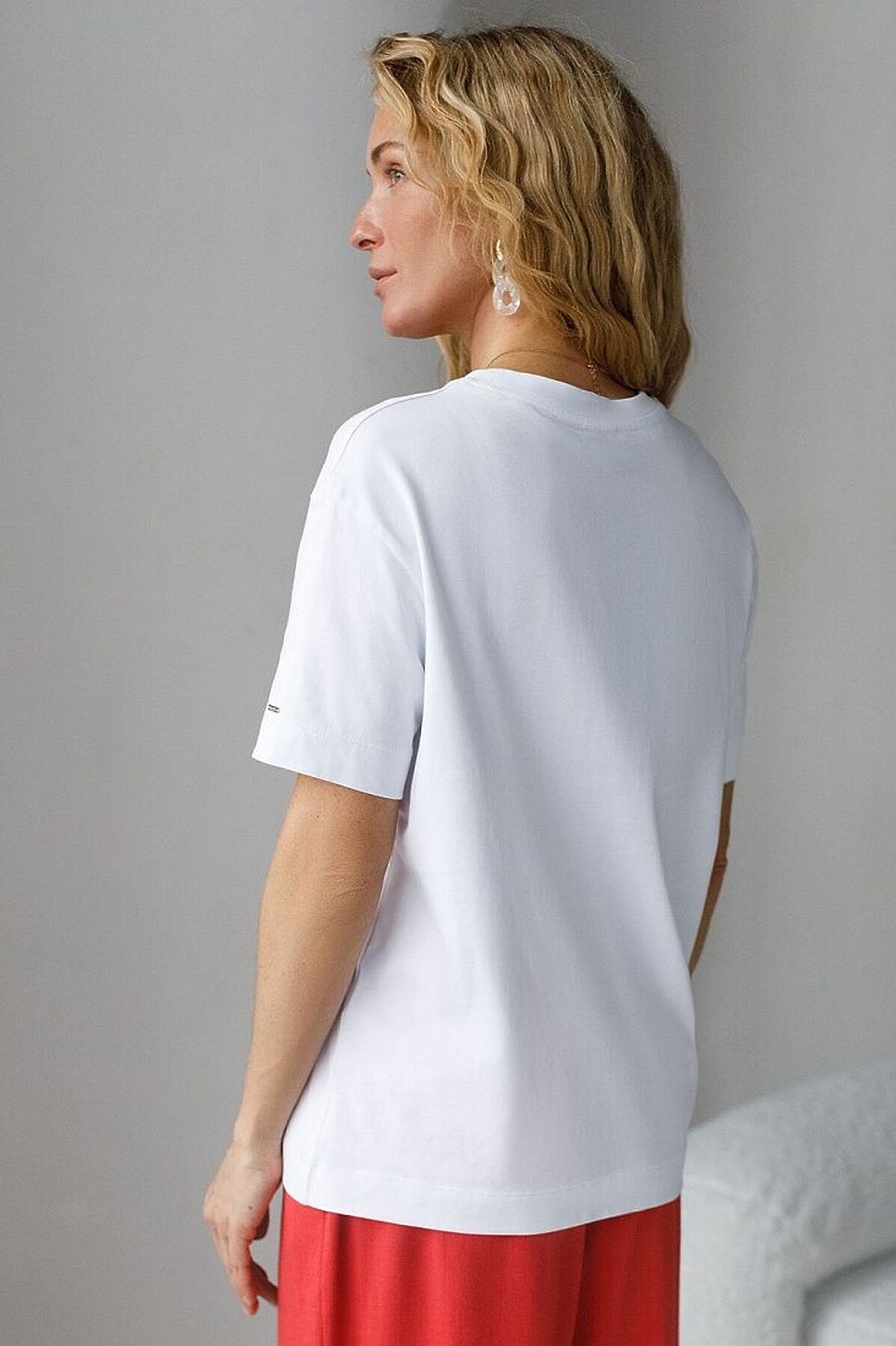 Свободная футболка с принтом из премиального хлопка с эластаном VILATTE, белый_spicy
