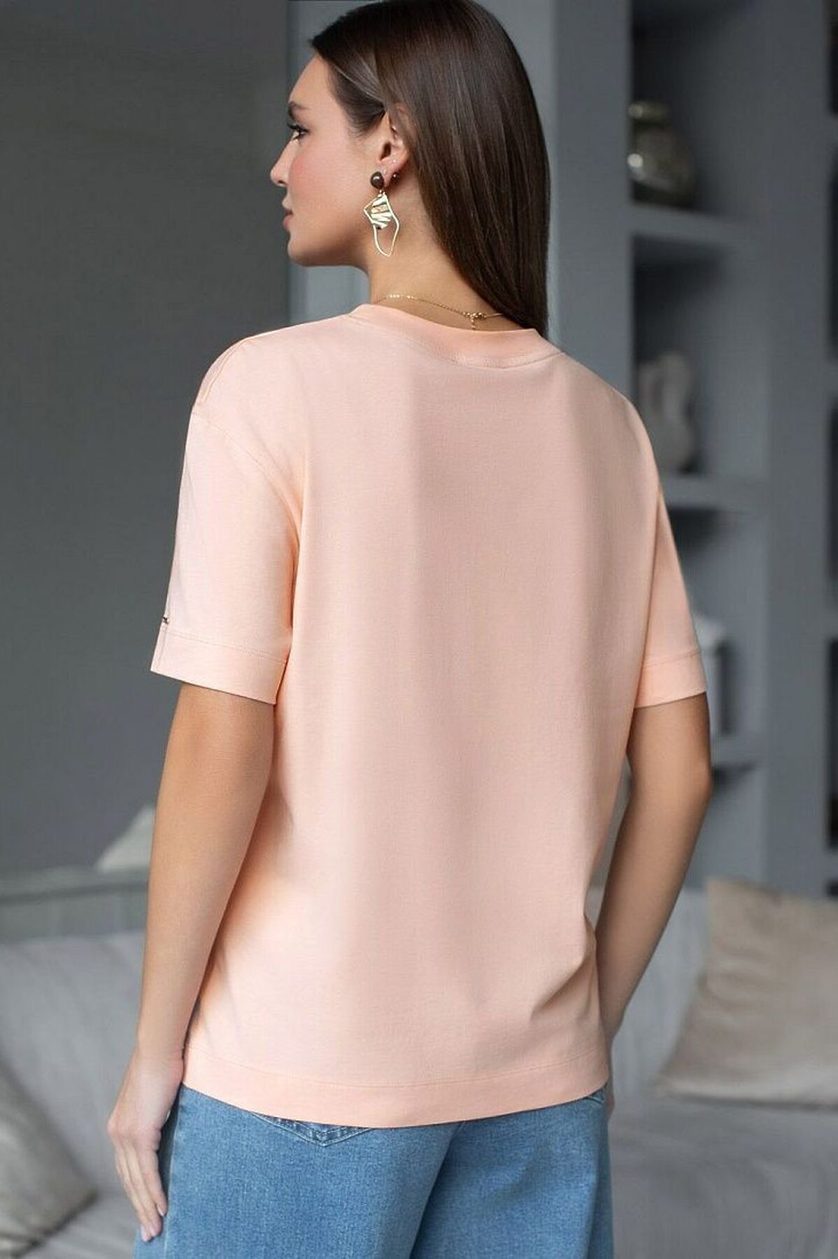 Свободная футболка с принтом из премиального хлопка с эластаном VILATTE, пудра_everyday