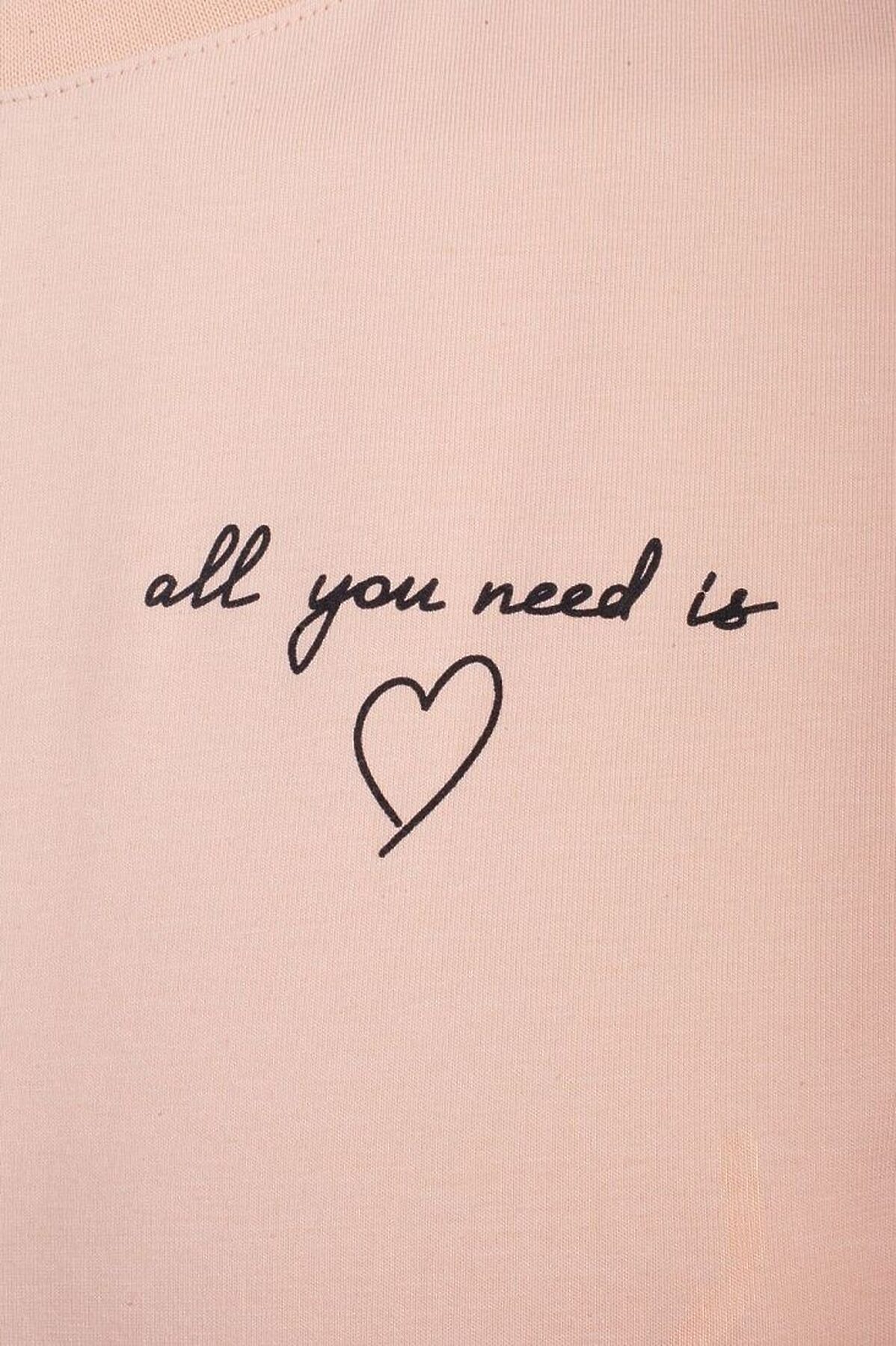 Модная футболка пудрового цвета привлекает внимание своим интересным дизайном и ярким принтом. Благодаря прямому крою изделие комфортно садится на любую фигуру, в том числе на большие размеры, и не сковывает движений. Круглый вырез подчеркивает современный стиль, а натуральный материал плотностью 170 Г/м2 из хлопка с добавлением эластана обеспечивает удобство в повседневной носке и приятные тактильные ощущения. Прочность и износостойкая структура позволяют сохранять свежий внешний вид после множества стирок. Принт в виде надписи и сердца нанесен красками с устойчивым покрытием, перевод надписи: Al you need is love- Все, что вам нужно это любовь. Стильная футболка гармонично вписывается в любой гардероб и подойдет для прогулок, отдыха или неформальных встреч. Благодаря особенностям кроя модель хорошо сидит, скрывая недостатки и подчеркивая достоинства. Яркая футболка идеально сочетается с базовыми вещами, позволяя создавать новые интересные образы каждый день.