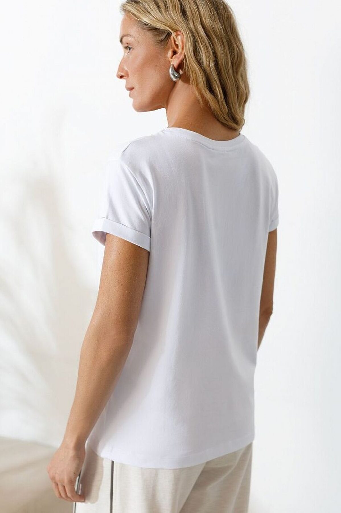 Свободная футболка с принтом из премиального хлопка с эастаном VILATTE, белый_exclusive
