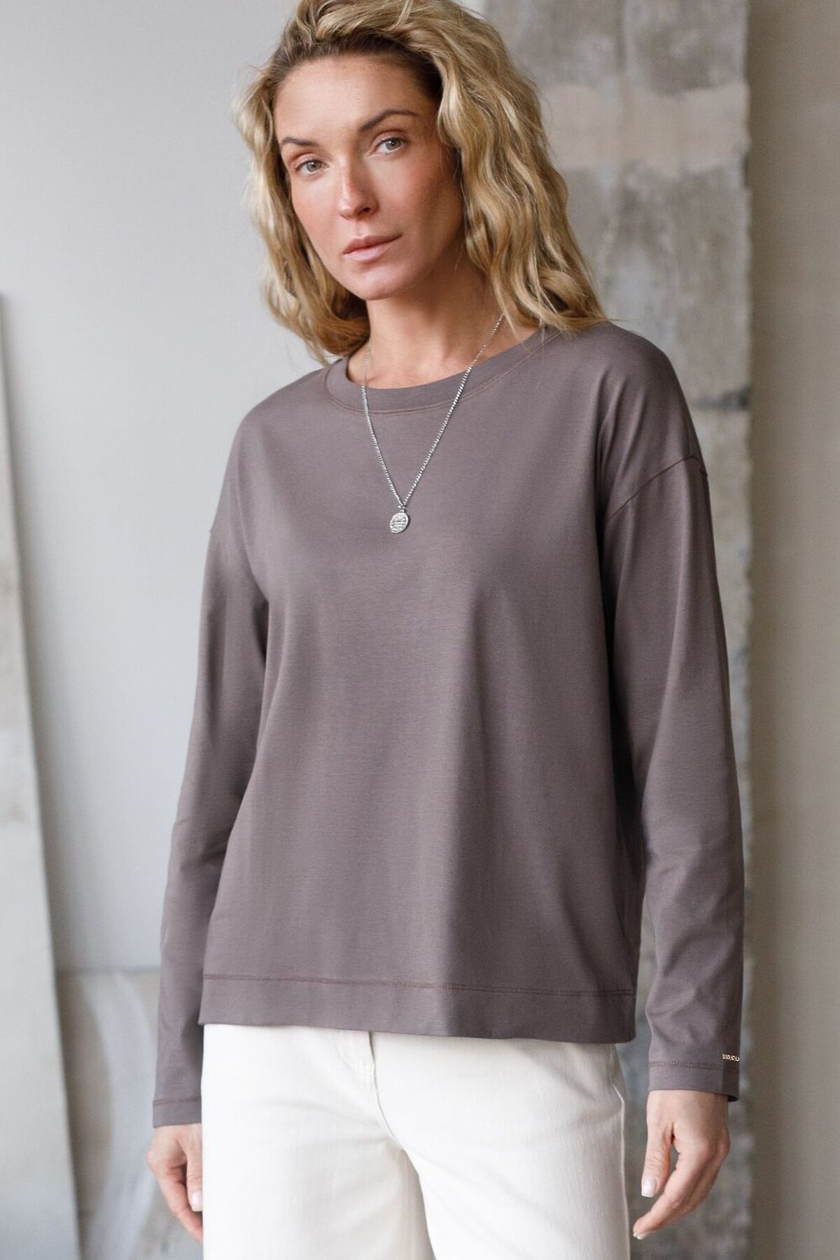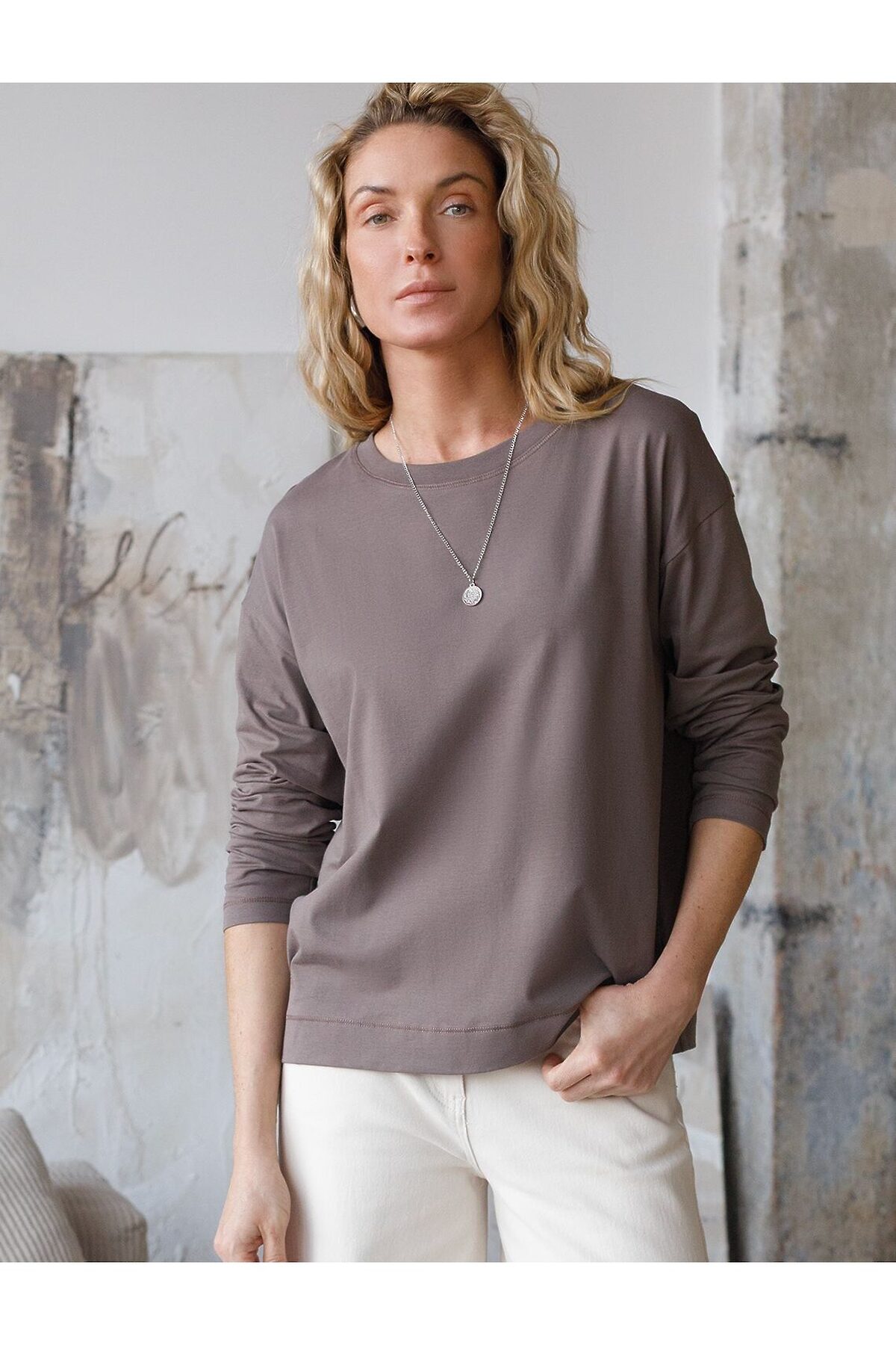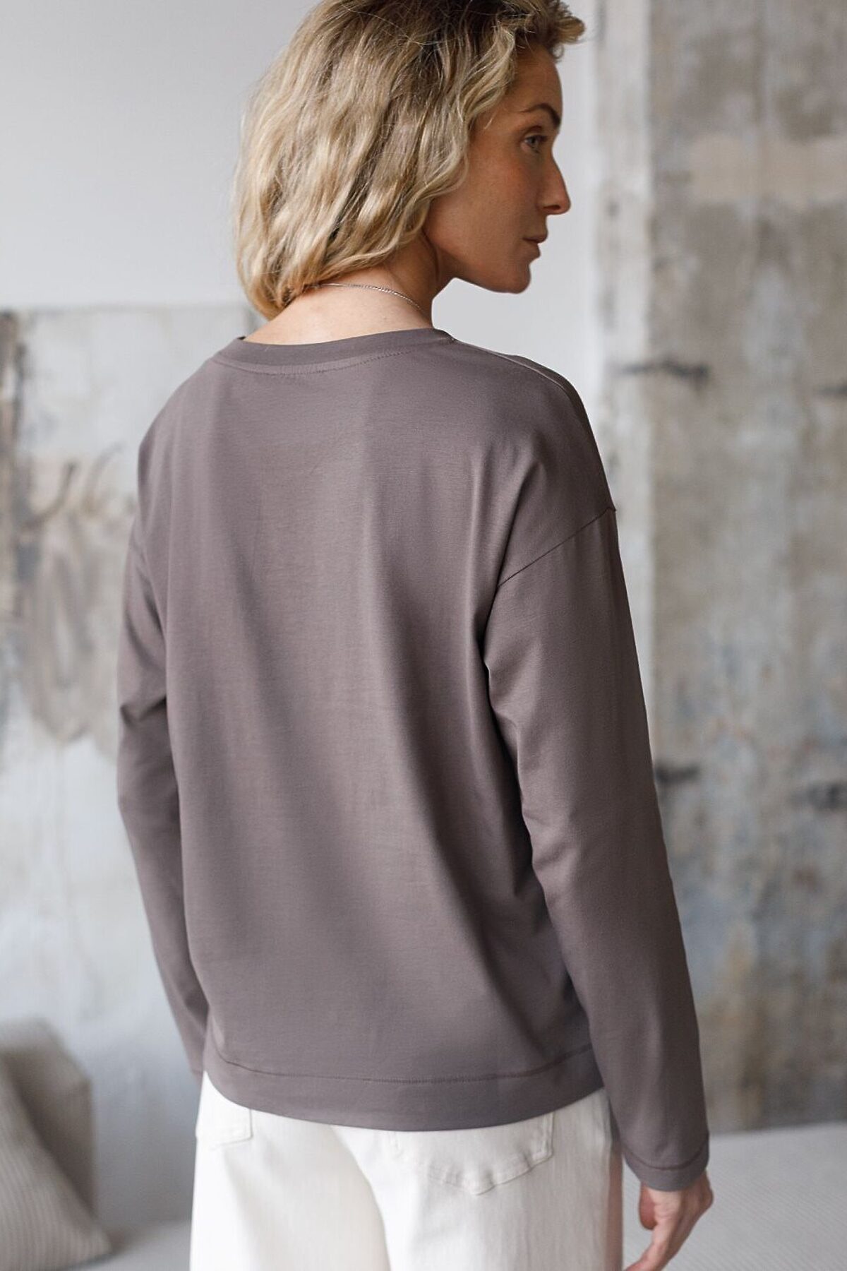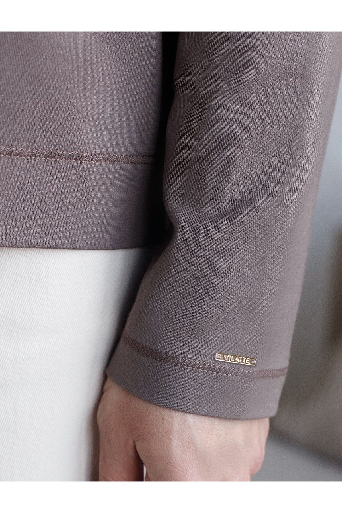 Базовый лонгслив из премиального хлопка с эластаном VILATTE, кофейный