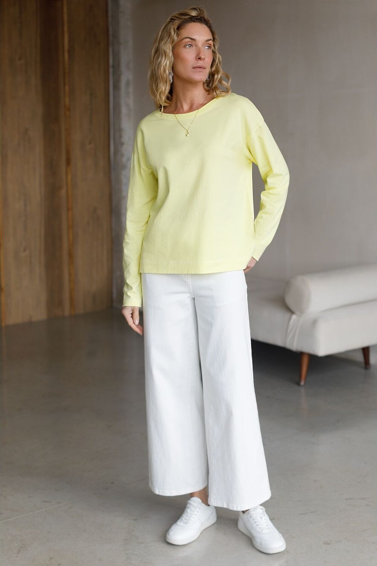 Базовый лонгслив из премиального хлопка с эластаном VILATTE, лимонный